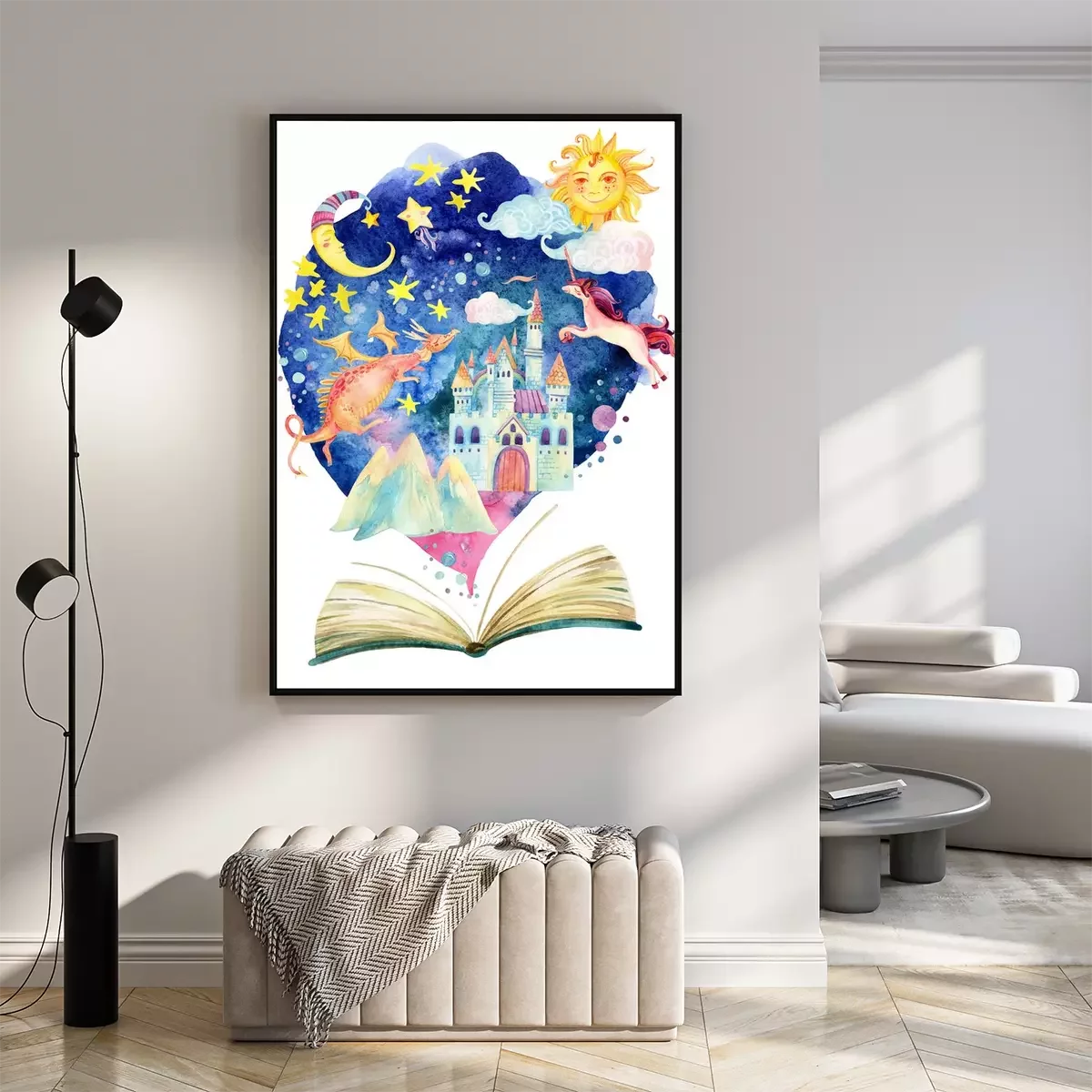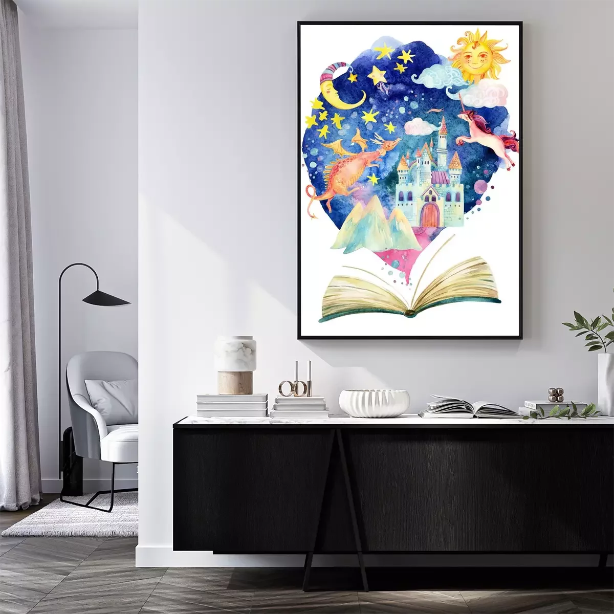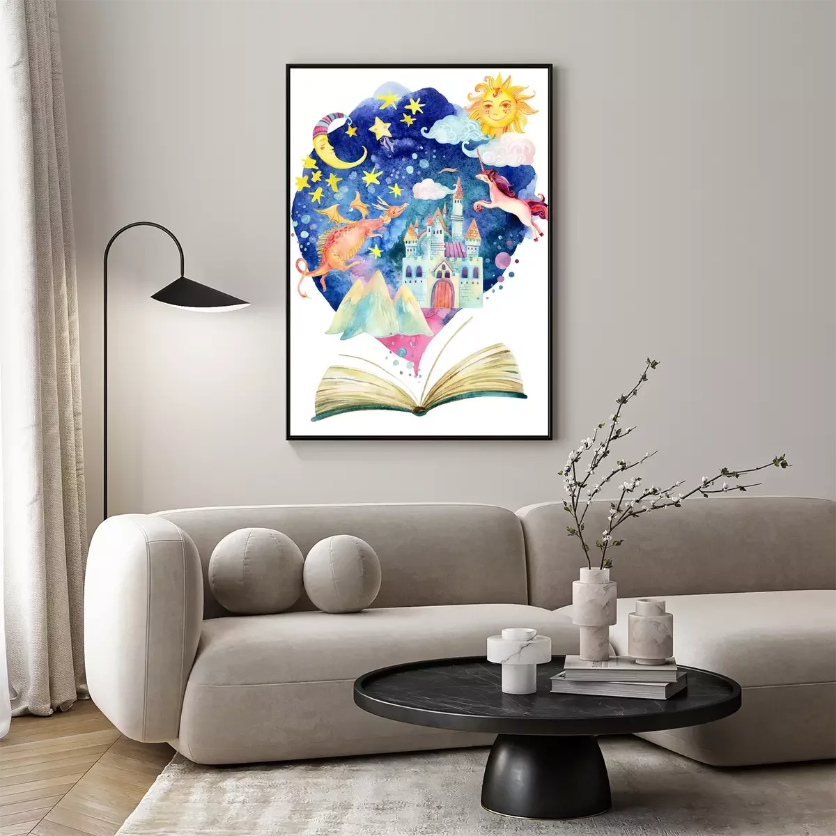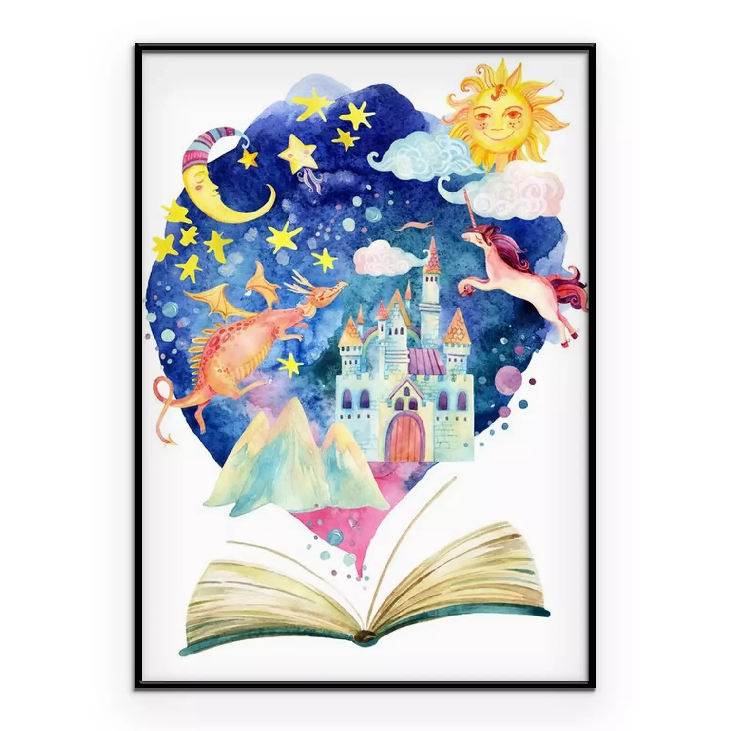 Offenes Buch, aus dem Märchenfiguren herauskommen