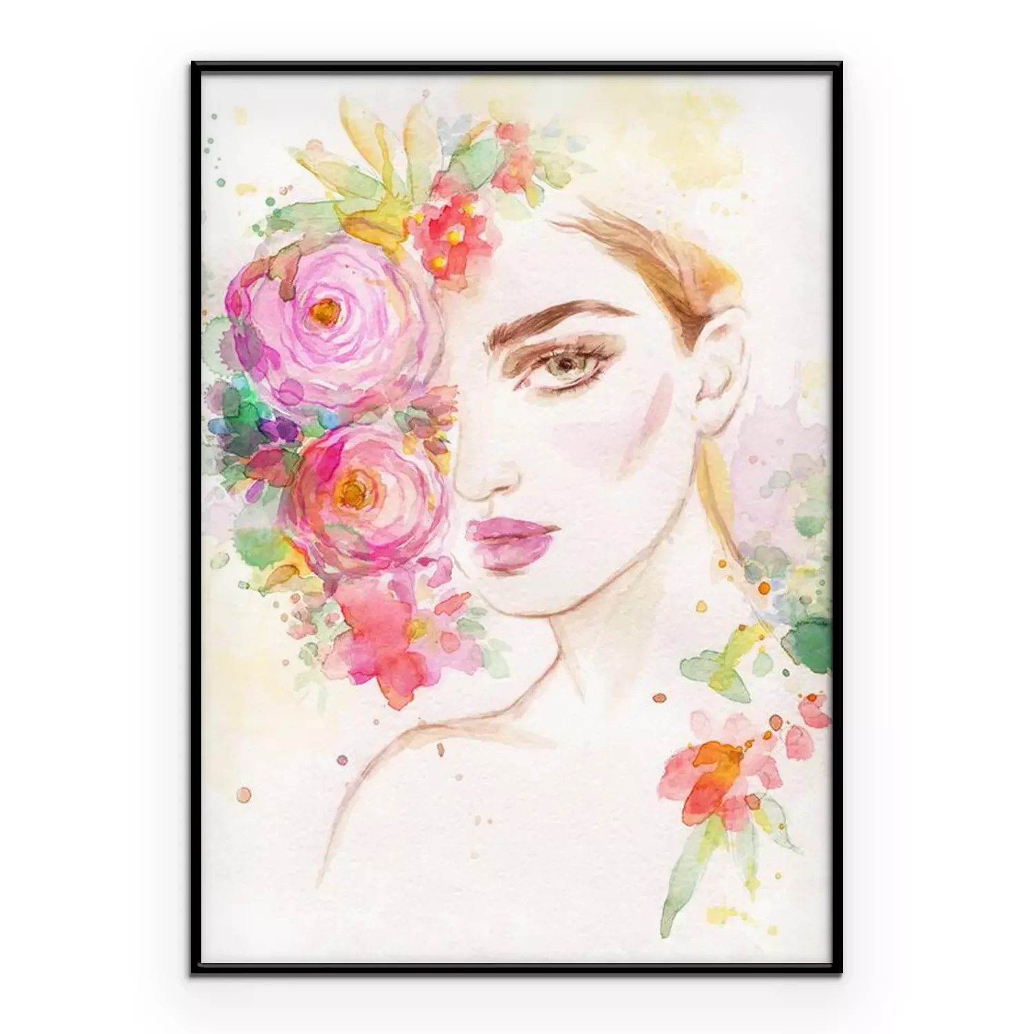 Poster: woman with flowers. beauty background. fashion illustration. watercolor painting