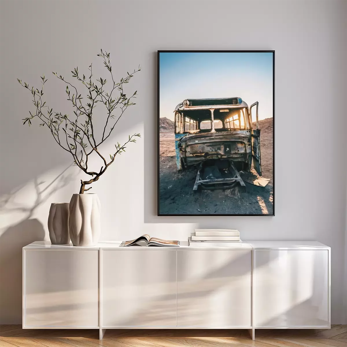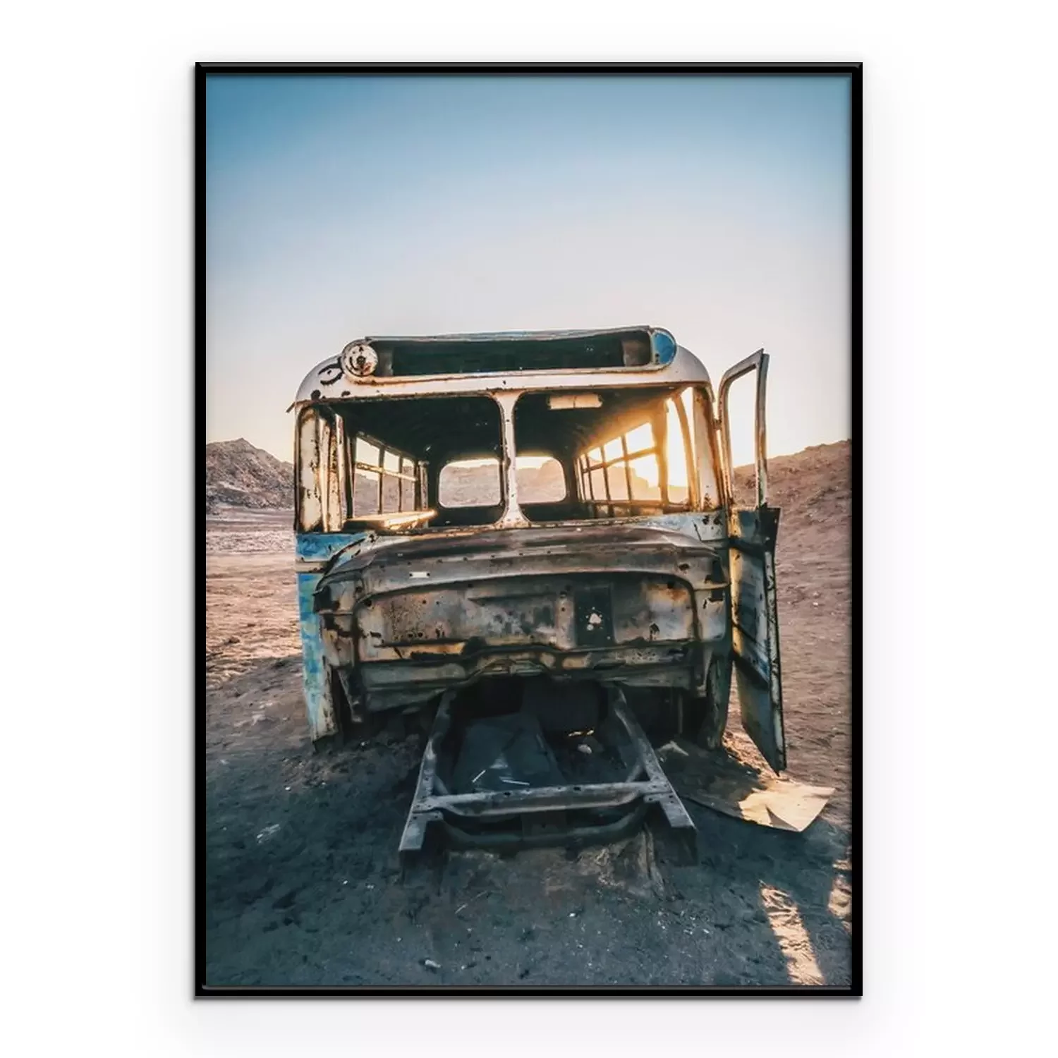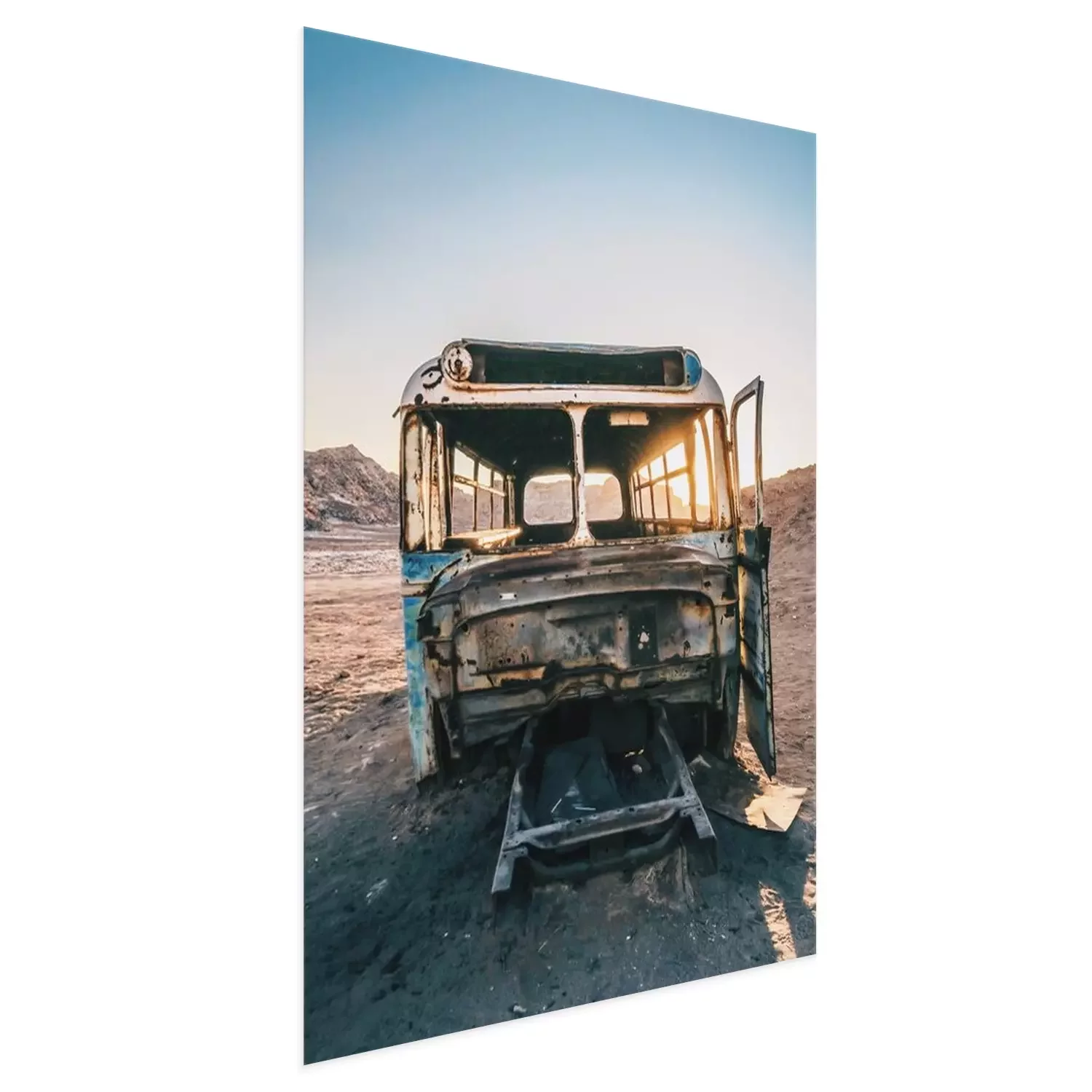 Poster: Wüste mit einem Autowrack