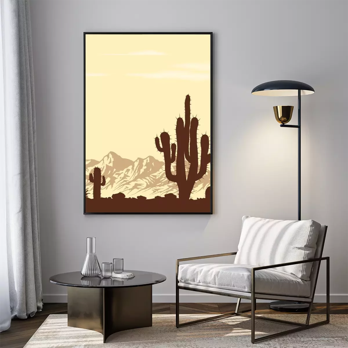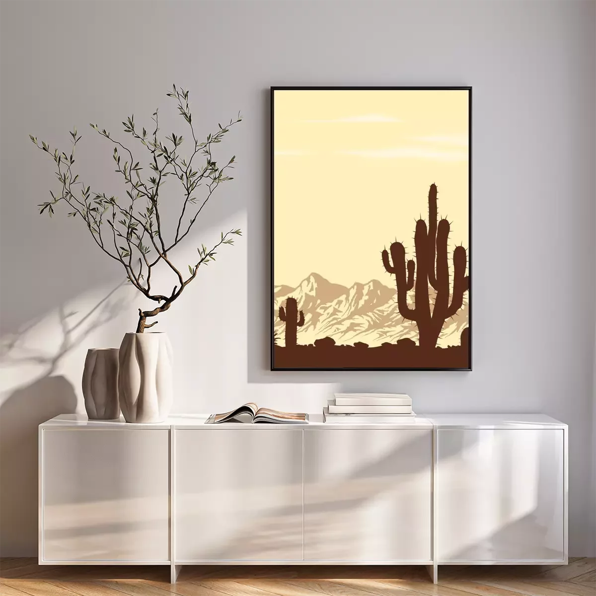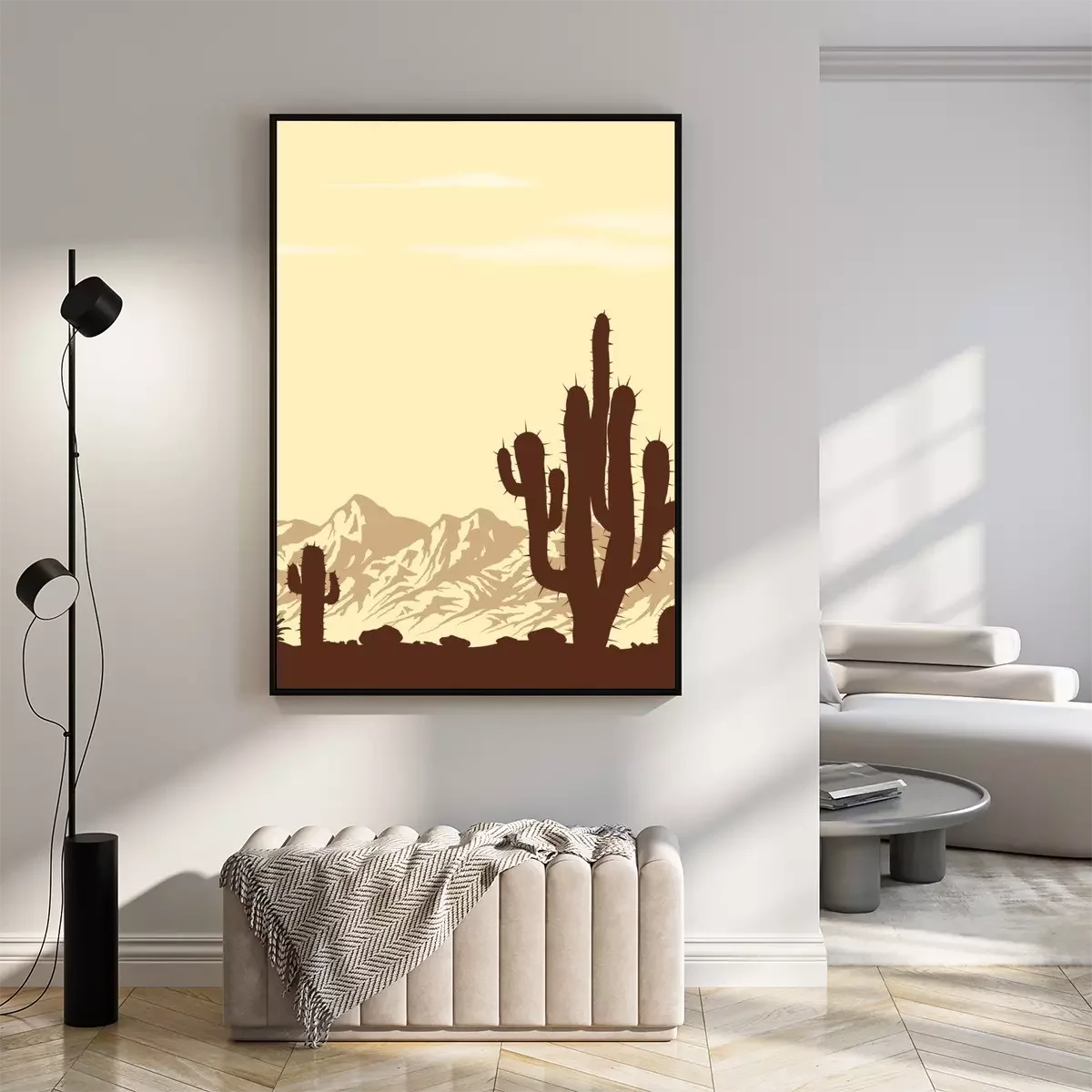 Poster: Wüste mit Kakteen in einer minimalistischen Illustration