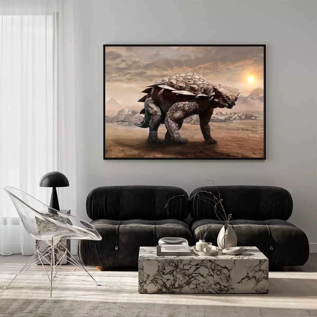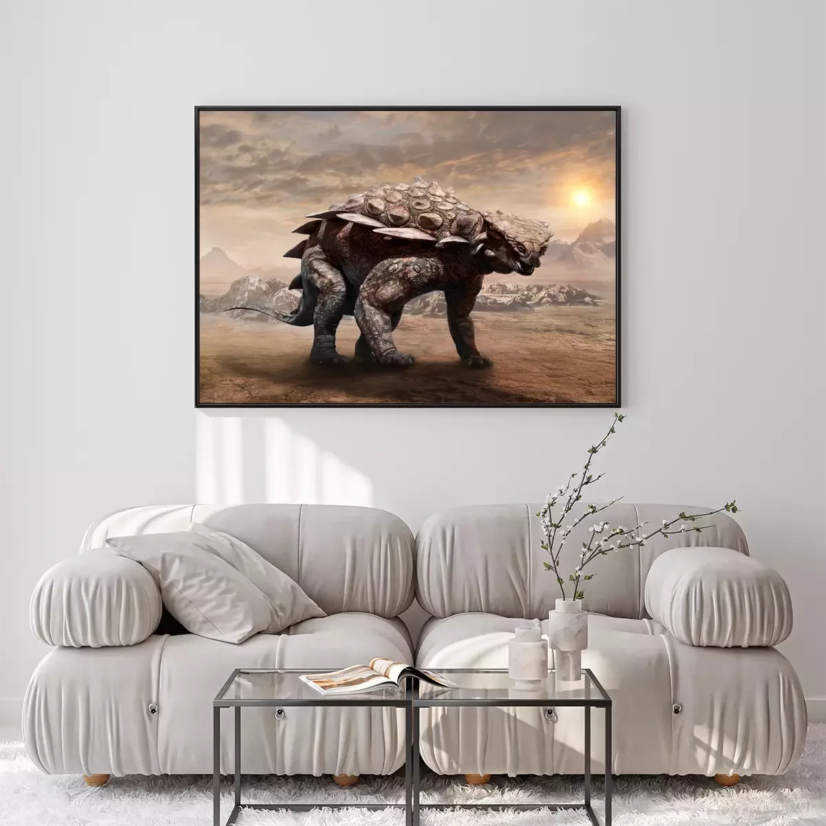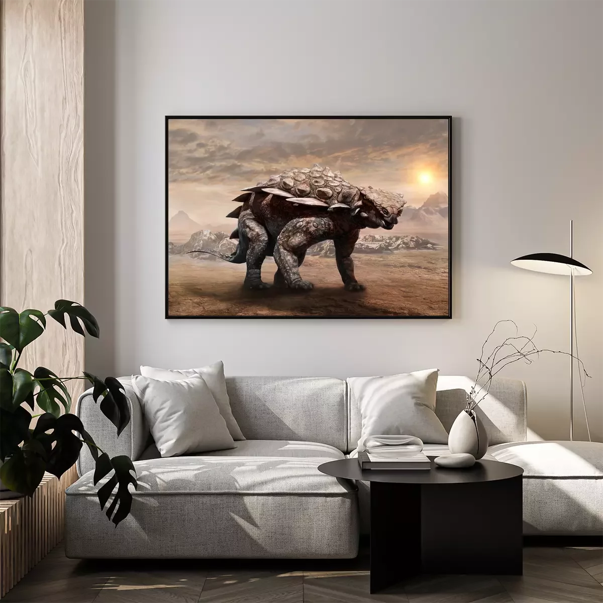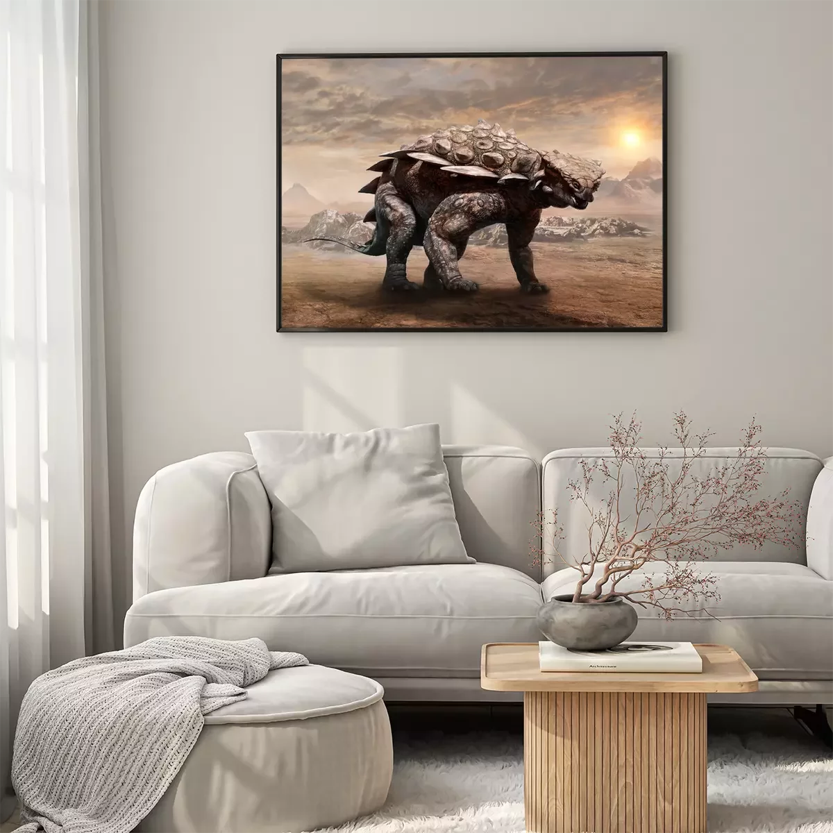 Poster: Wüstenlandschaft mit Dinosaurier