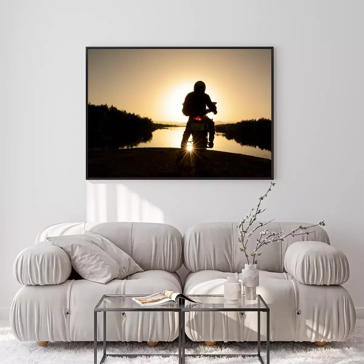 Motorradfahrer und Motorräder bei Sonnenuntergang