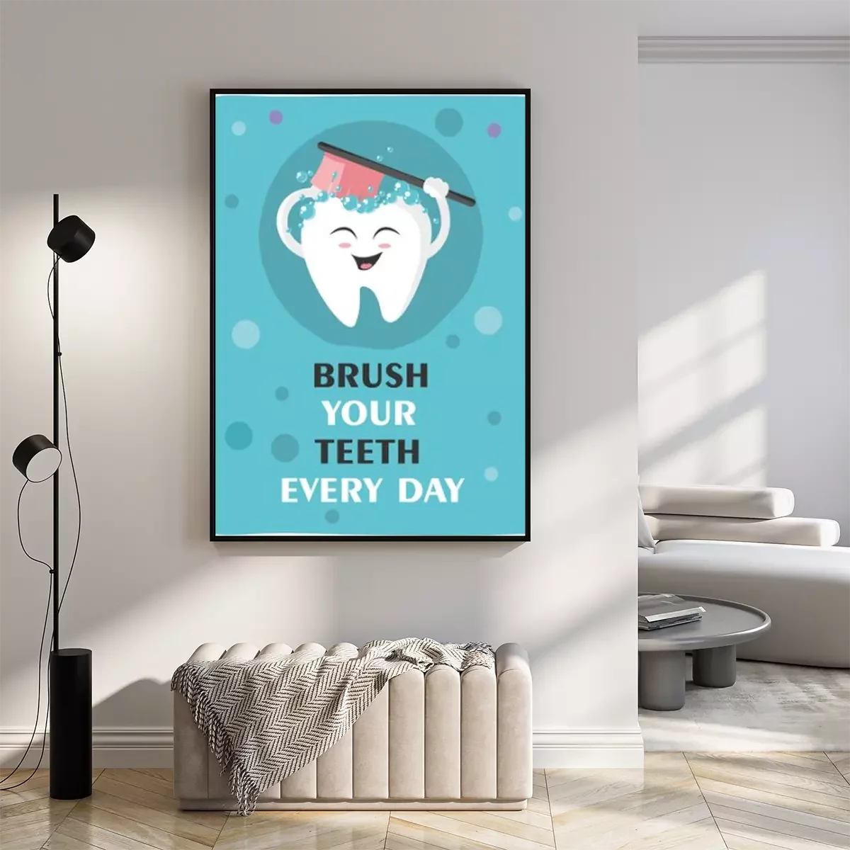 Poster Zahn mit einer Zahnbürste, lächelnd