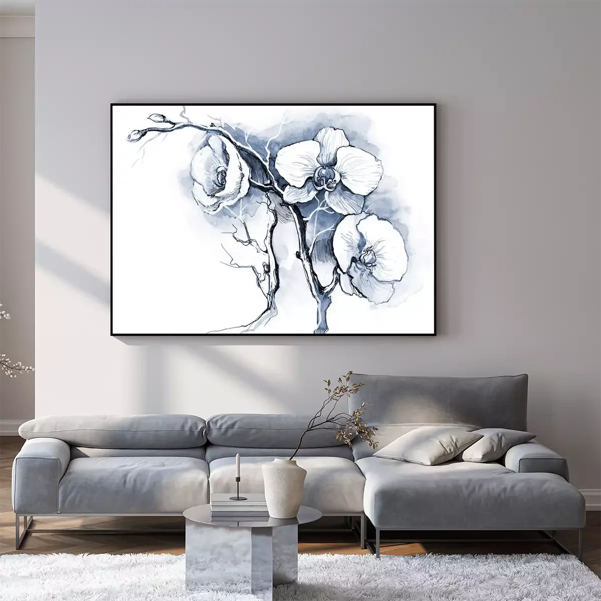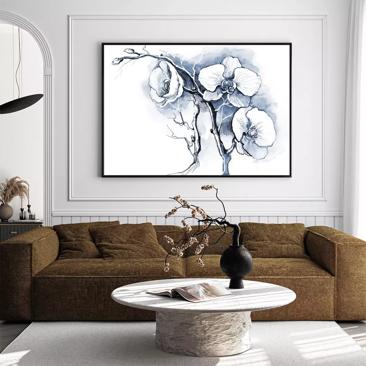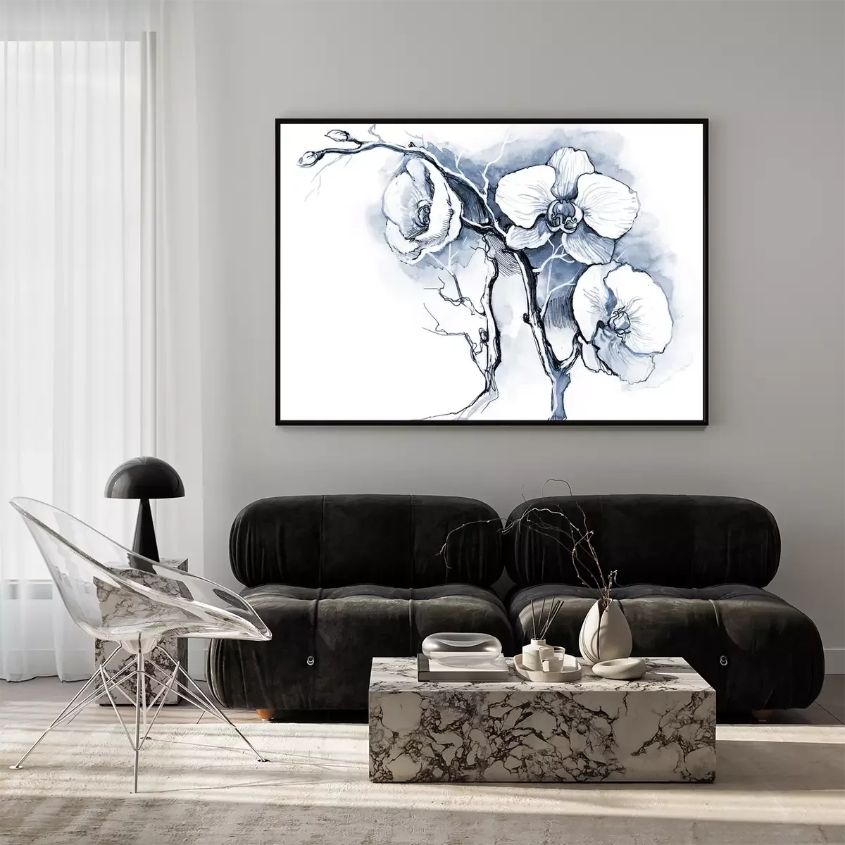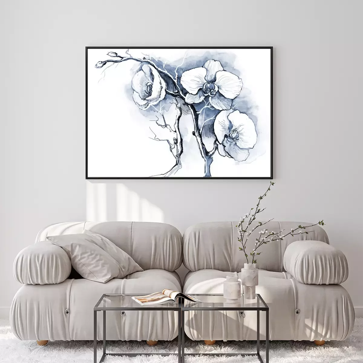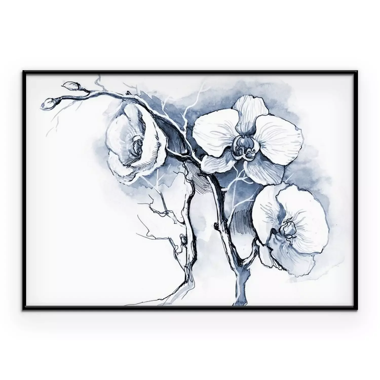 Poster: Zarte Orchidee mit scharfem Strich gezeichnet