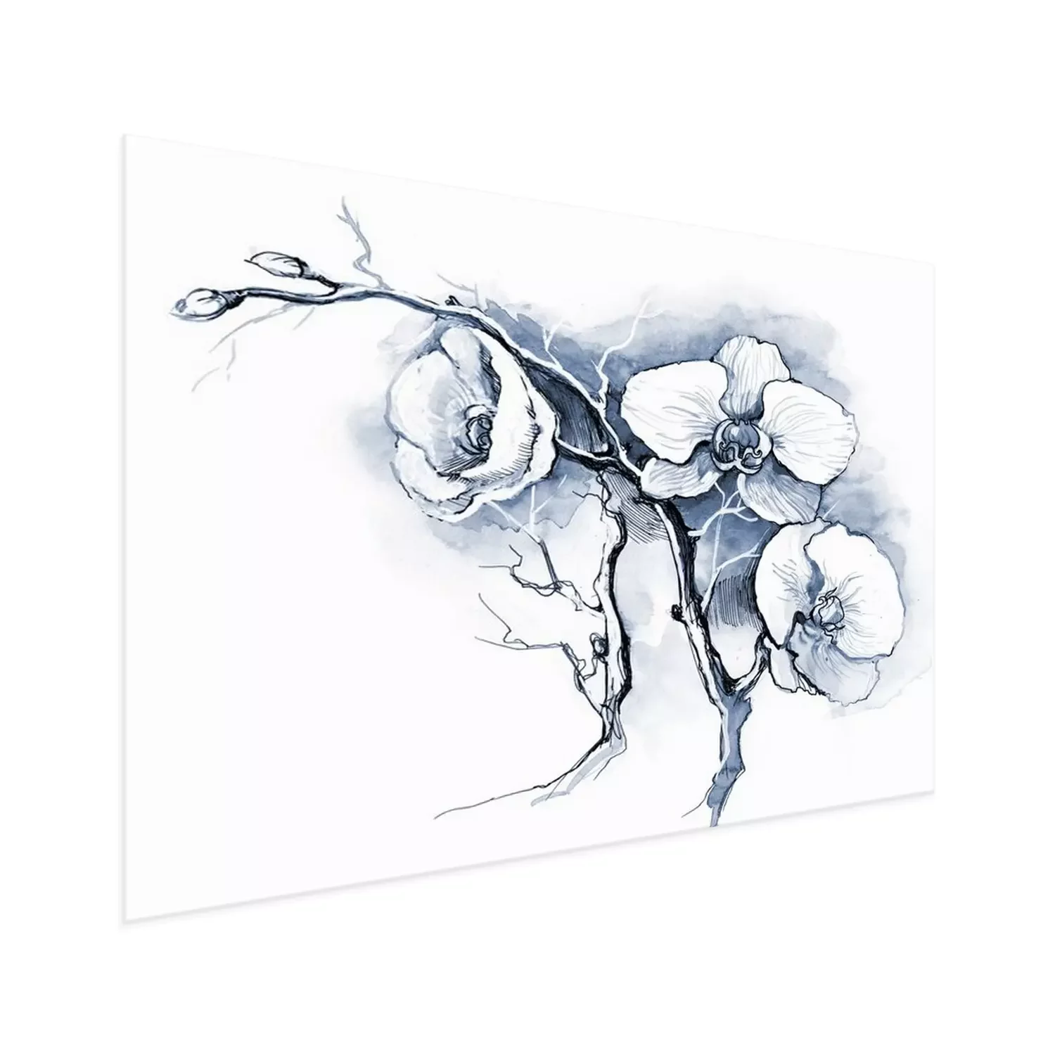 Poster Zarte Orchidee mit scharfem Strich gezeichnet