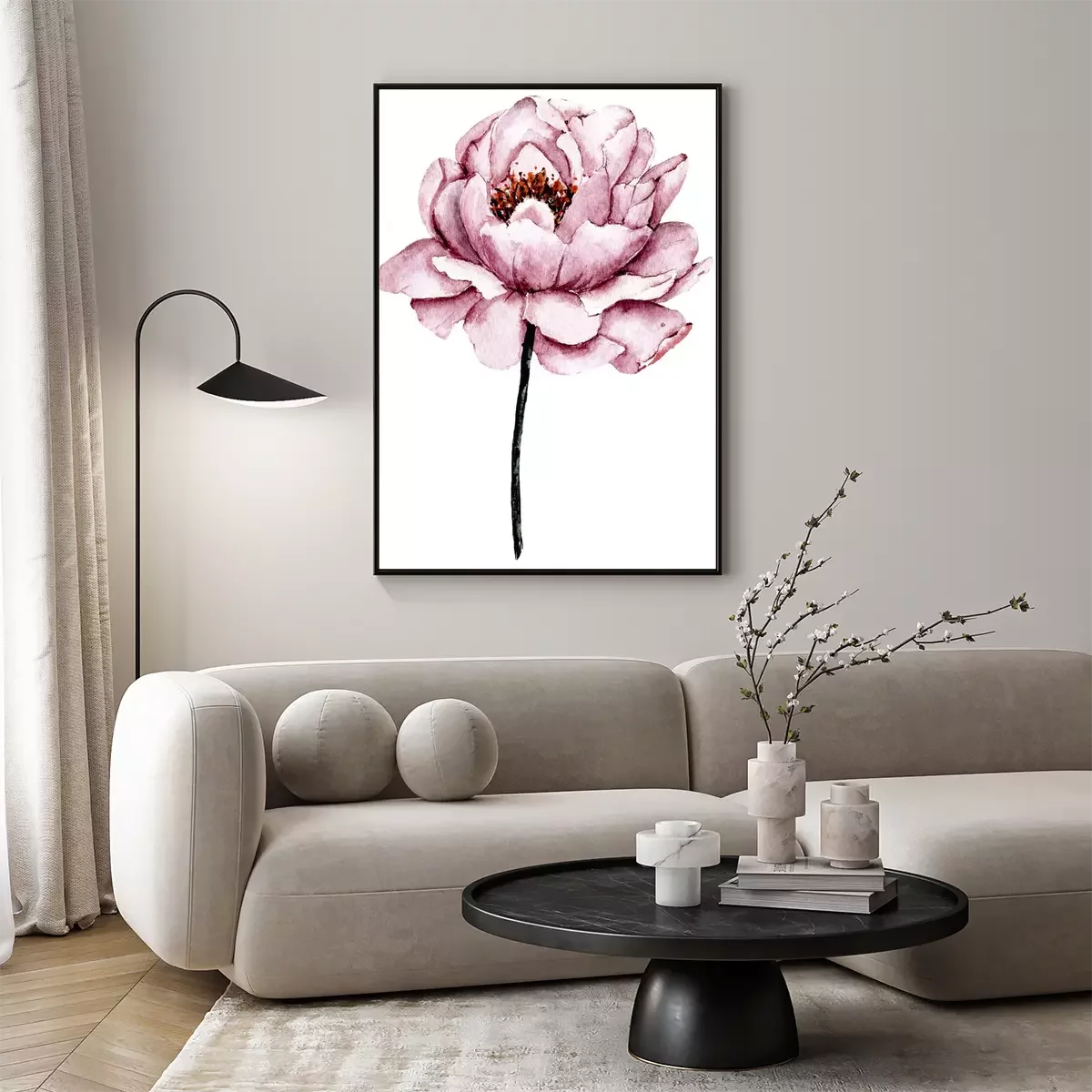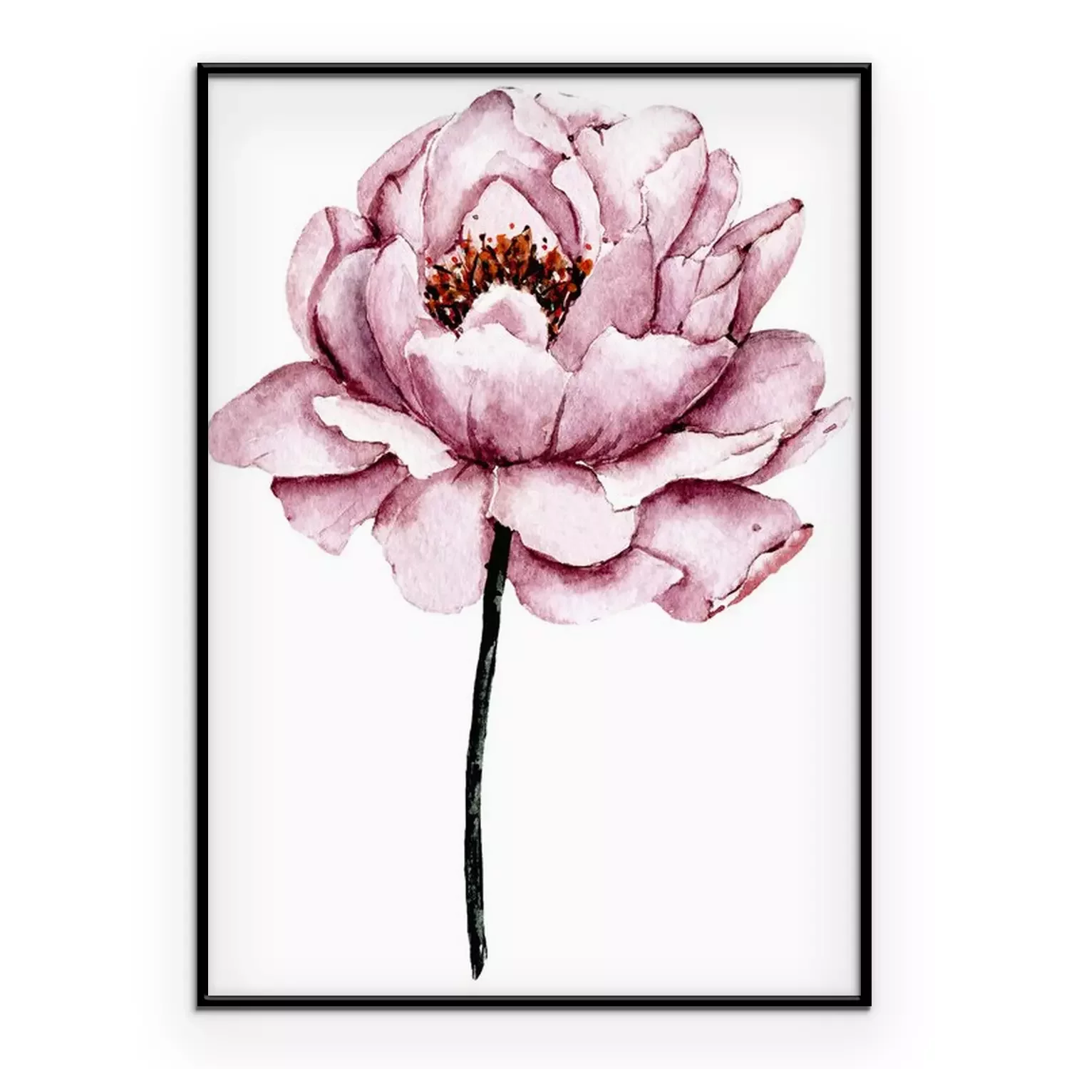 Poster: Zarte Pfingstrose auf einem schwarzen Stiel