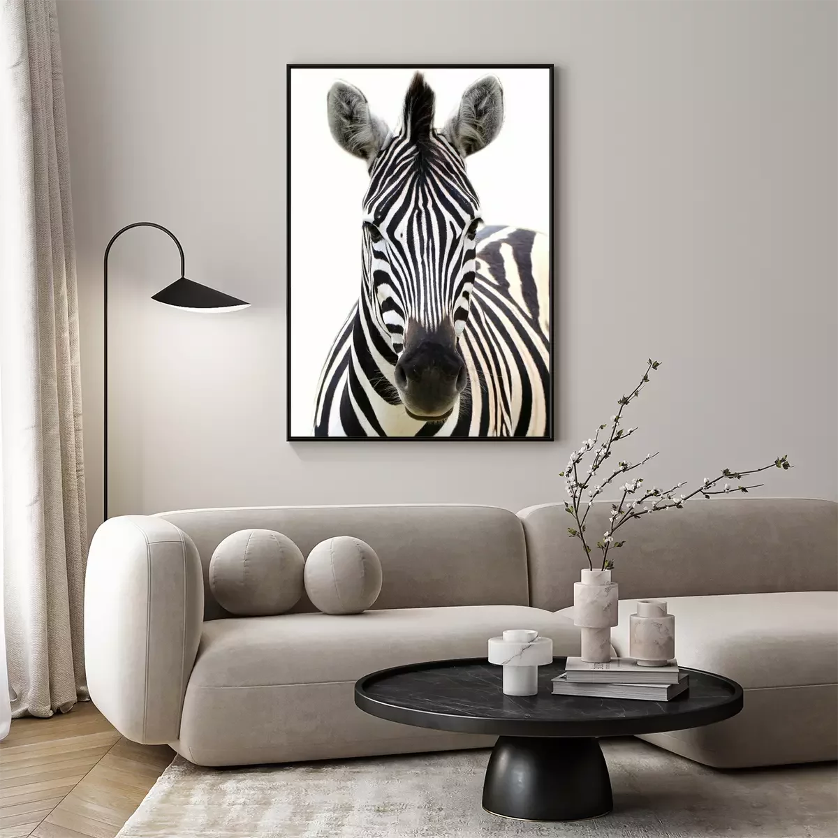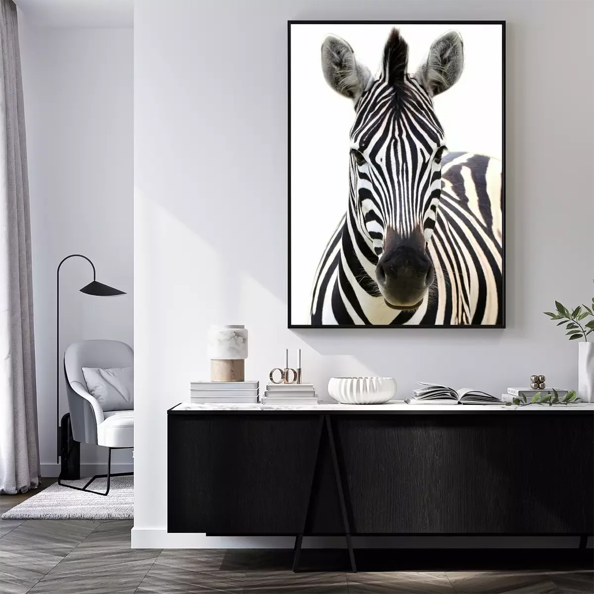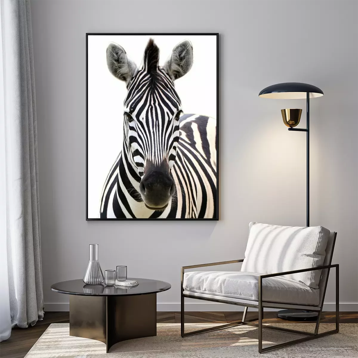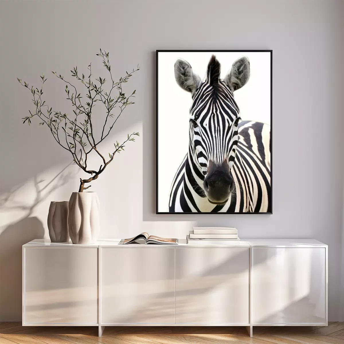 Poster: Zebra auf weißem Hintergrund