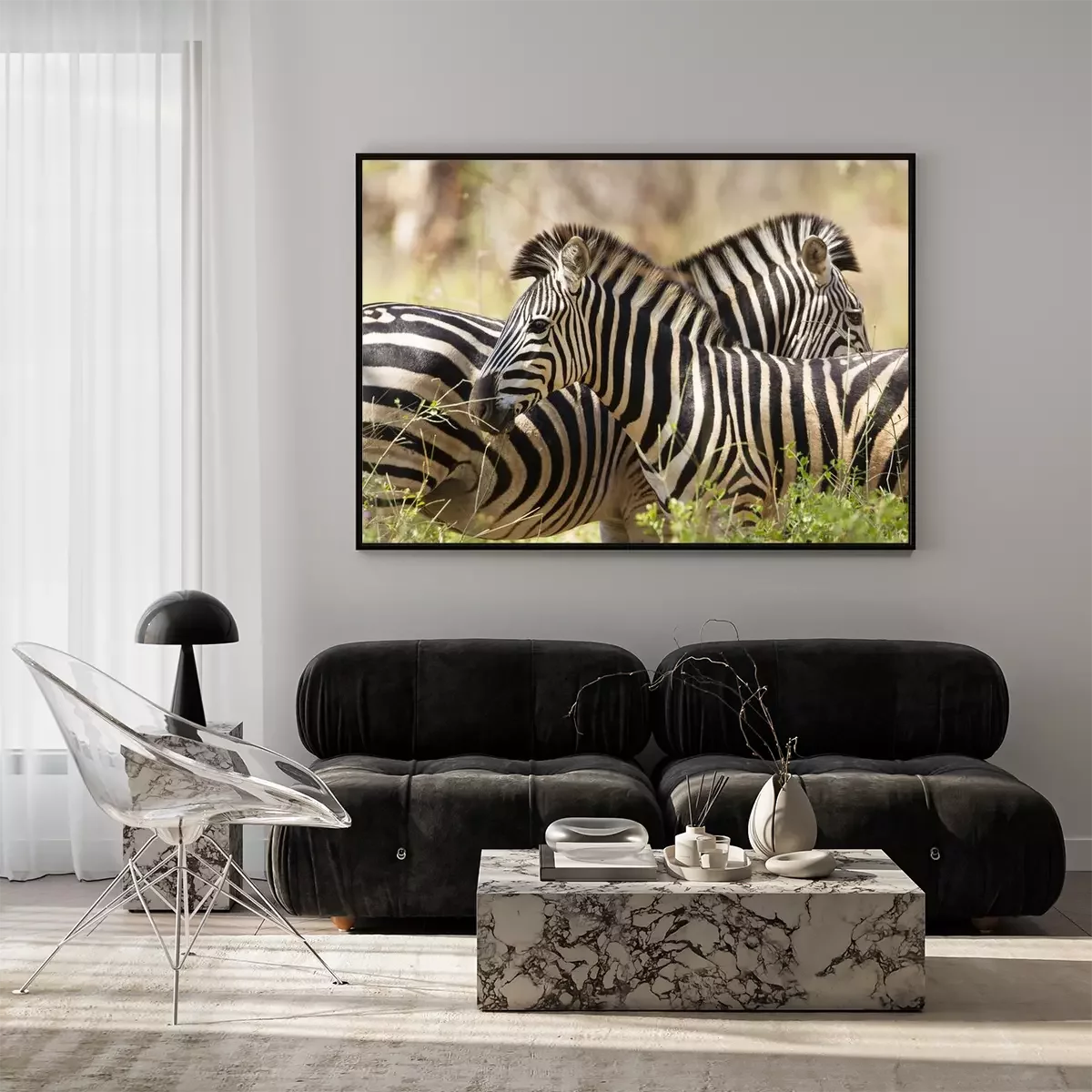 Poster Zebras mit gefiederten Mähnen