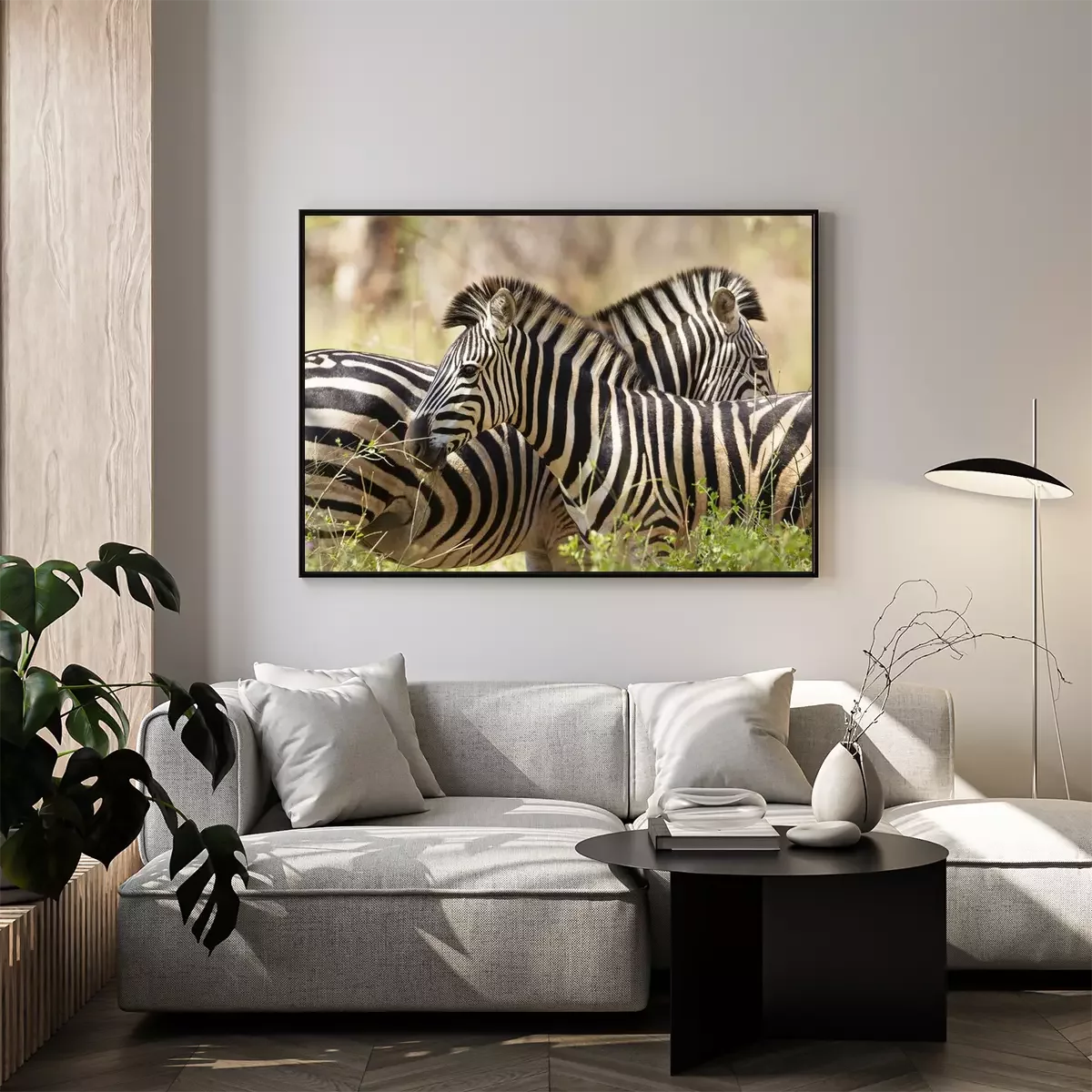 Poster: Zebras mit gefiederten Mähnen