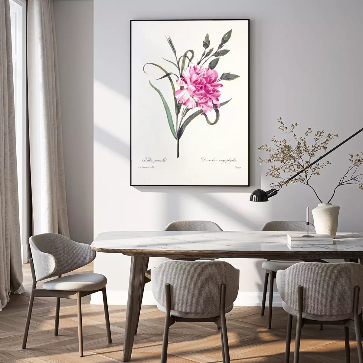 Poster: Zeichnung einer Gartennelke in Farbe