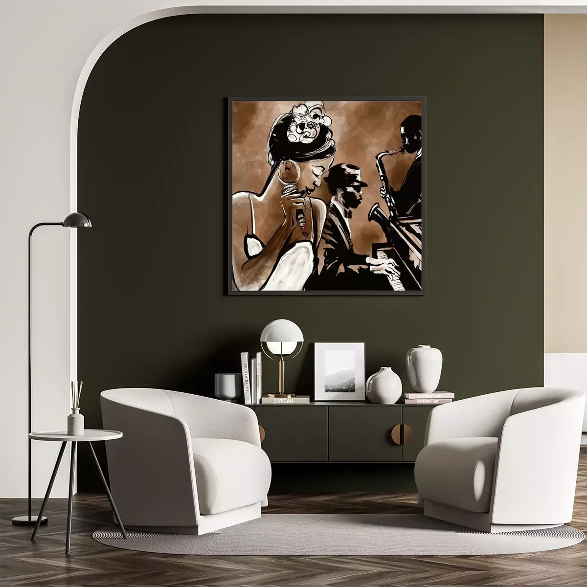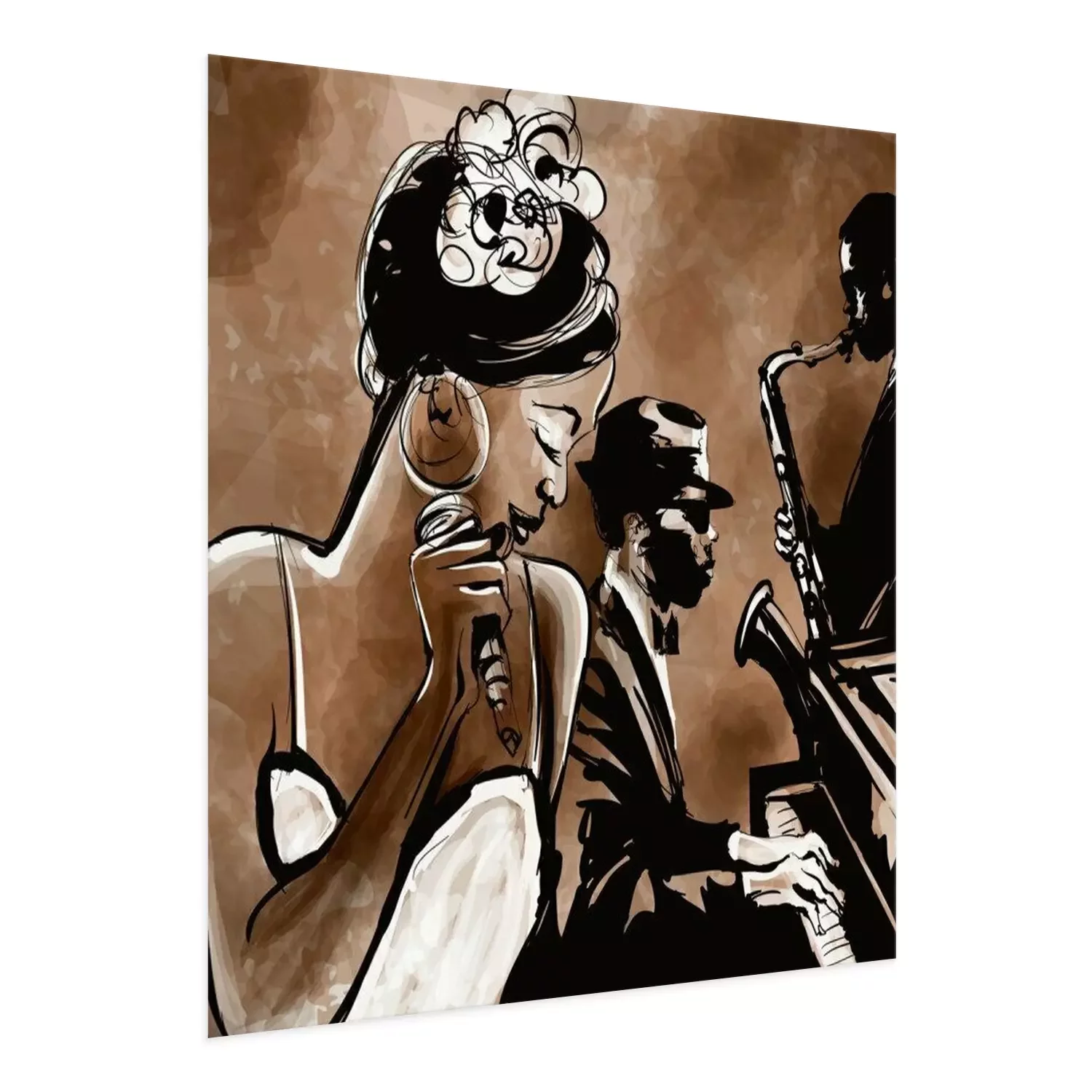 Poster Zeichnung einer Jazzsängerin mit Musikern