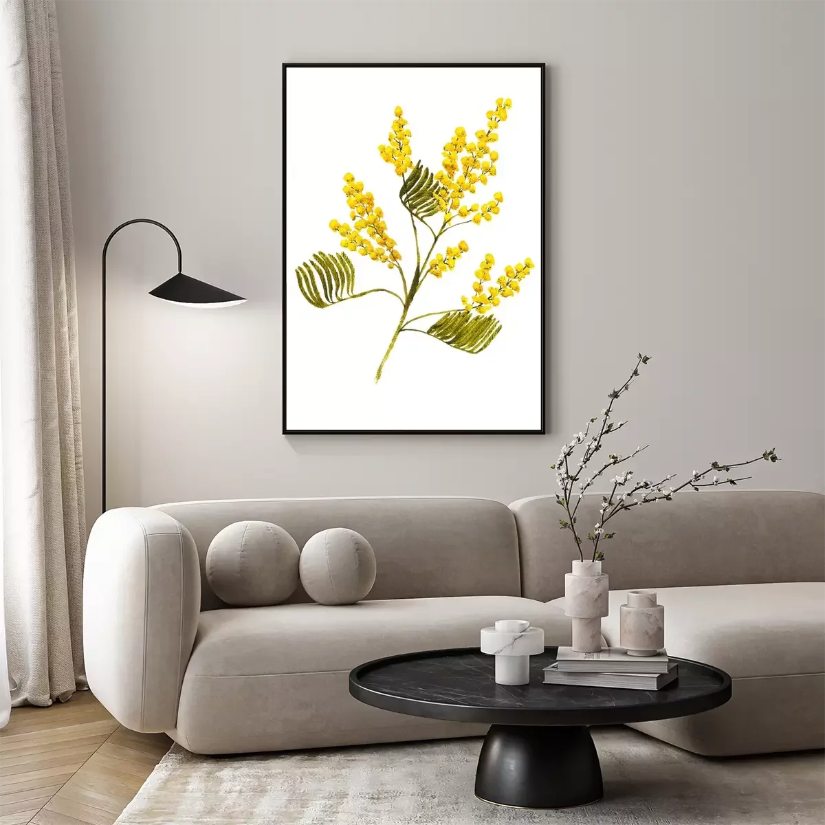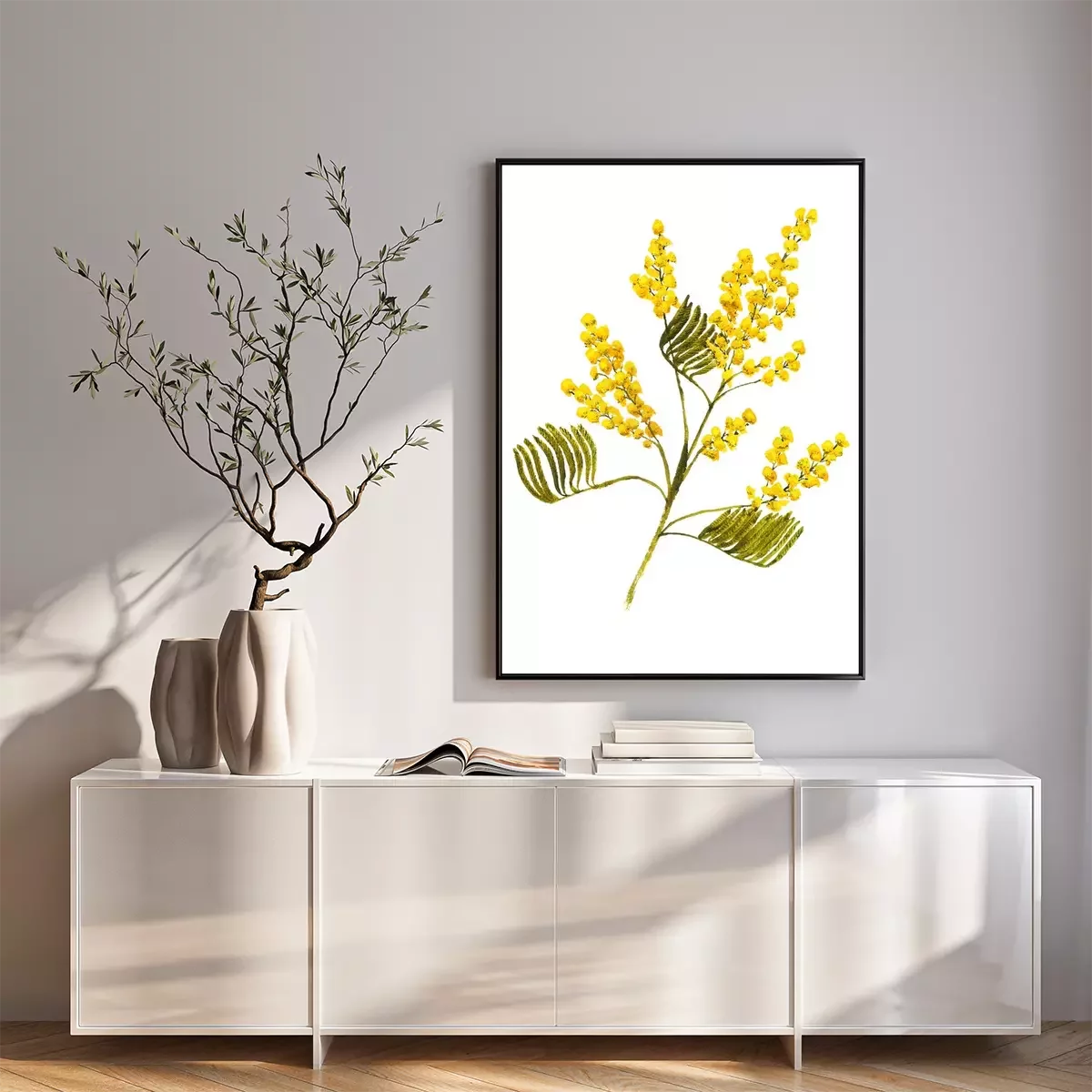 Poster: Zeichnung eines einzelnen Zweiges der gelben Mimose