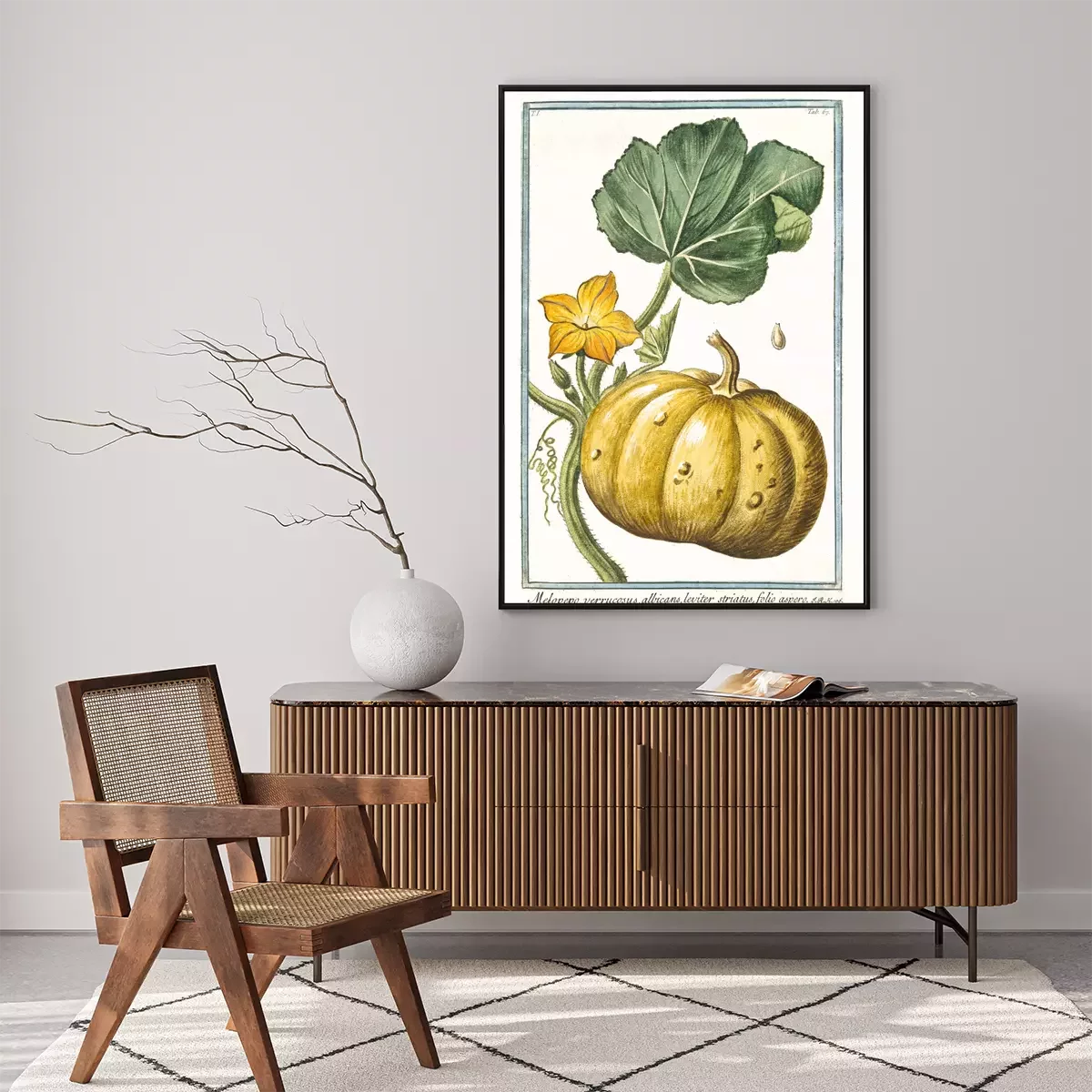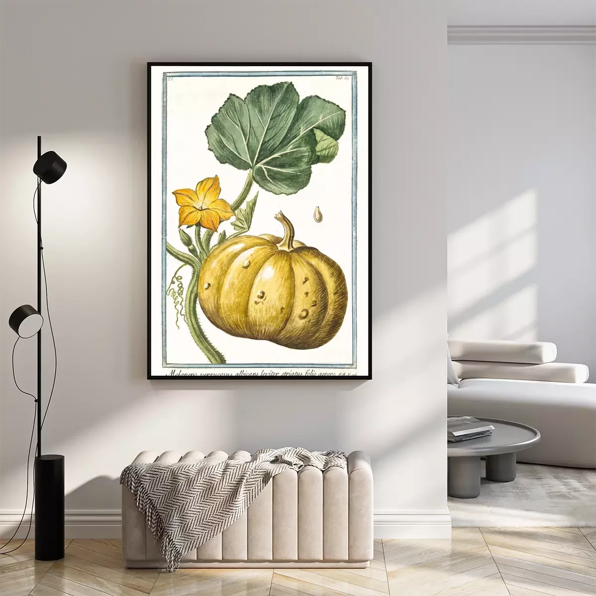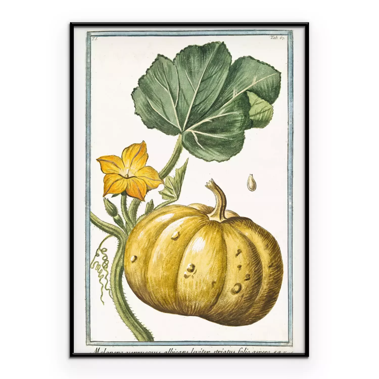 Poster: Zeichnung eines gelben Kürbisses an einem Zweig