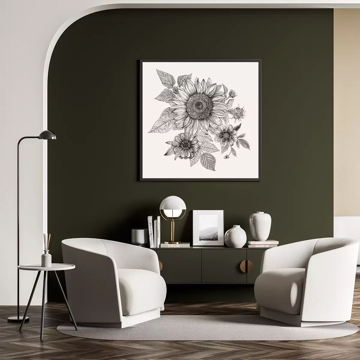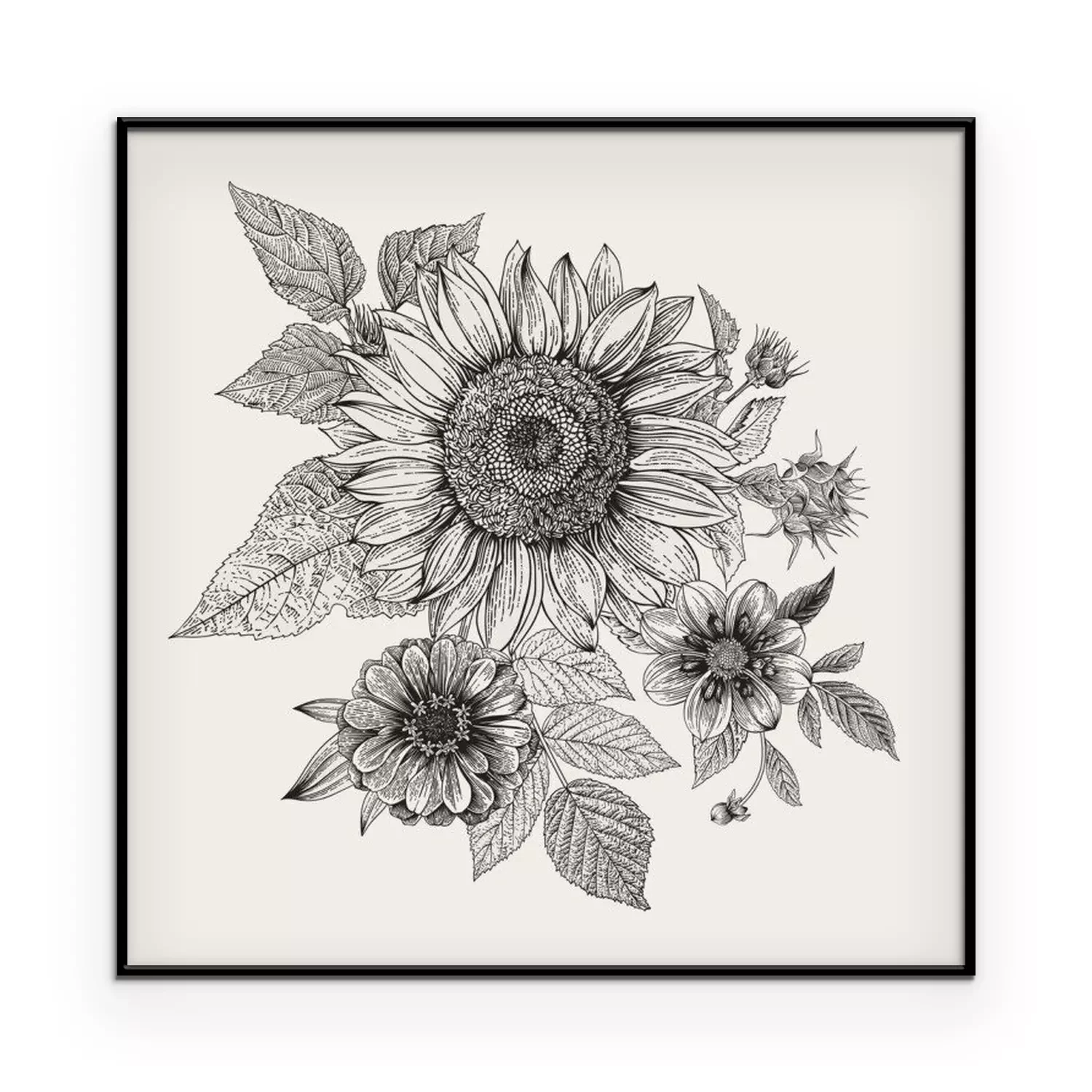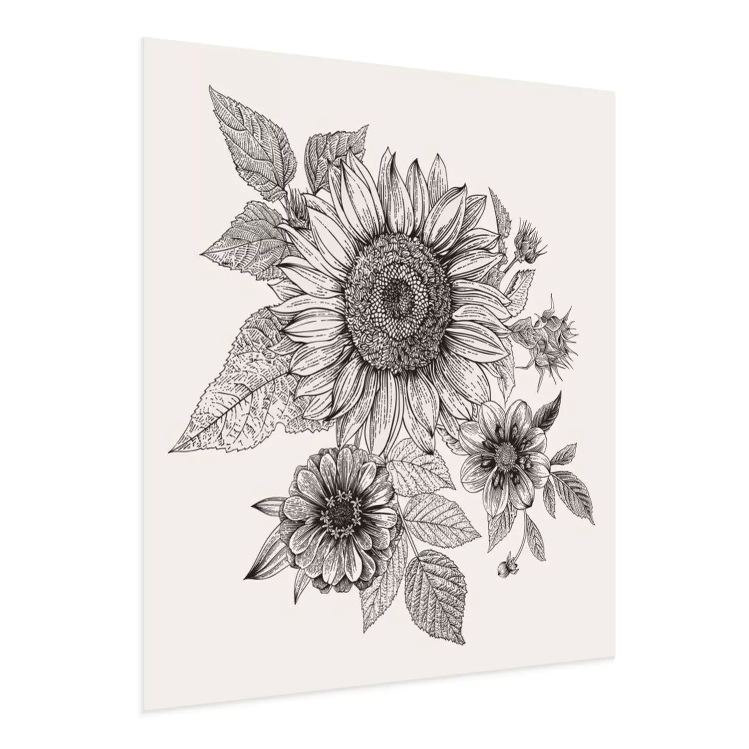 Poster: Zeichnung Sonnenblumen botanische Skizze