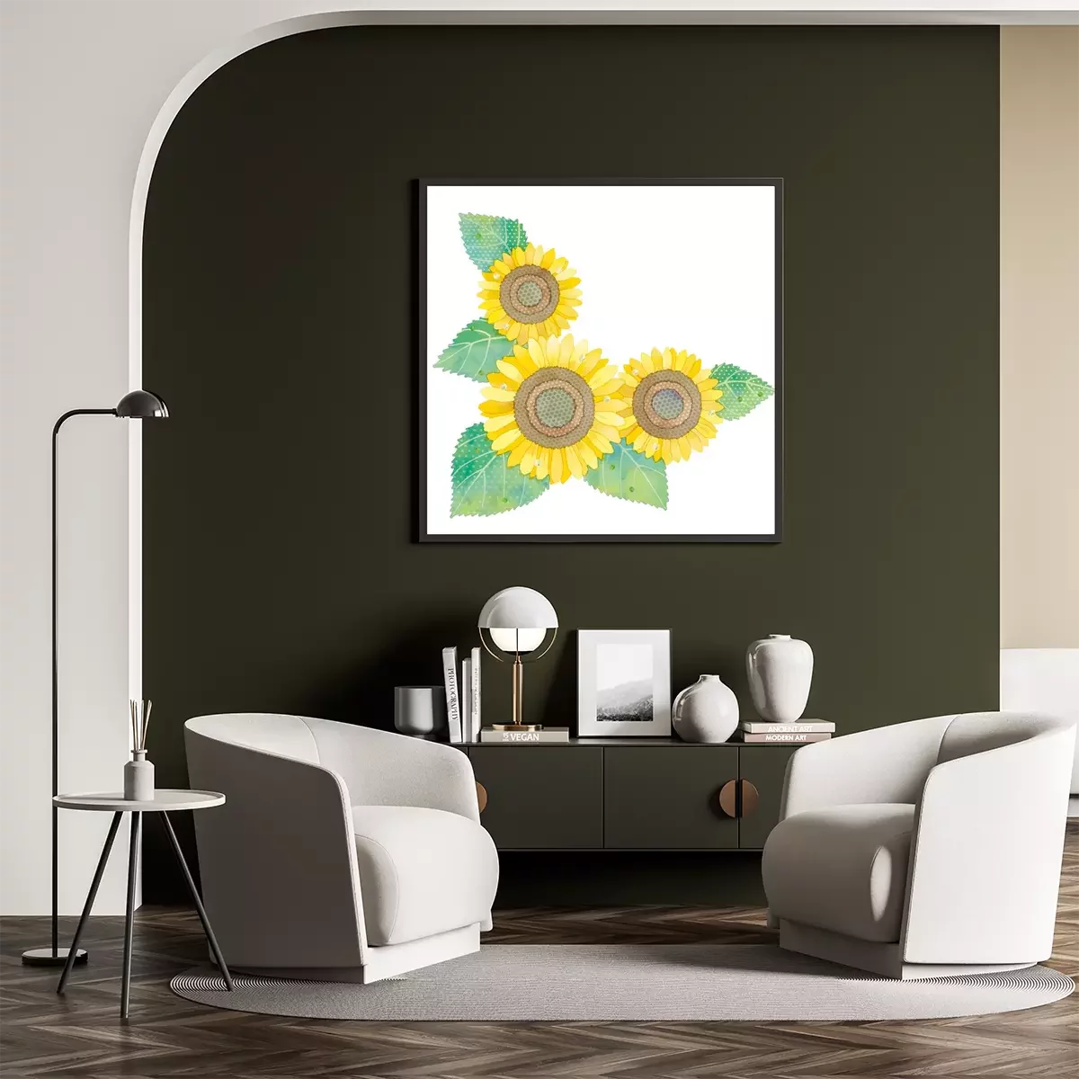 Poster: Zeichnung Sonnenblumen mit gepunkteten Blättern