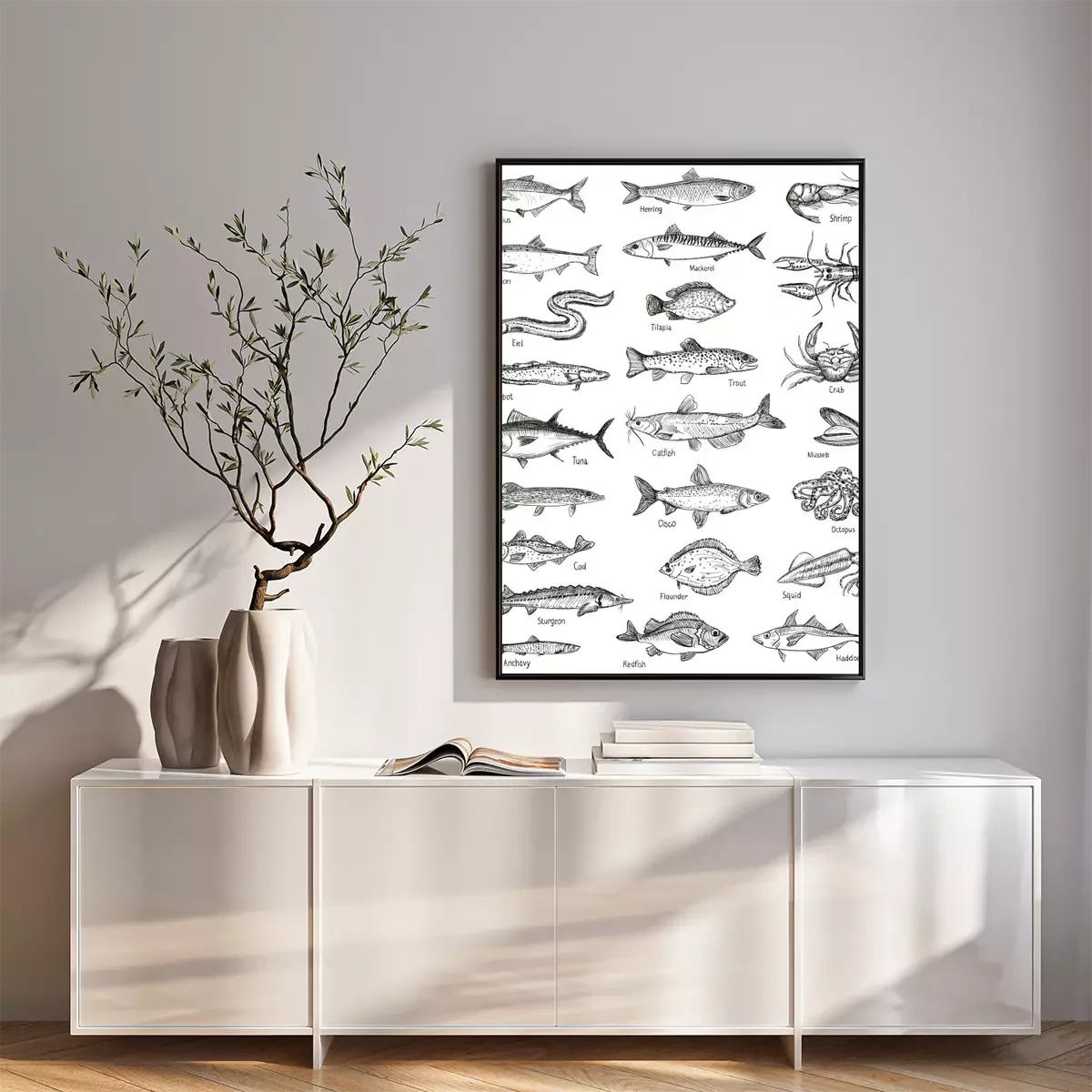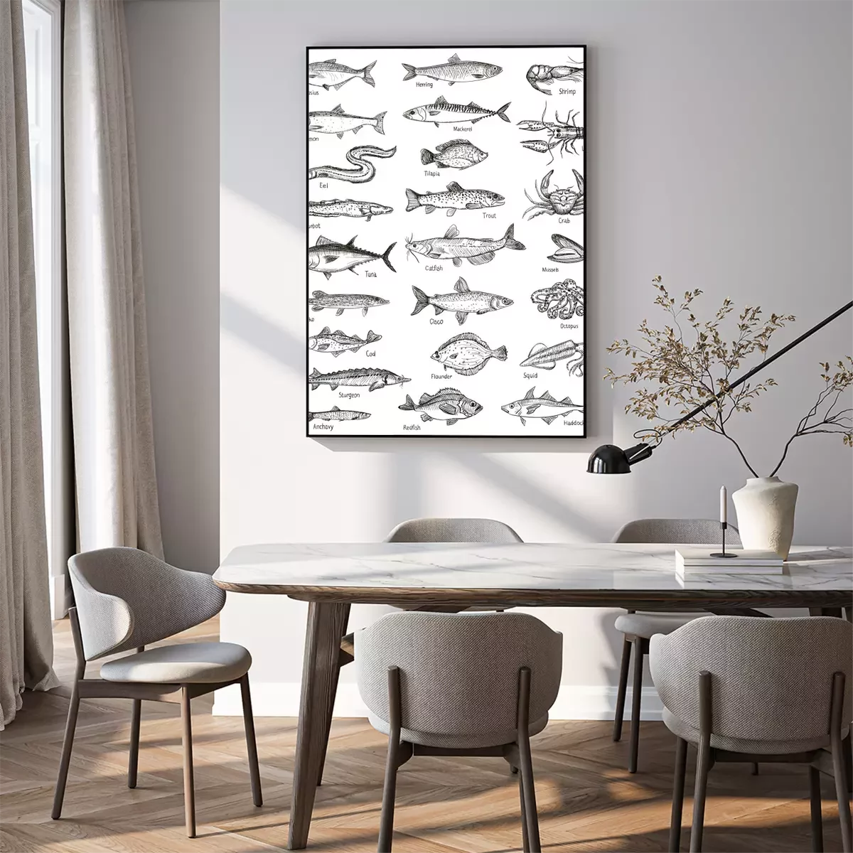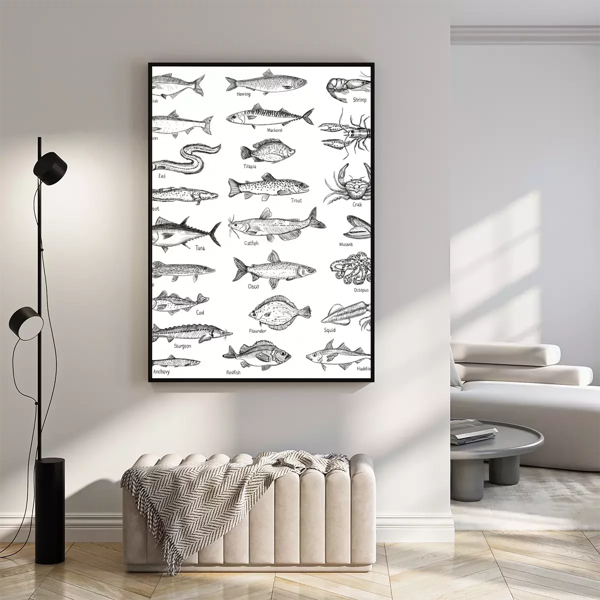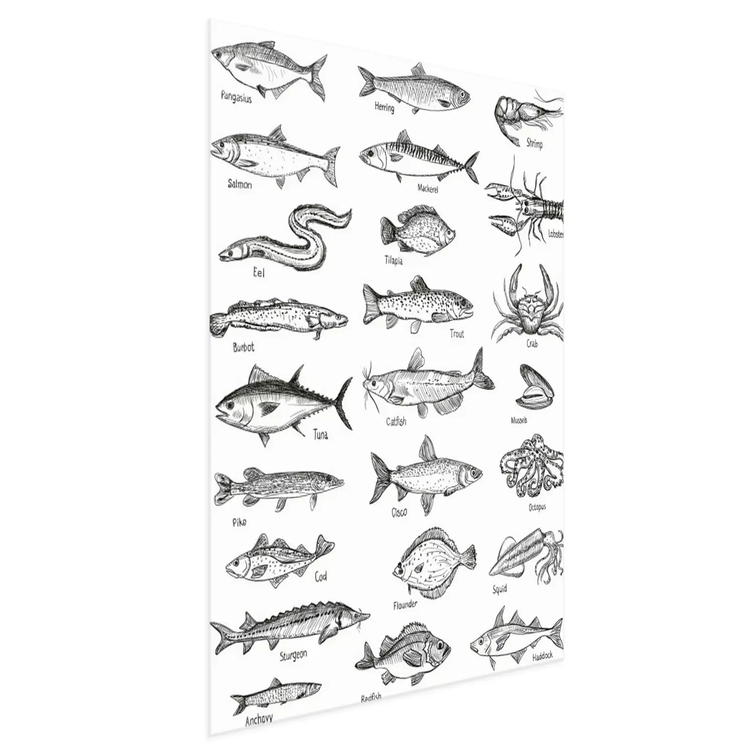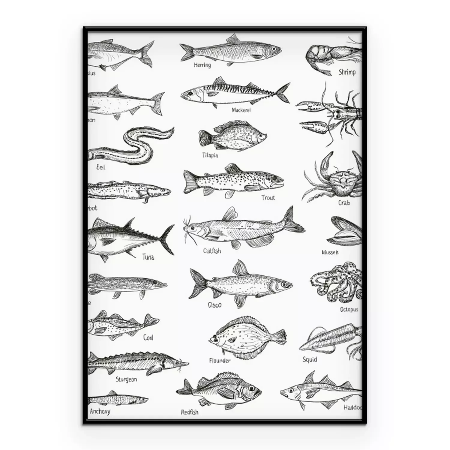Poster: Zeichnung von mehreren Fischen mit Namen