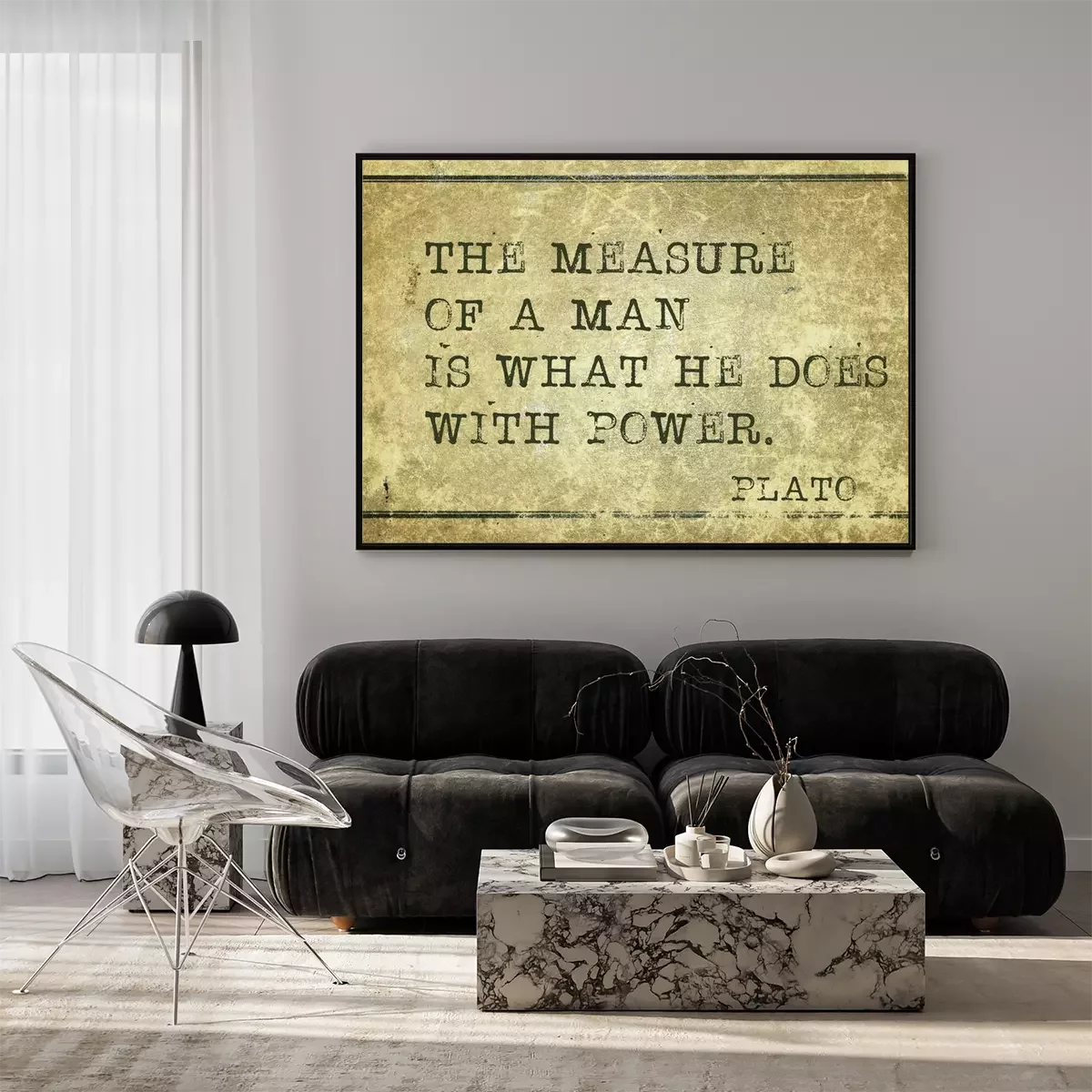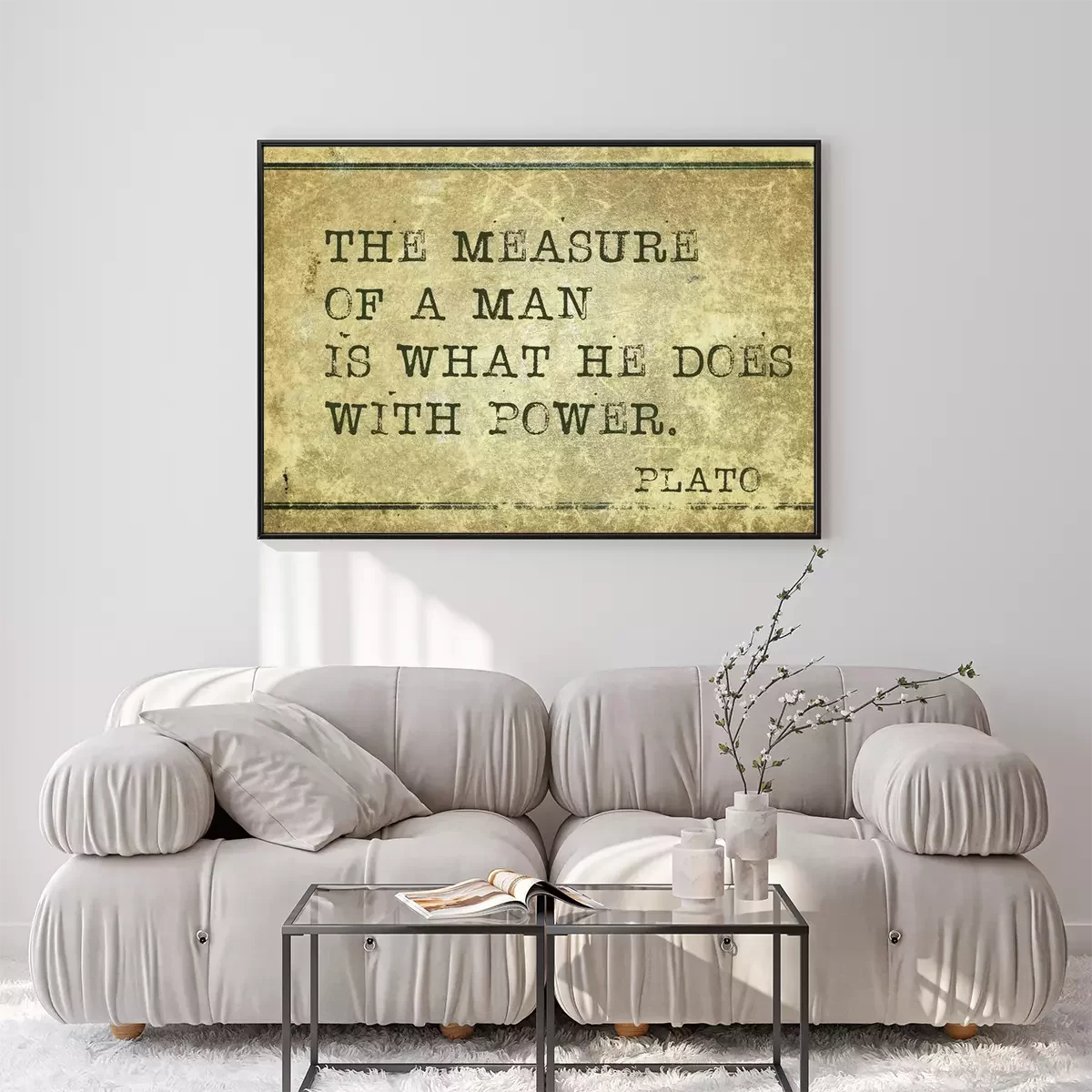 Poster Zitat über die Stärke eines Mannes nach Platon