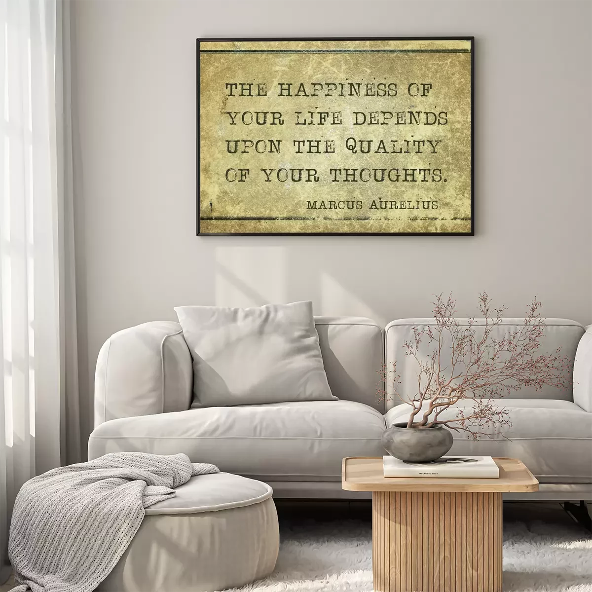 Poster: Zitat über Glück und Gedanken