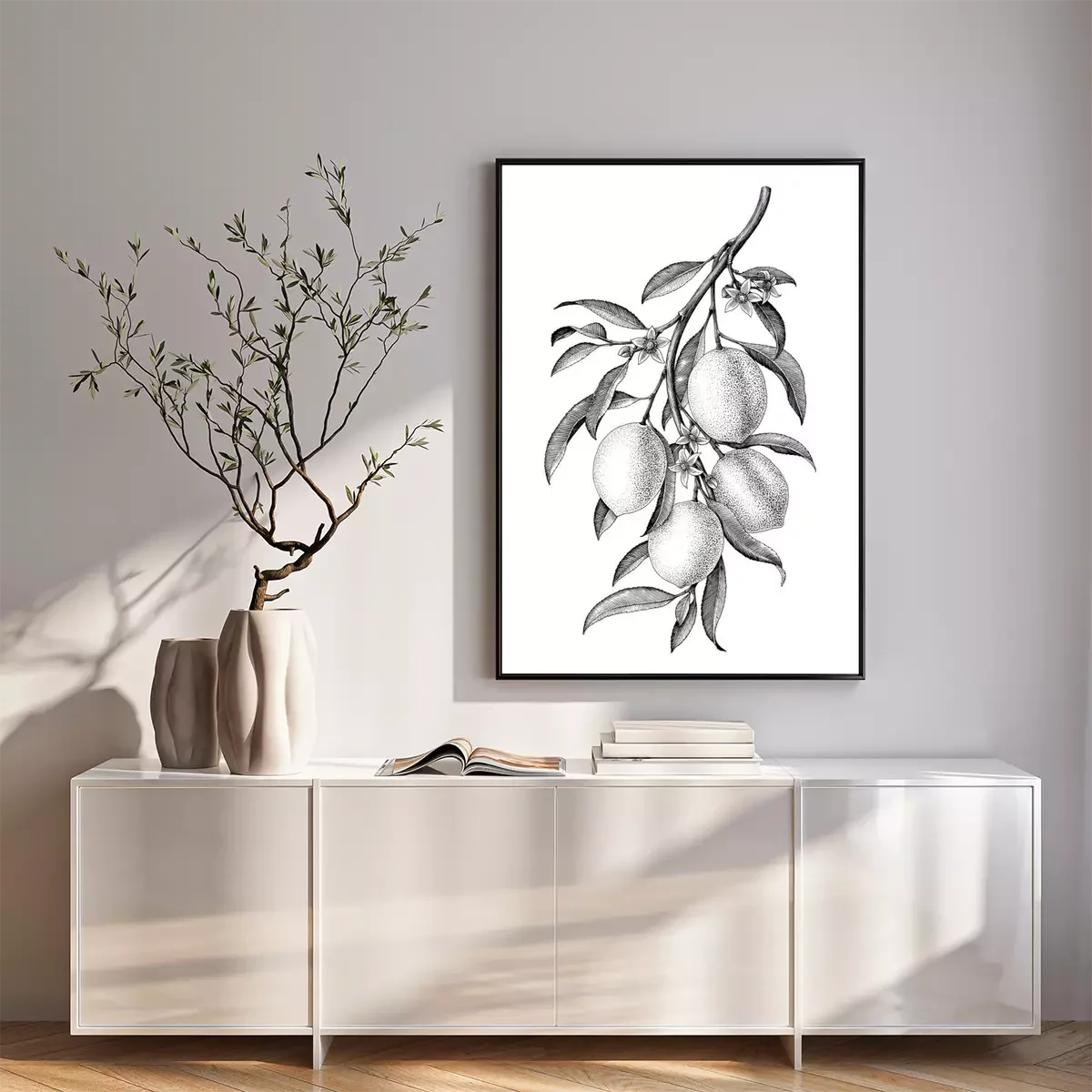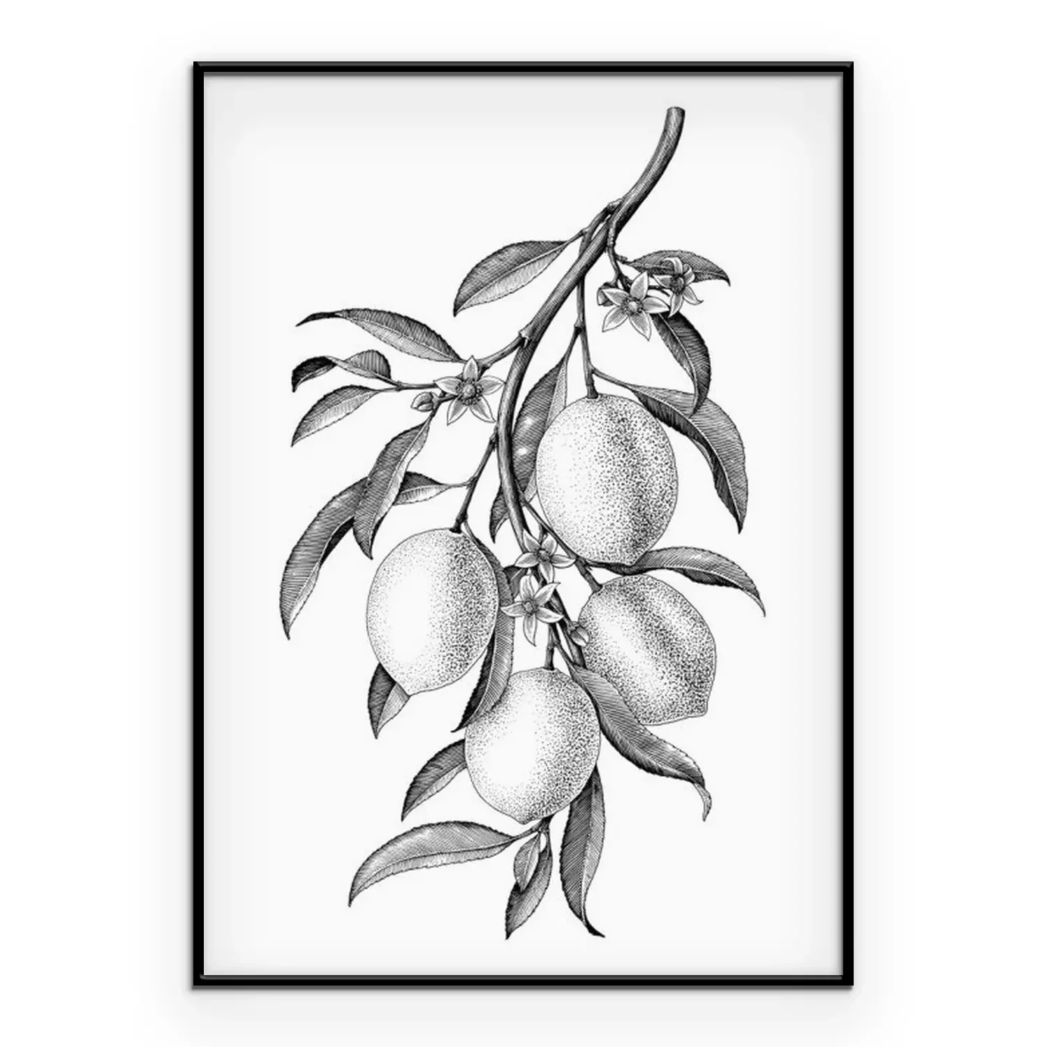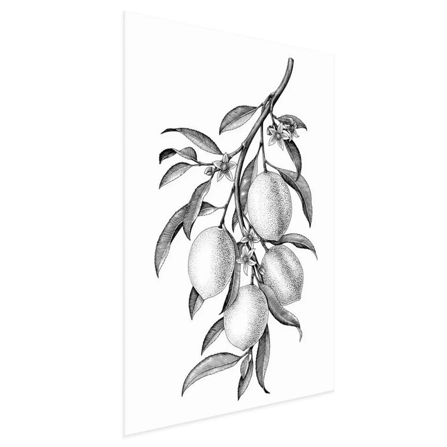 Poster: Zitrone mit einem Zweig schwarz und weiß