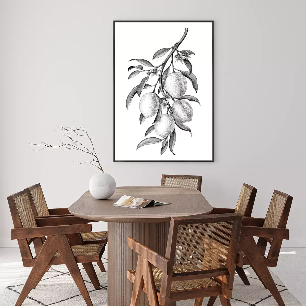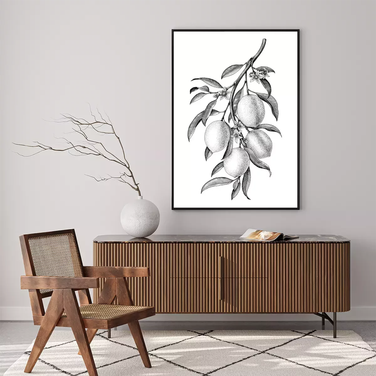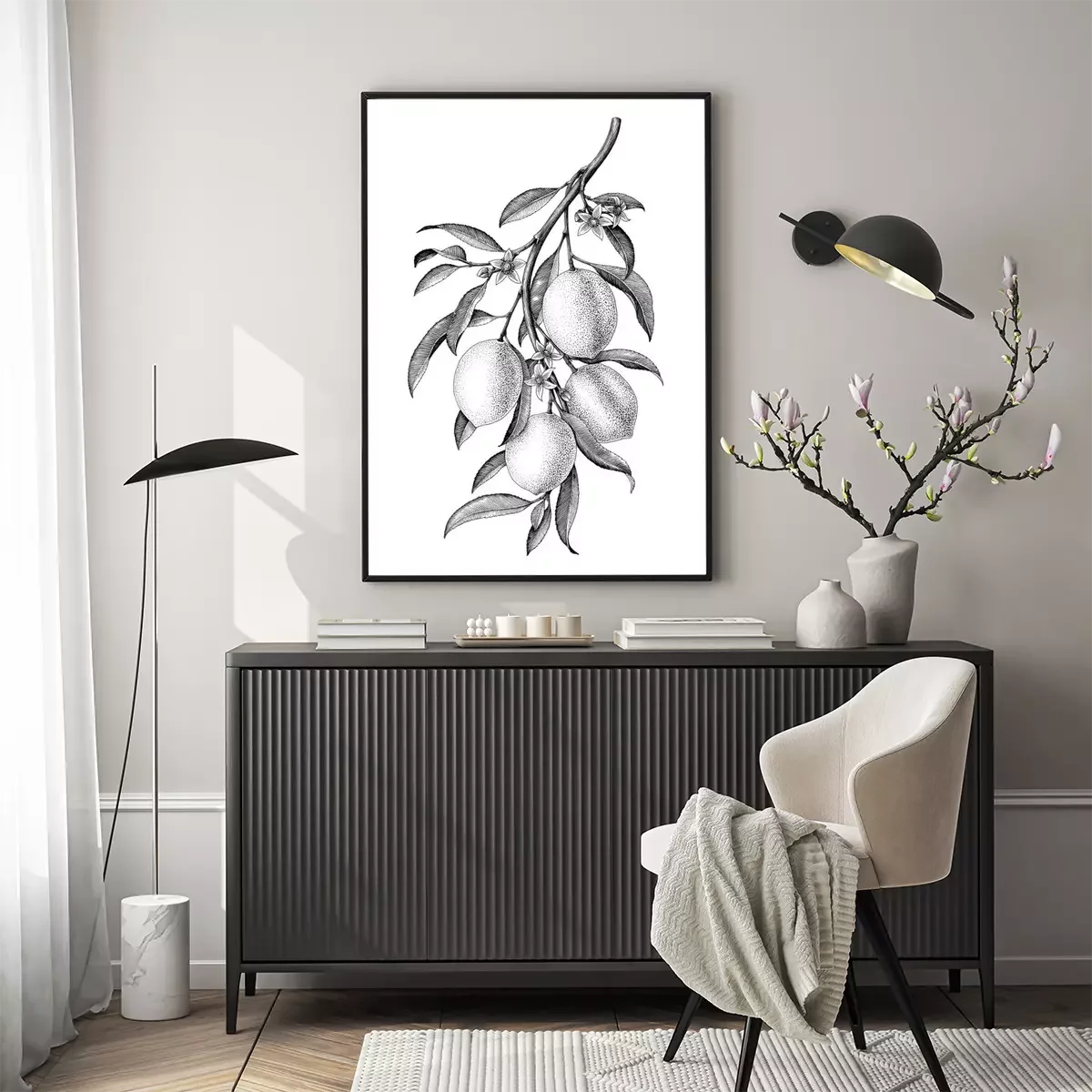 Poster Zitrone mit einem Zweig schwarz und weiß