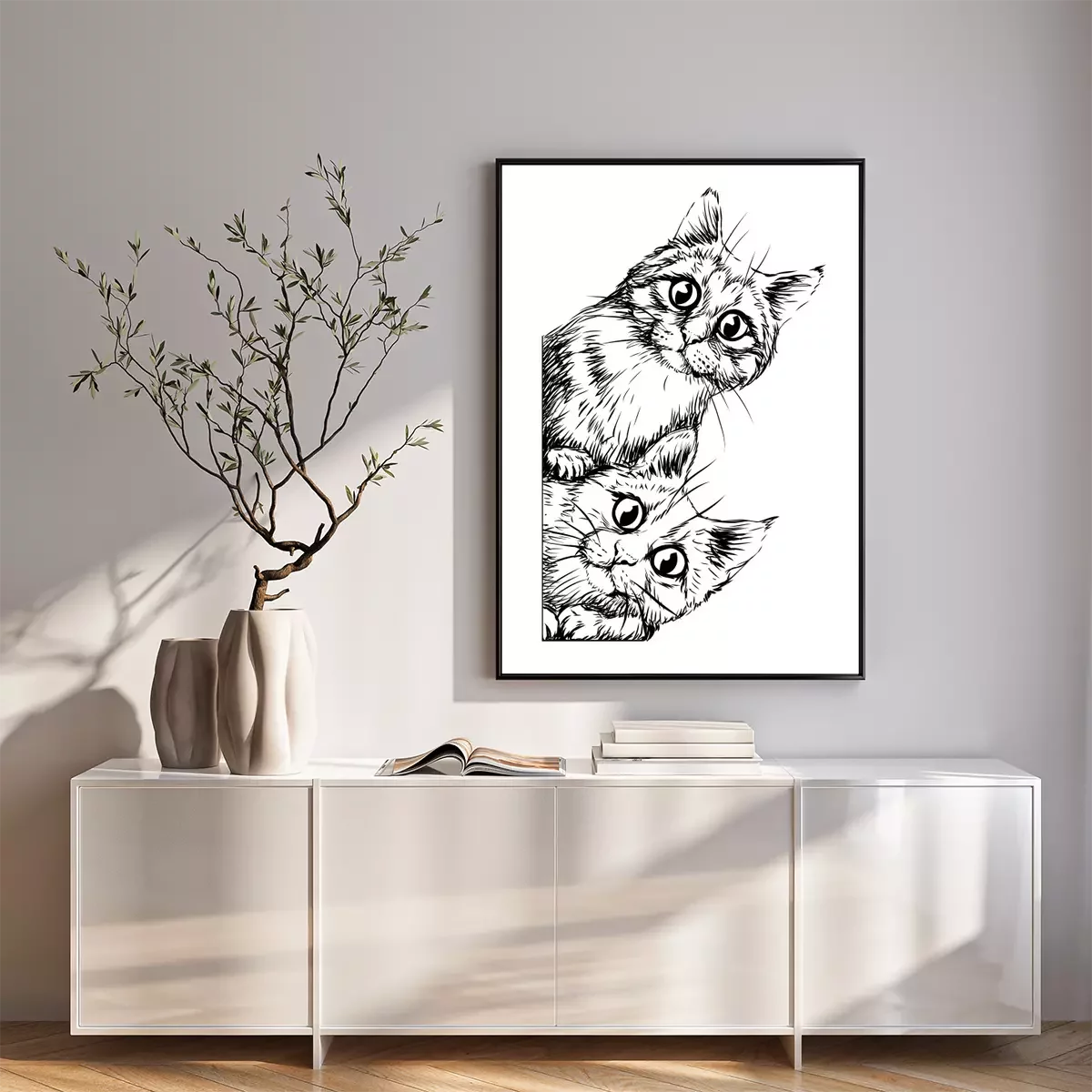 Poster: Zwei Katzen schauen über den Rand