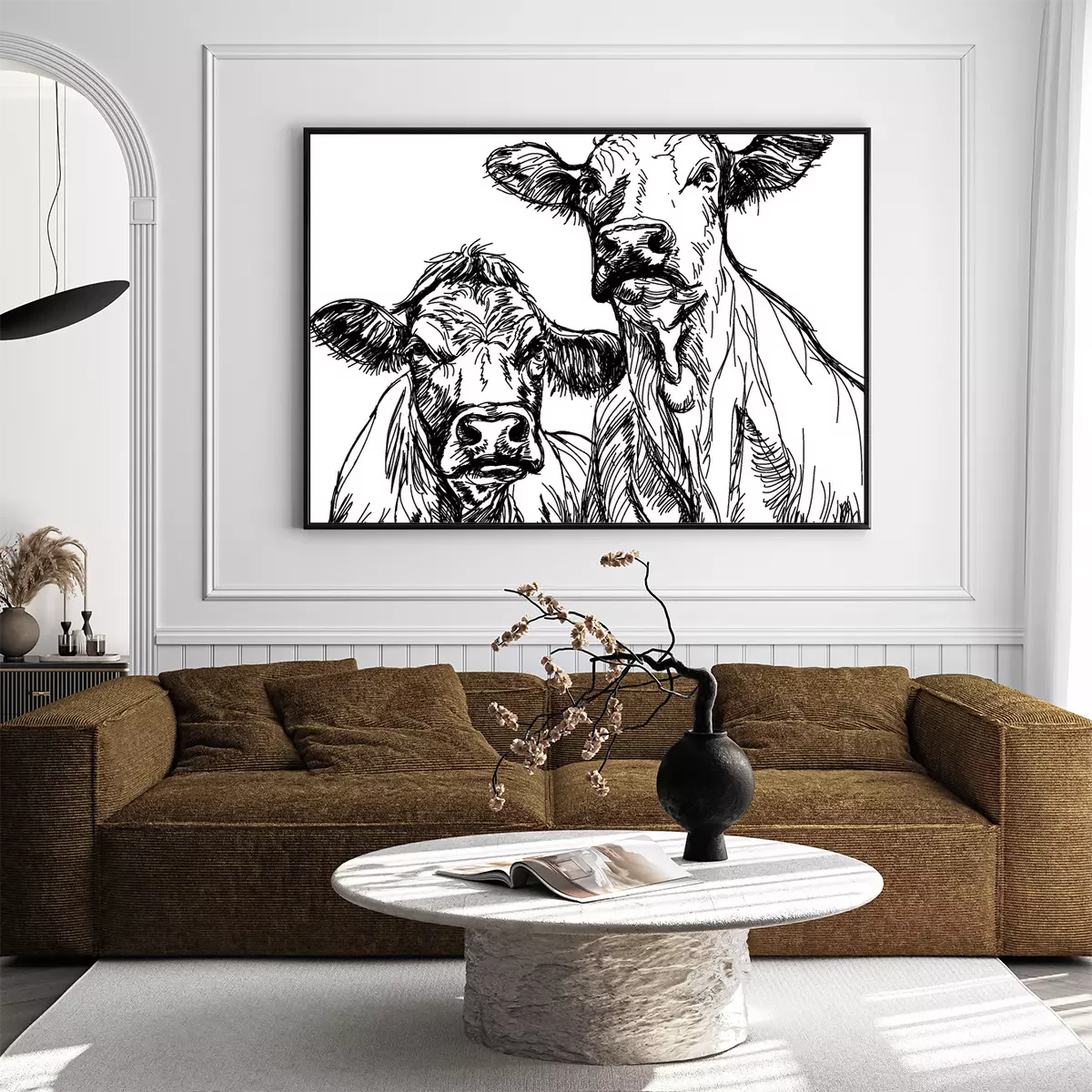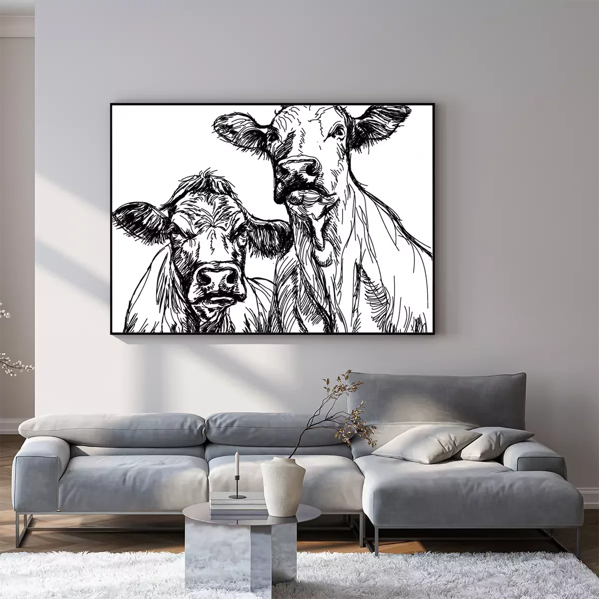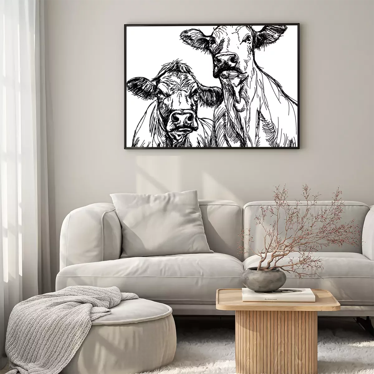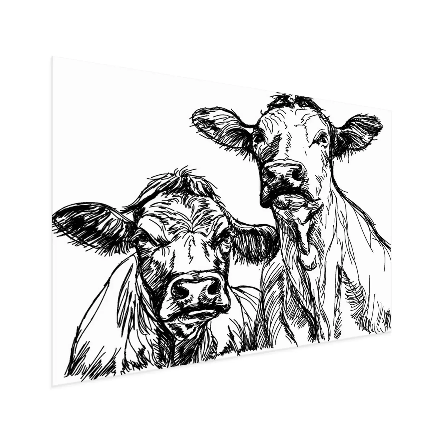 Poster: Zwei Kühe schwarz-weiße Skizze