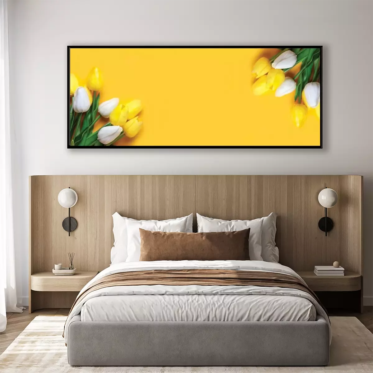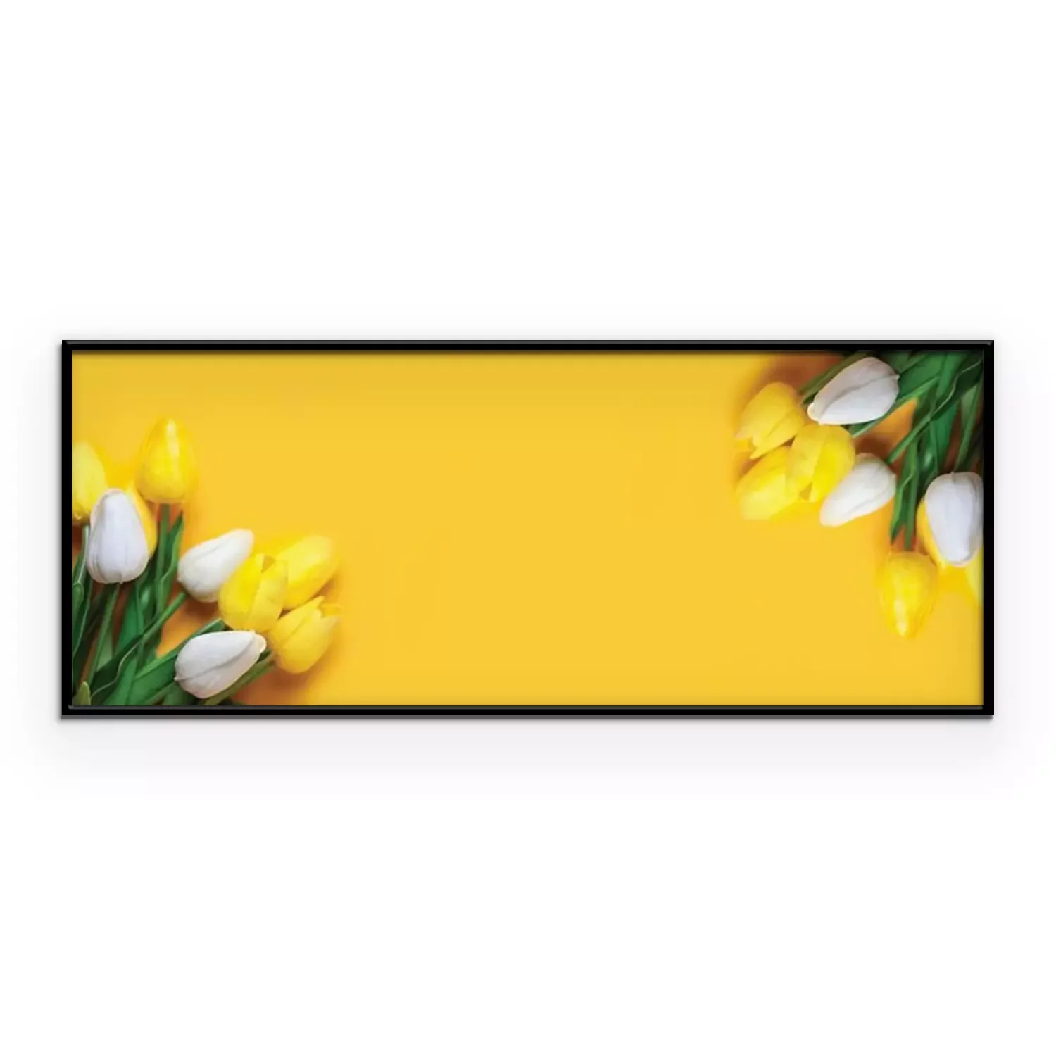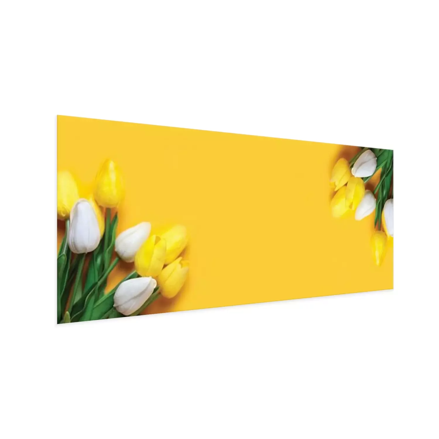 Poster: Zweifarbige Tulpen auf gelbem Hintergrund