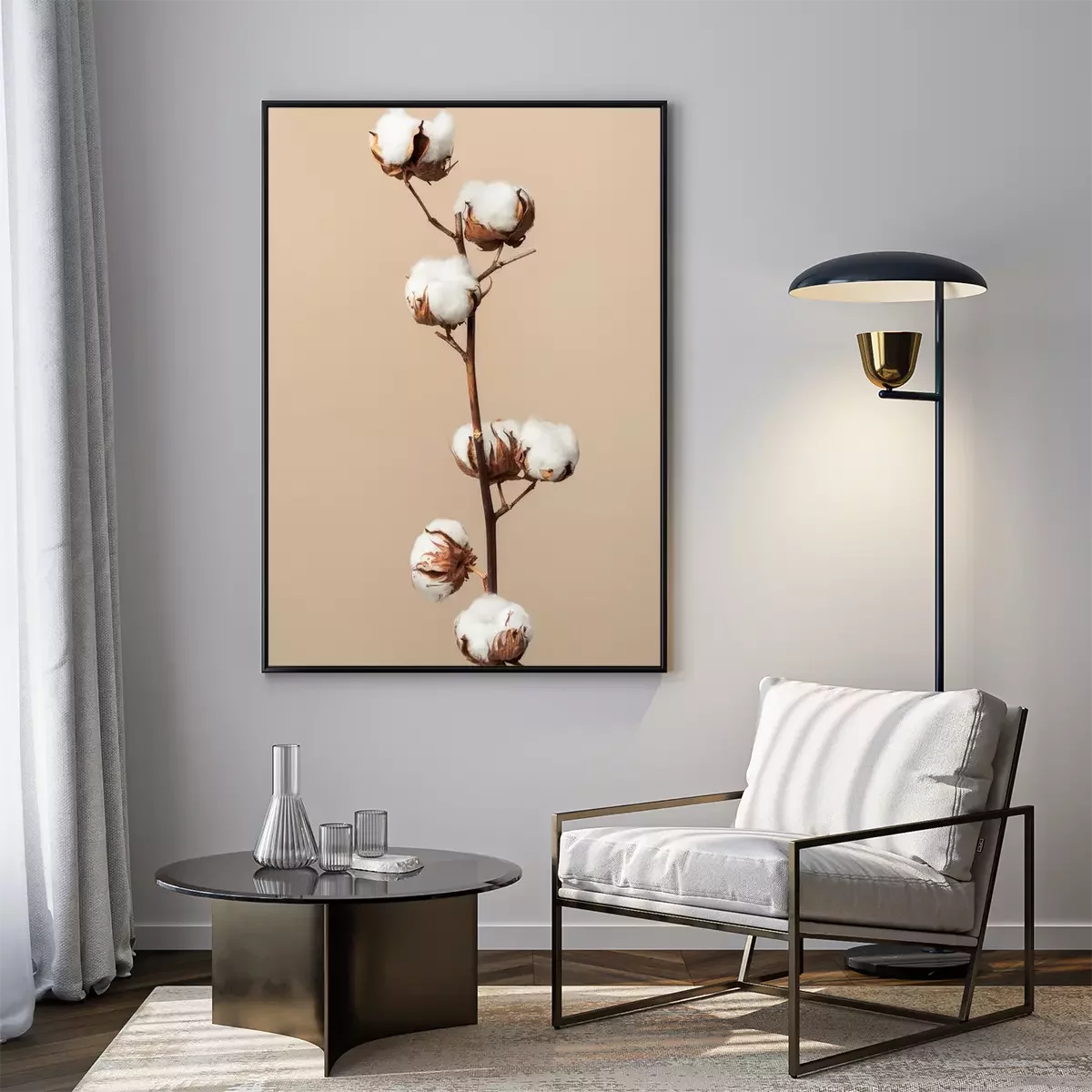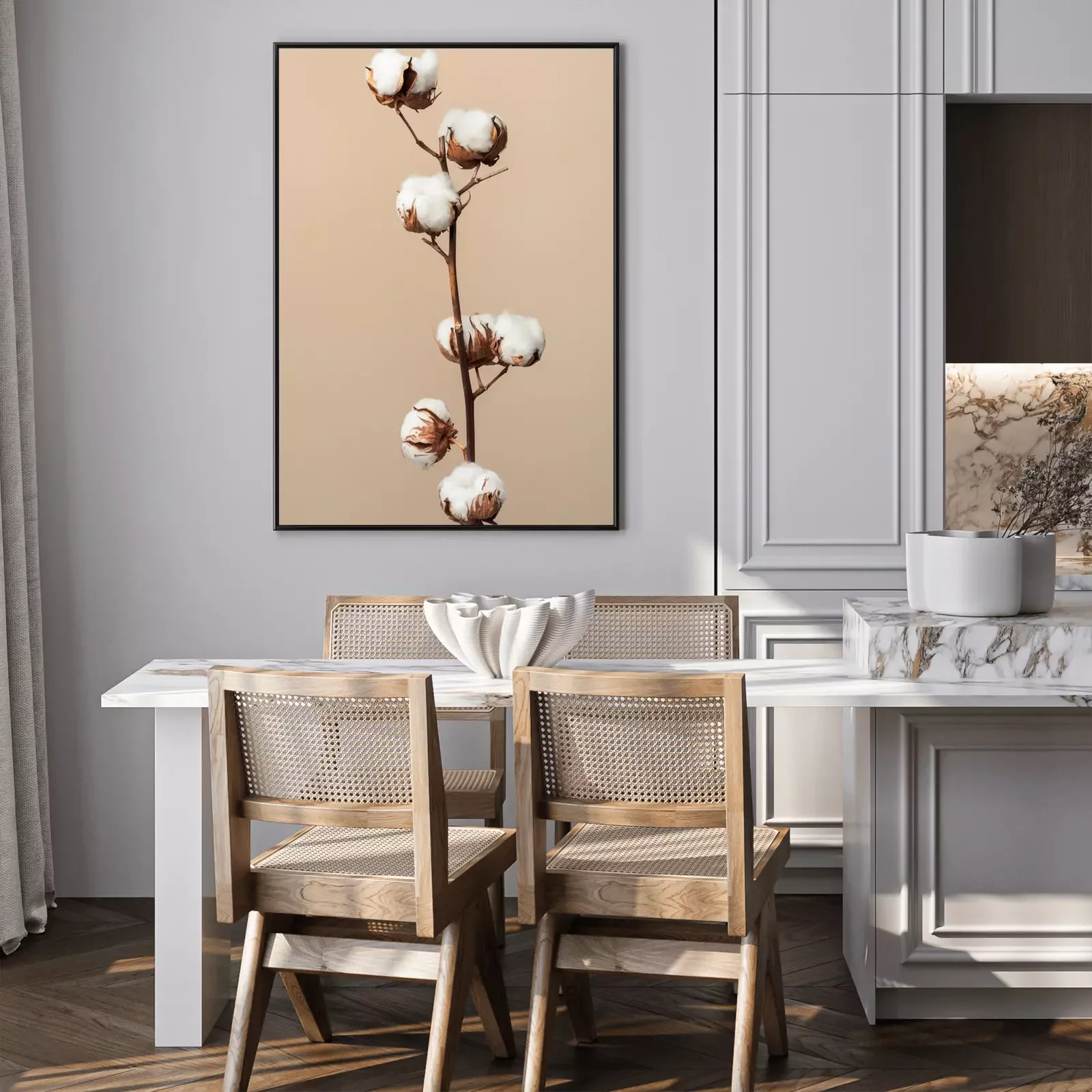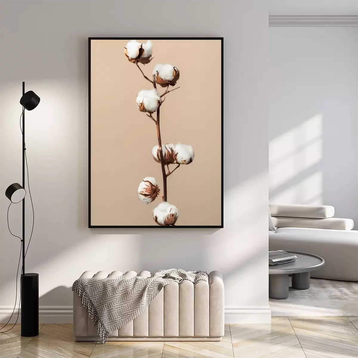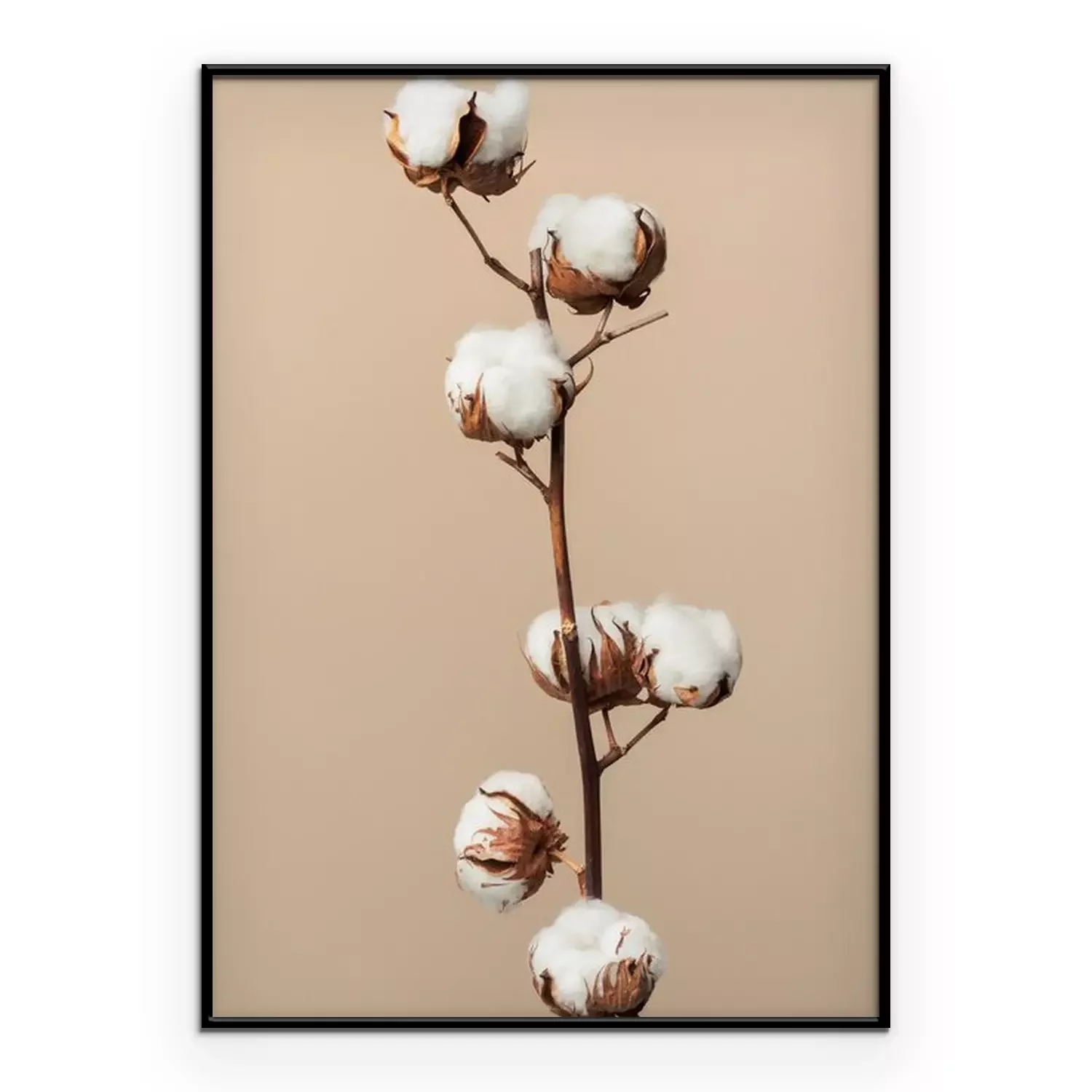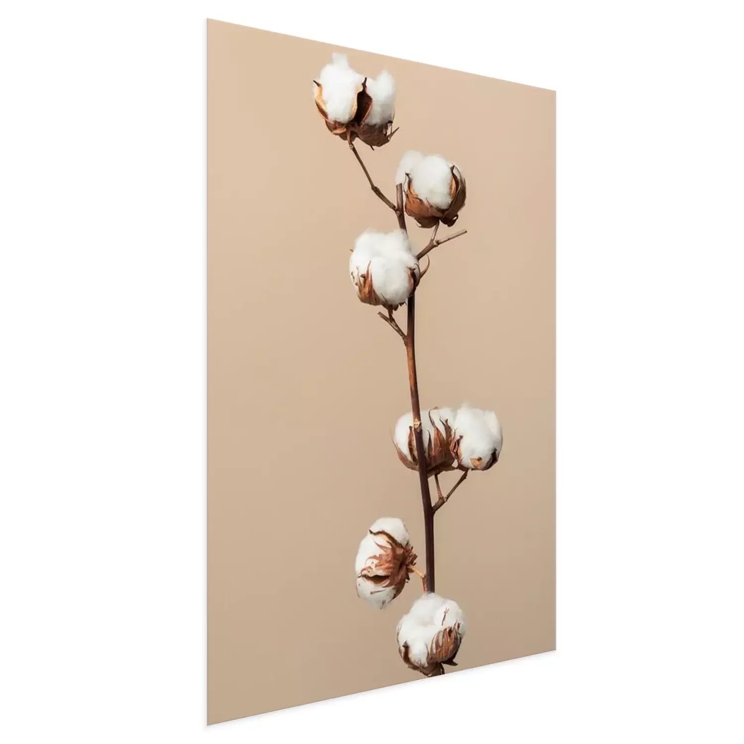Poster: Zweig aus Baumwolle auf beigem Hintergrund