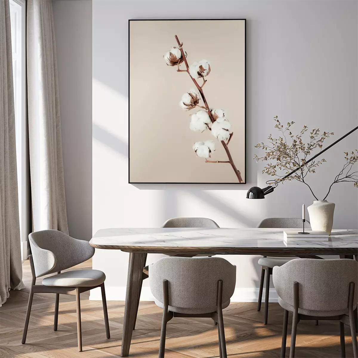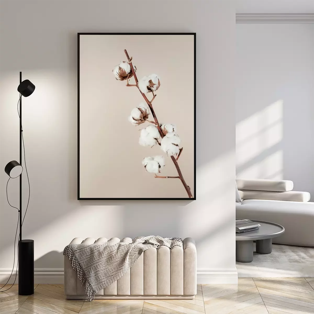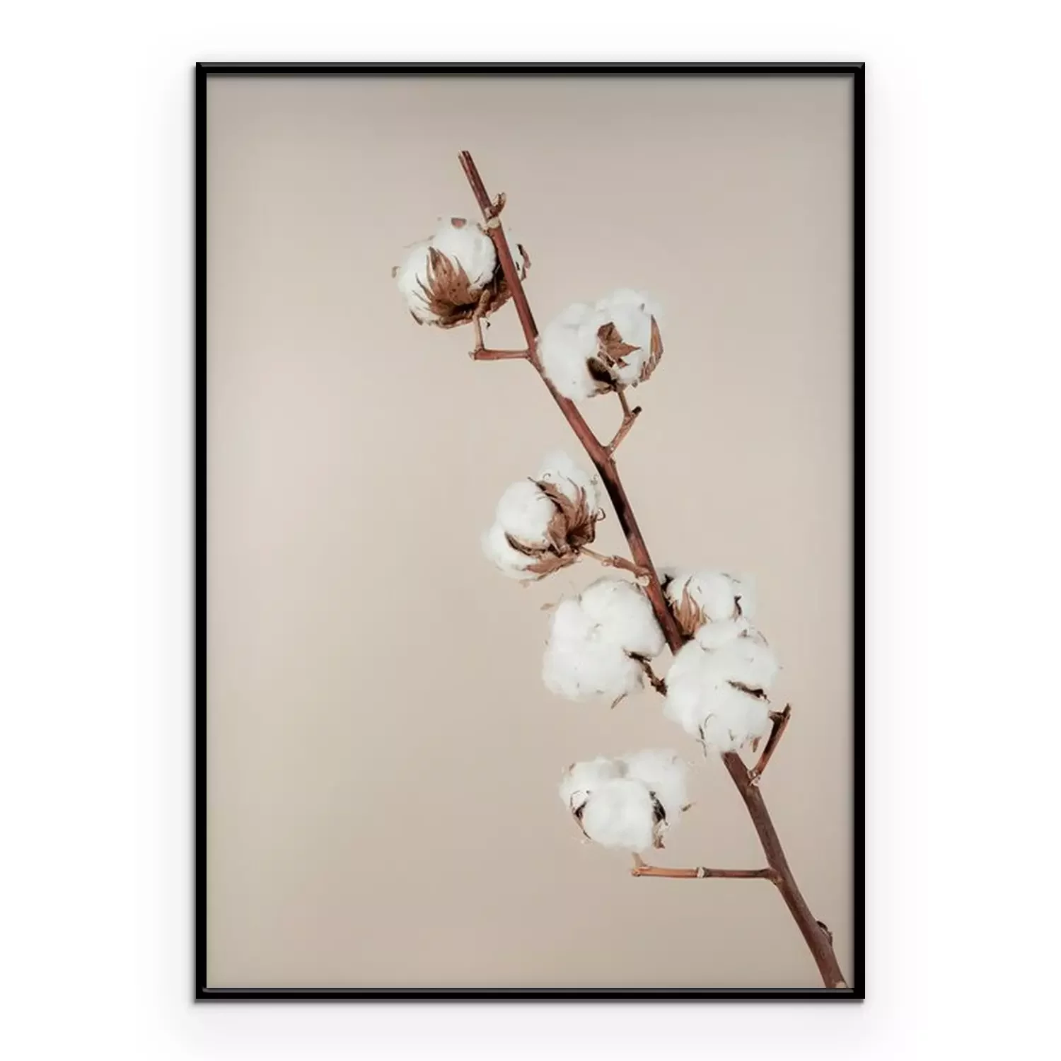 Poster Zweig Baumwolle auf beigem Hintergrund