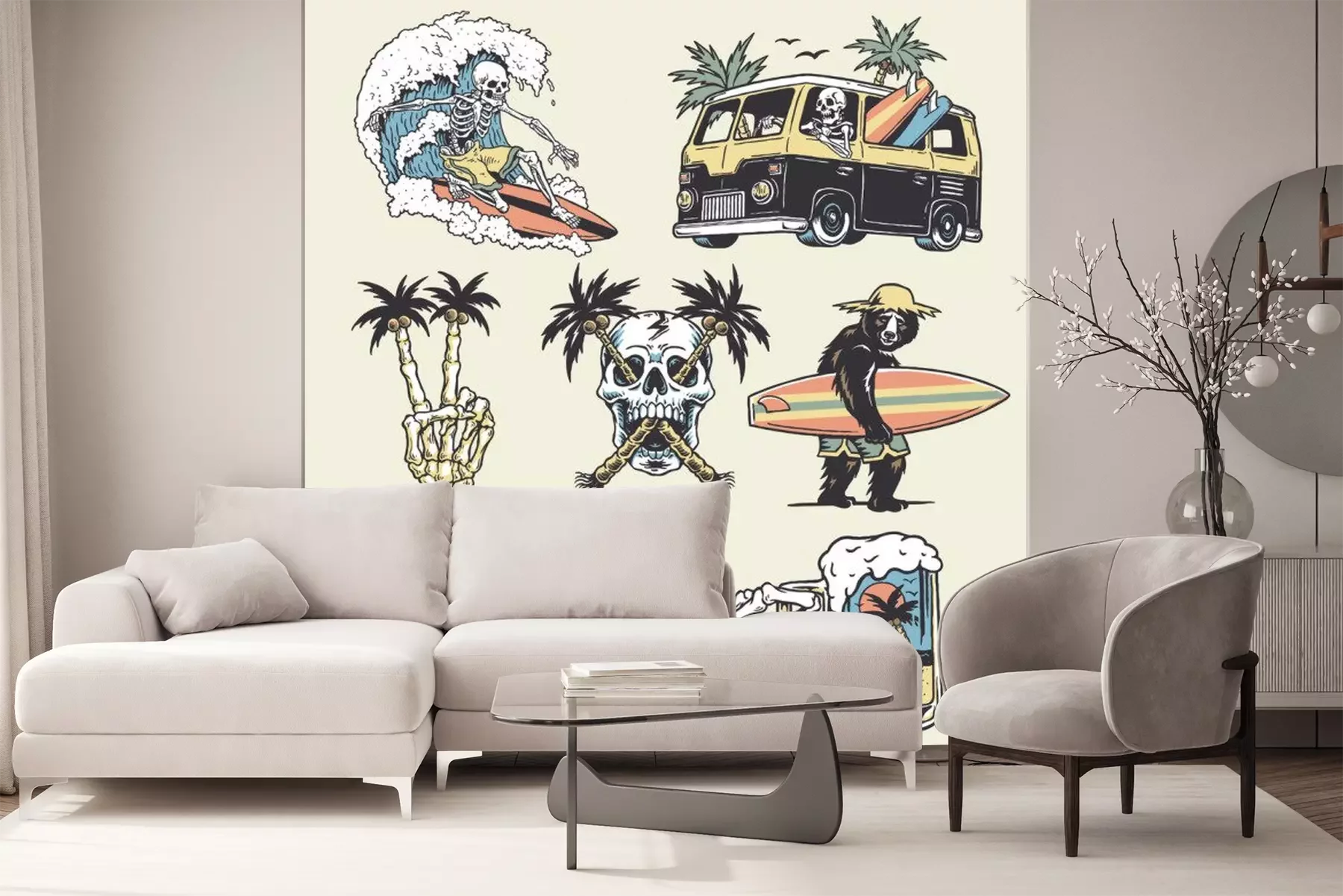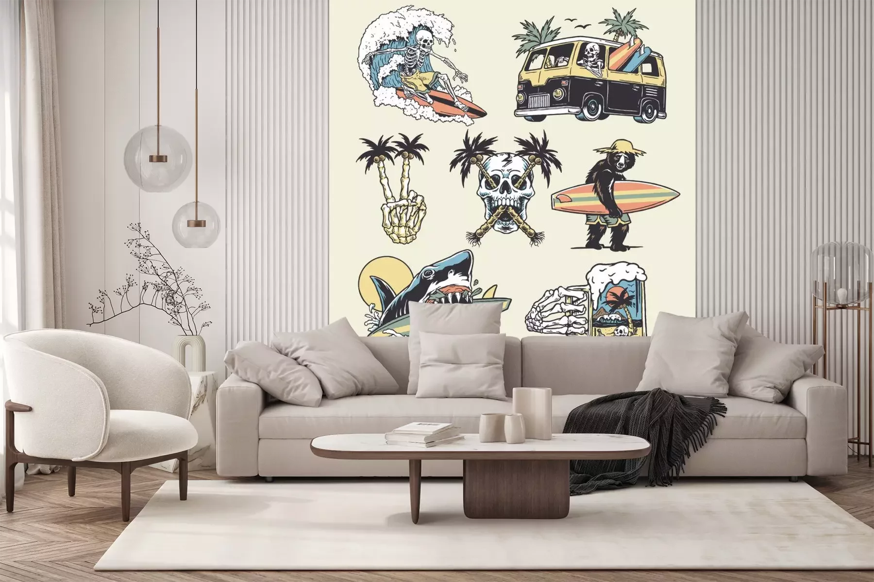 Sticker A set of edgy surf and beach illustrations. For t-shirts, stickers and other similar products.
