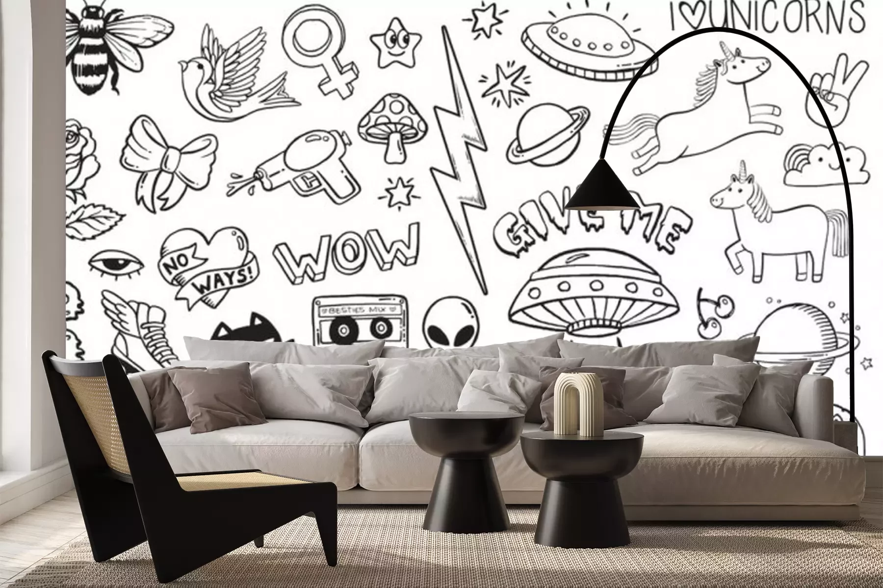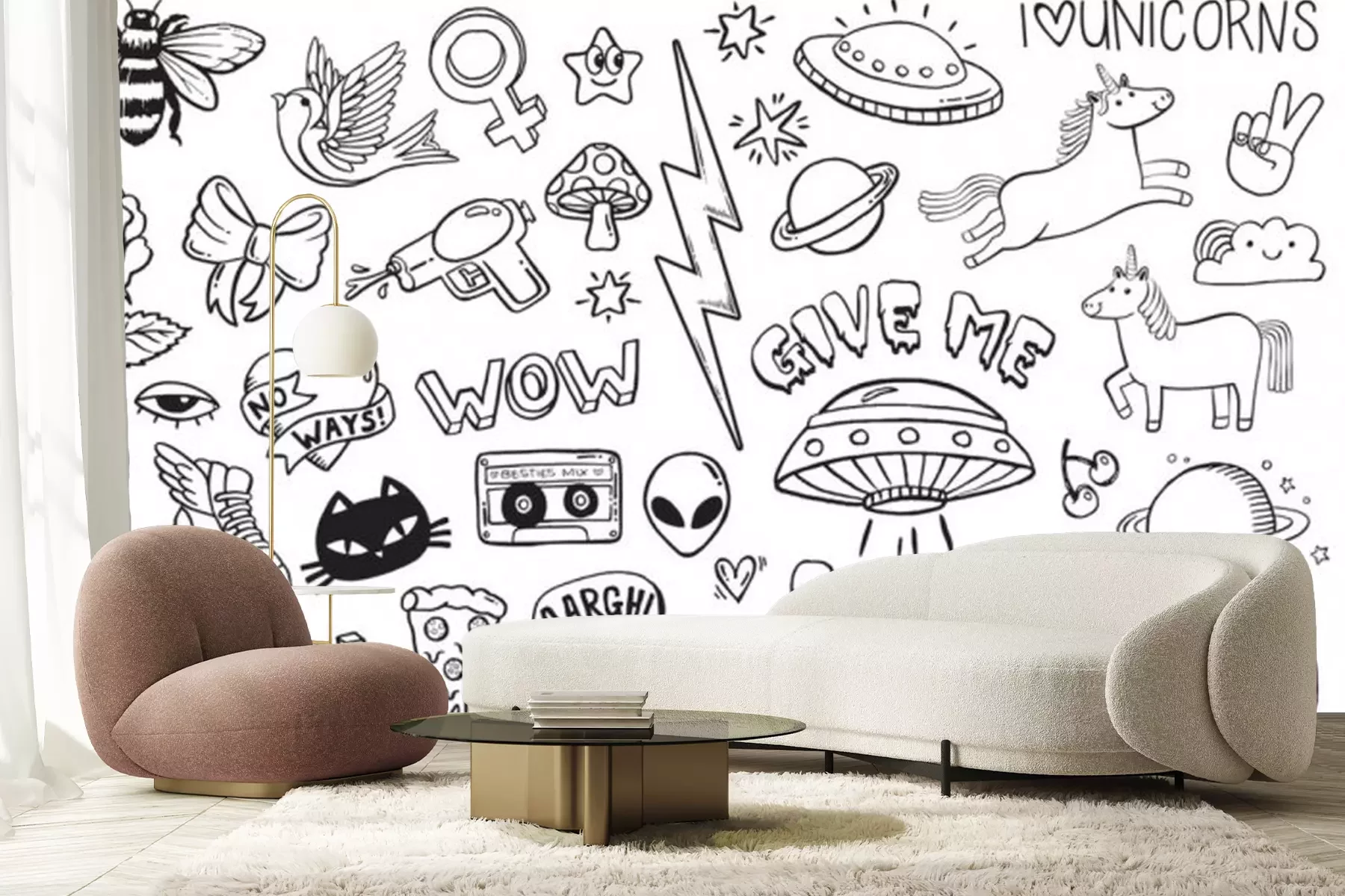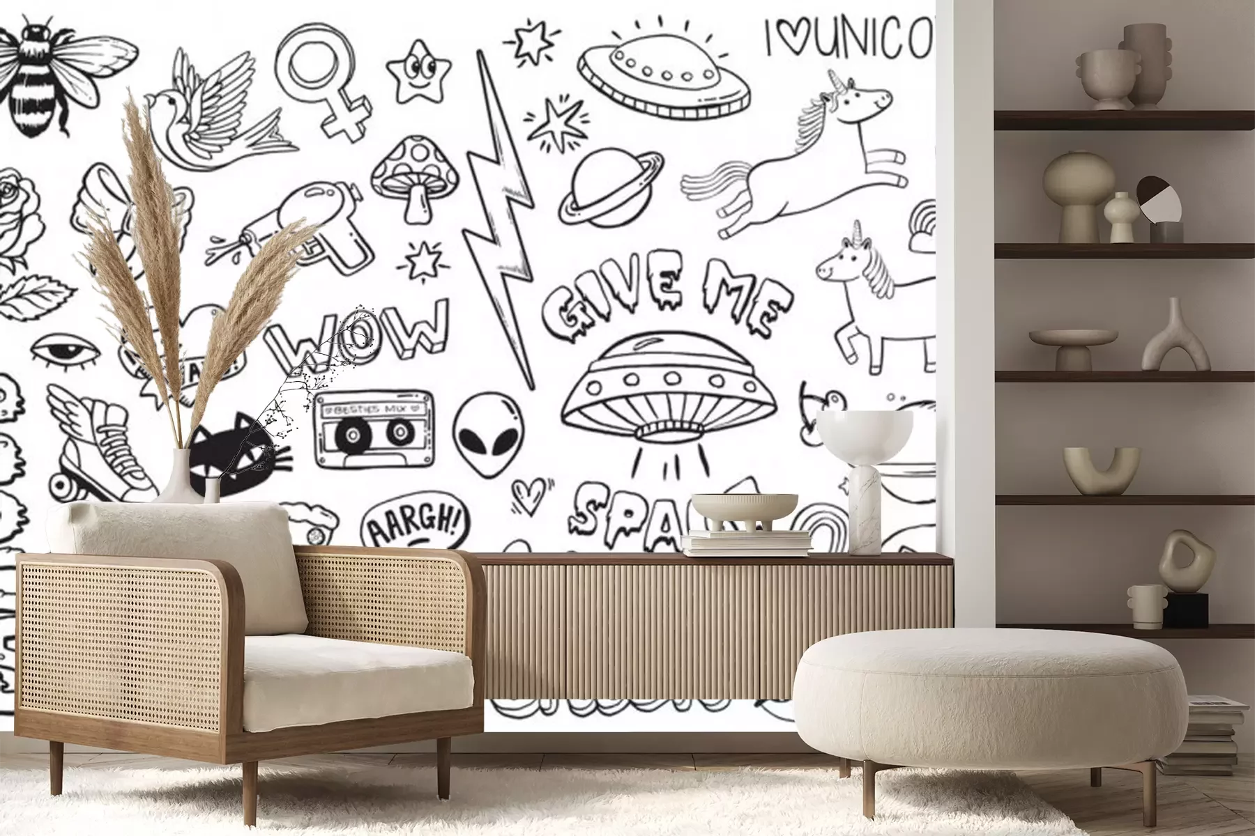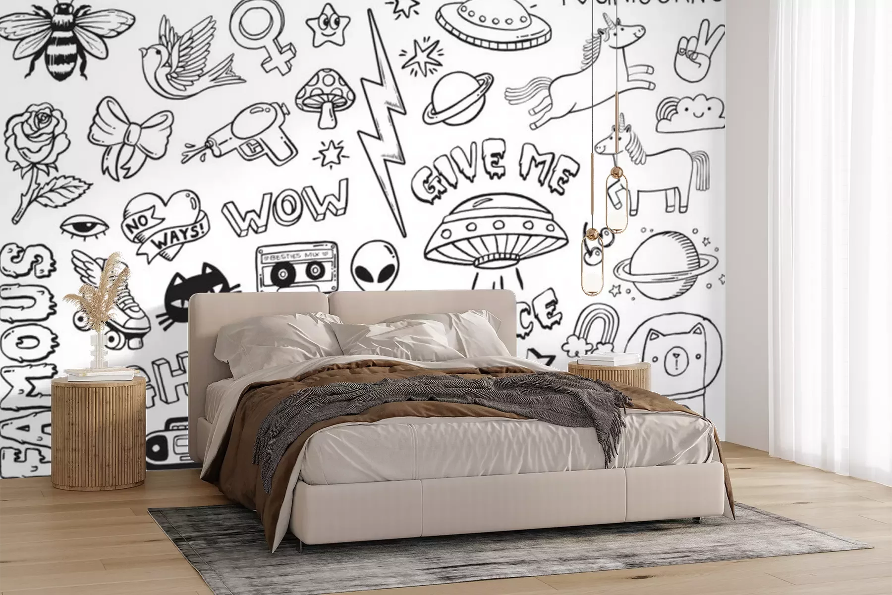 Sticker A set of teen culture graffiti doodles suitable for decoration, badges, stickers or embroidery. Vector illustrations.