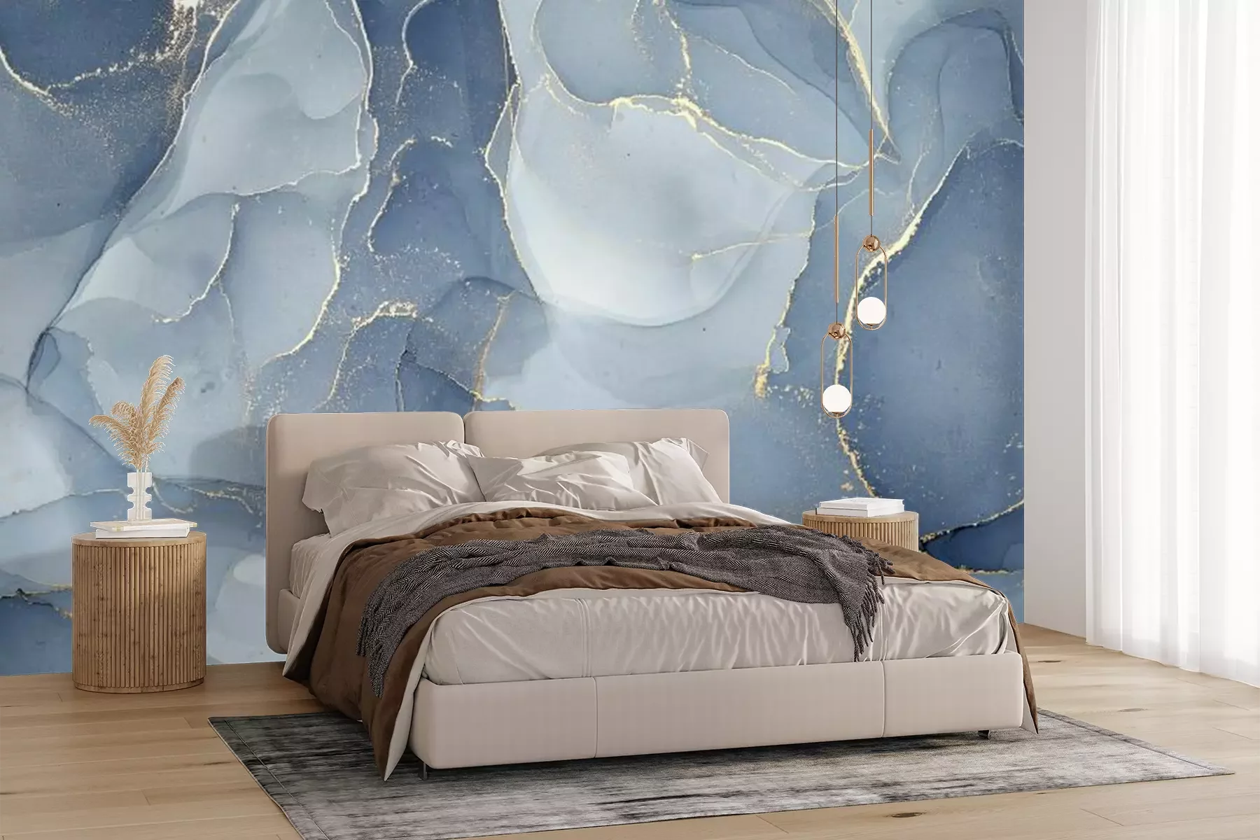 Sticker Abstract colorful background, wallpaper. Mixing acrylic paints. Modern art. Marble texture. Alcohol ink colors translucent