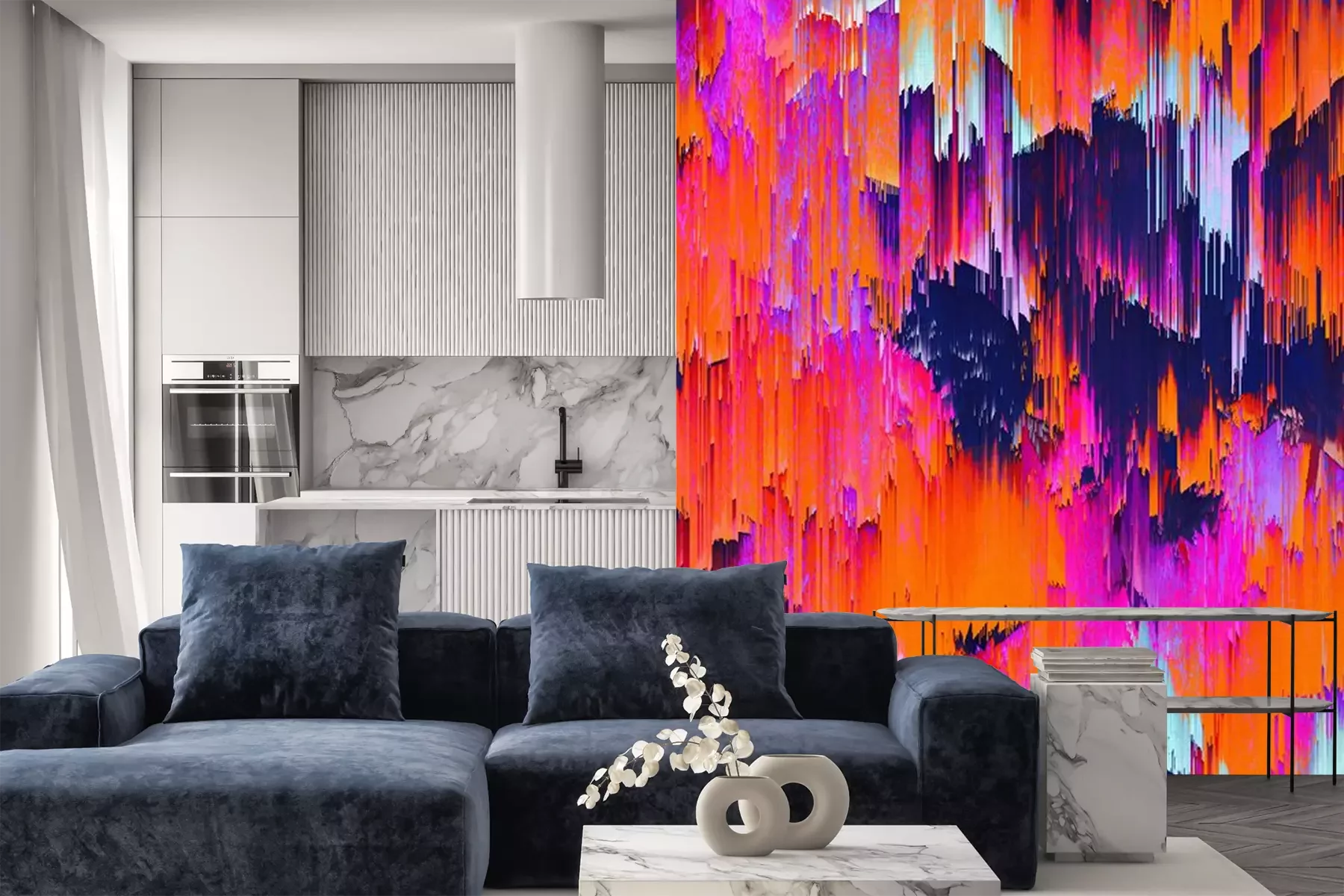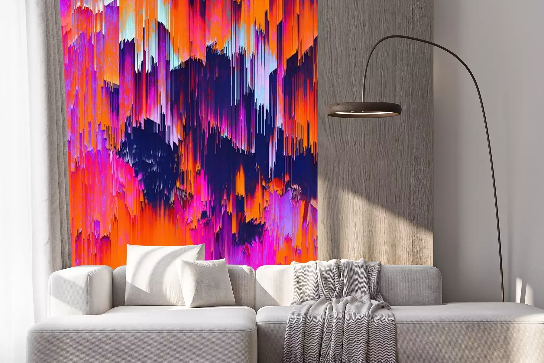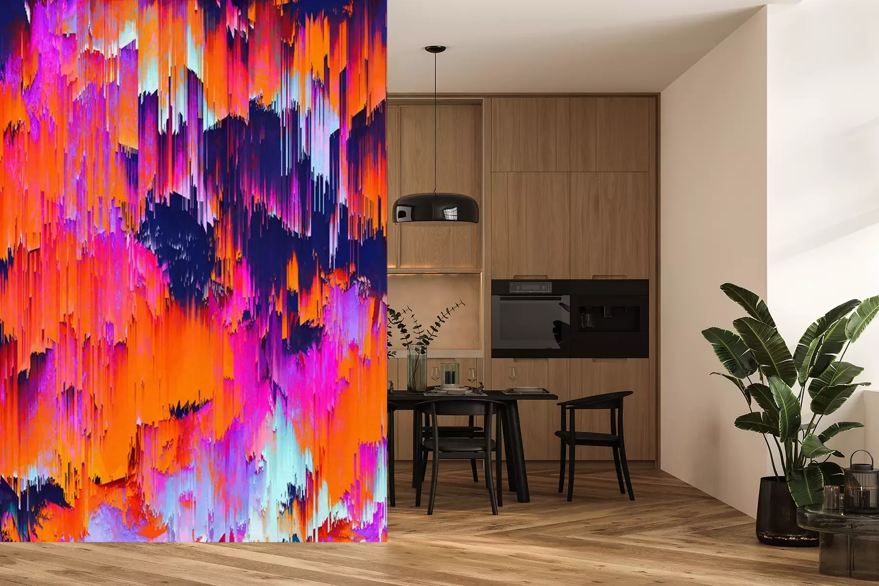 Sticker Abstract Colorful Glitch Geometrical Artwork Poster,Abstract Graphical Painting Art Background Texture,Modern Conceptual Art,Synthwave Aesthetic Vaporwave Poster Print,3D Rendering,