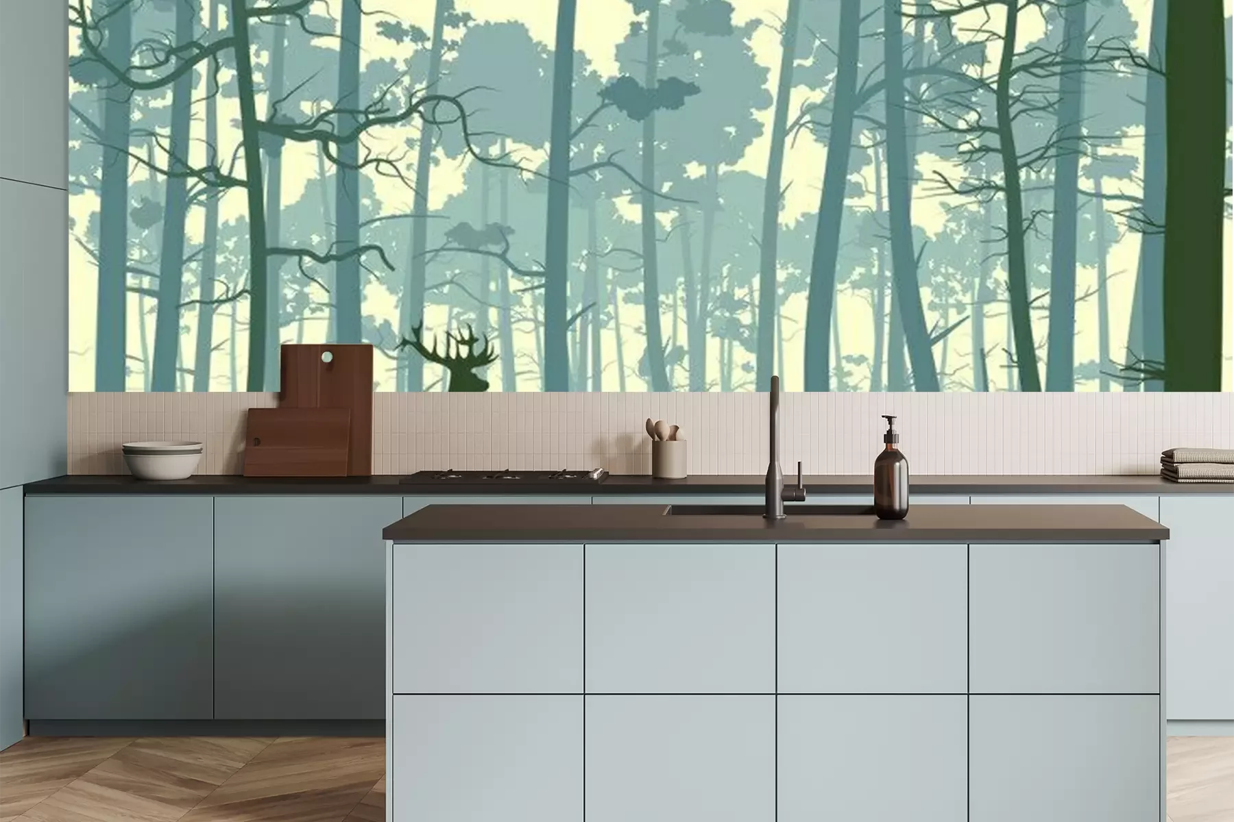 Sticker Abstract Illustration von Wildtieren in Holz.