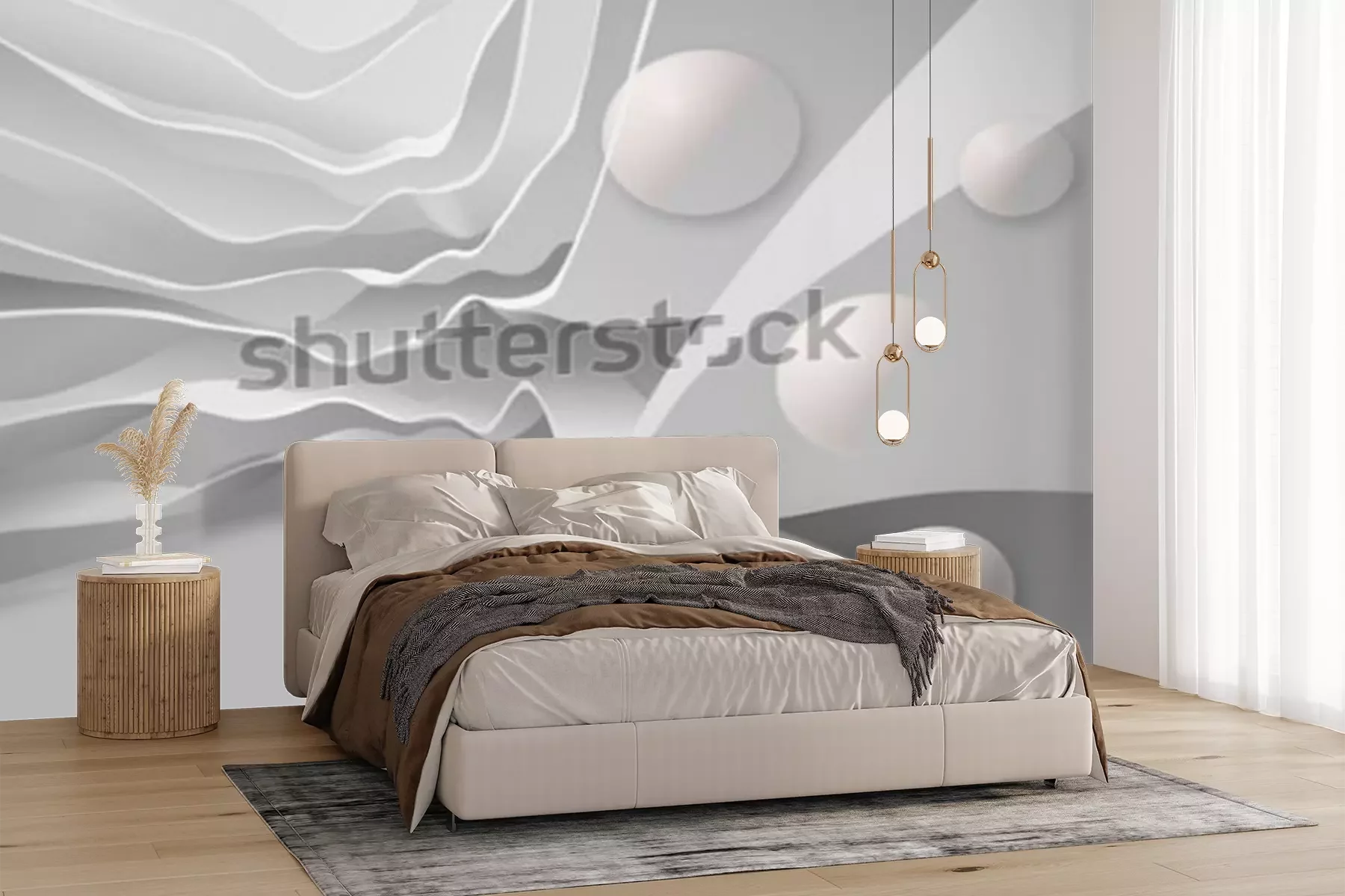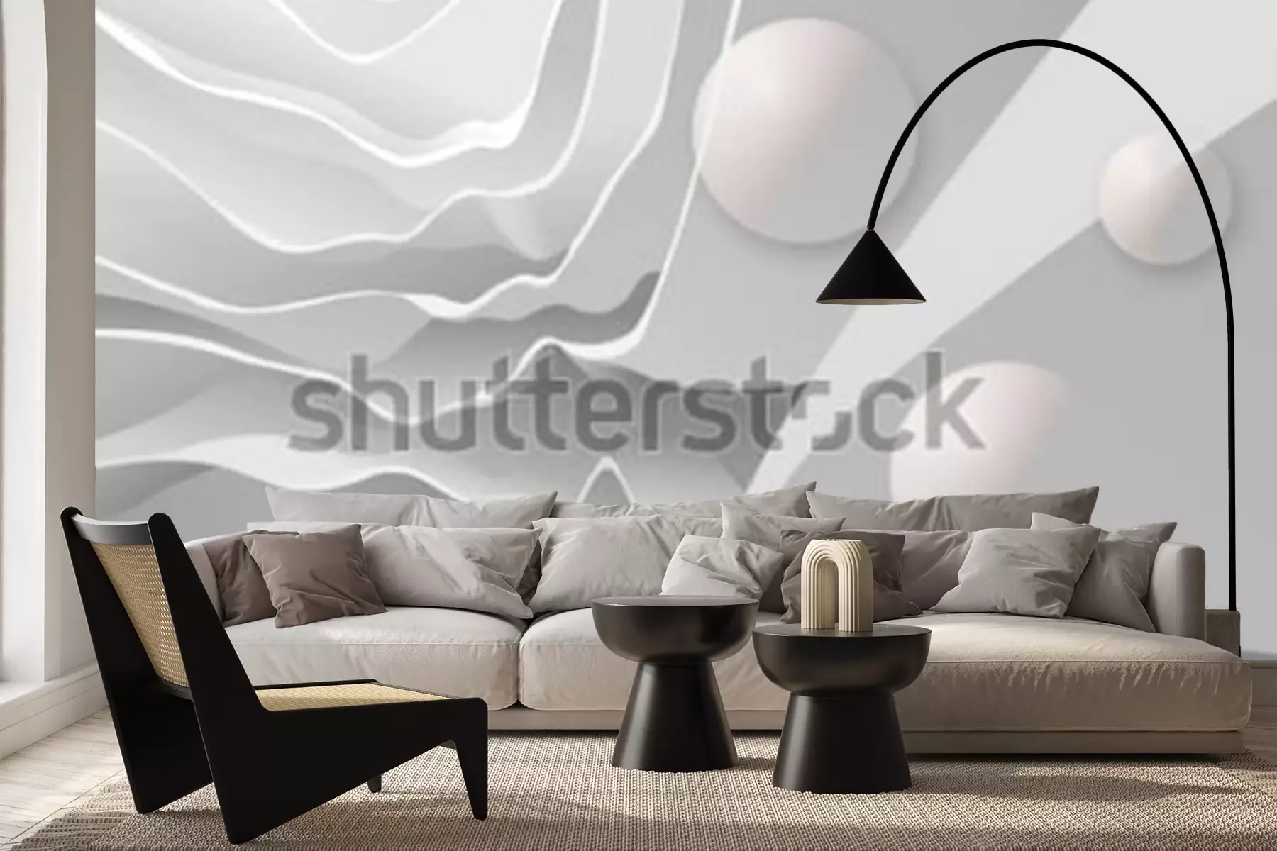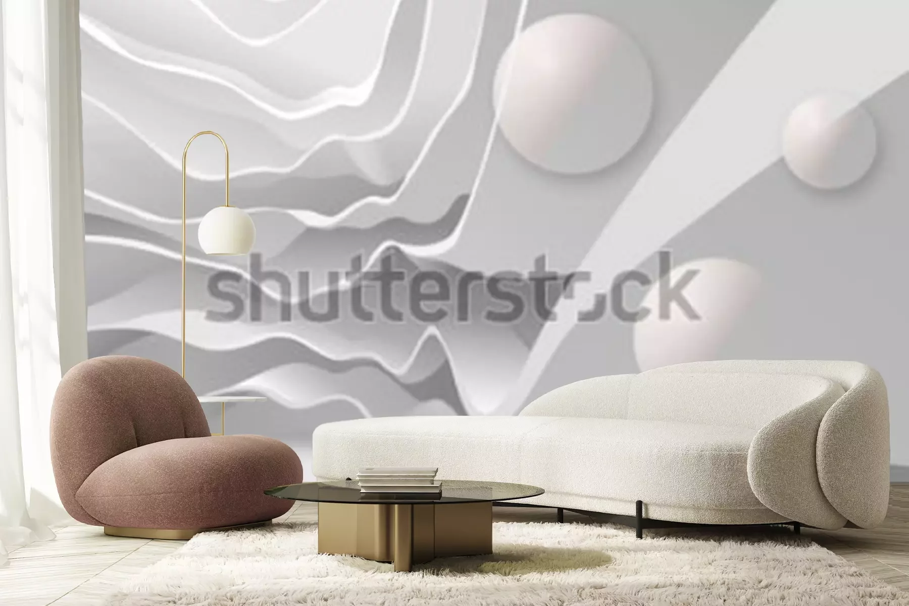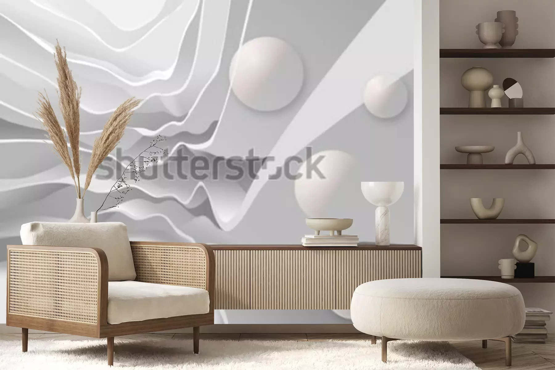 Sticker Abstrakter Hintergrund in Form von Felsen mit Kugeln. Fototapeten für den Innenbereich. 3D-Rendering.