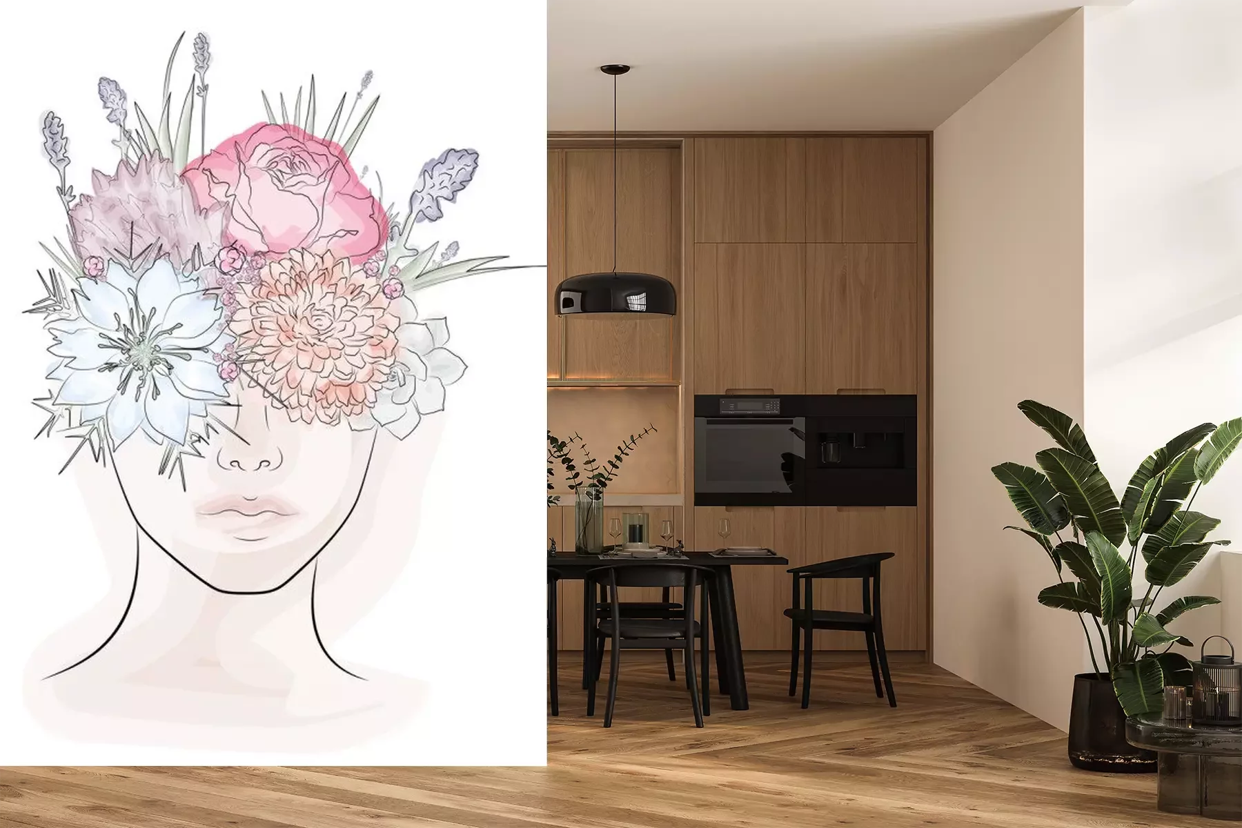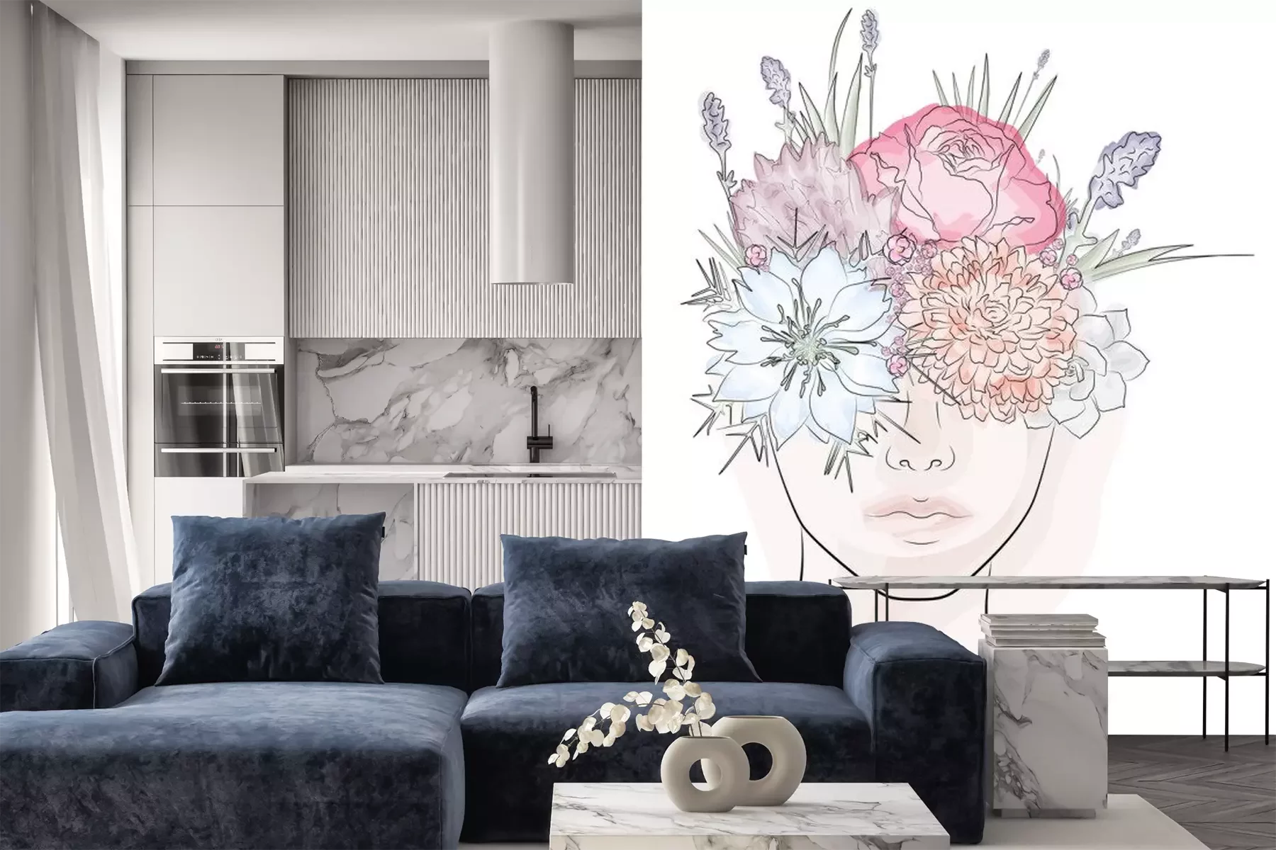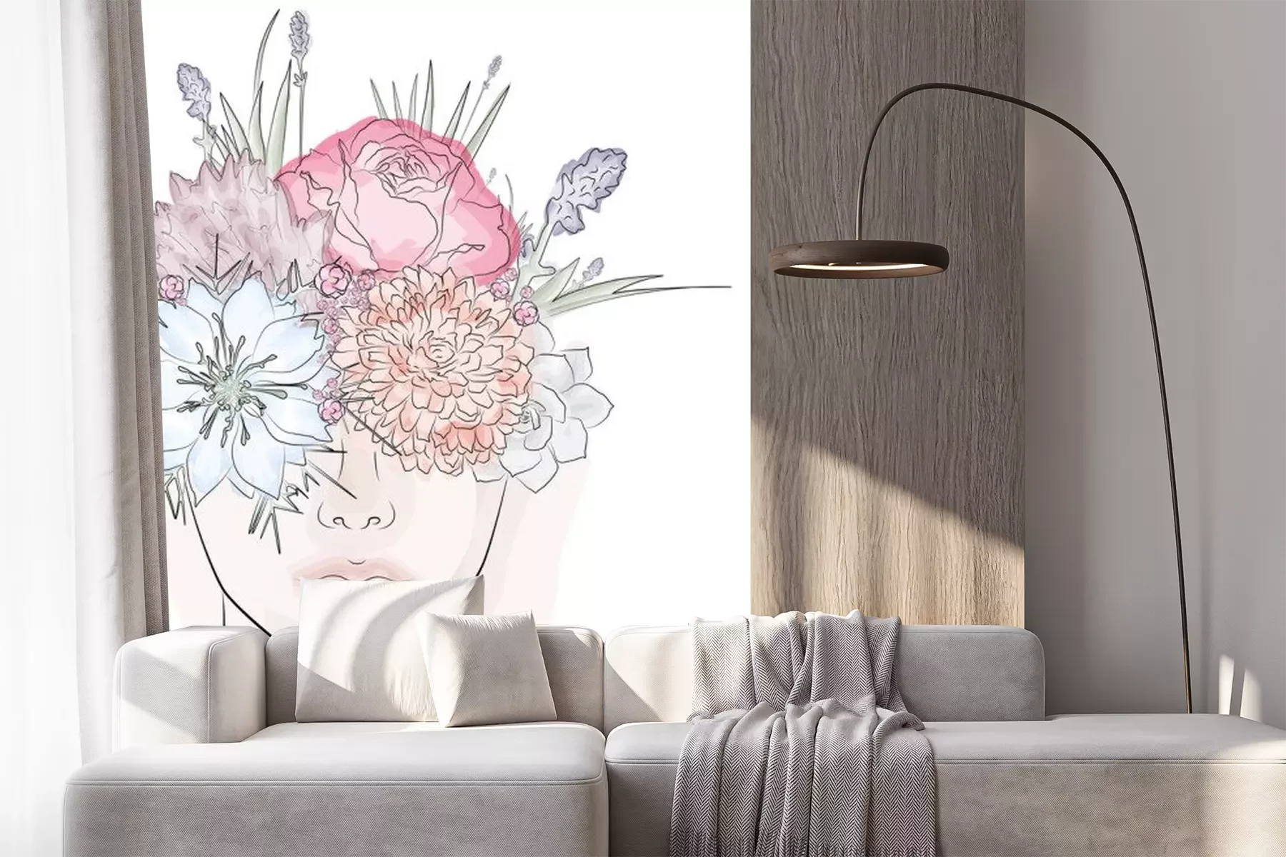 Sticker Abstraktes Gesicht mit Aquarell-Blumen