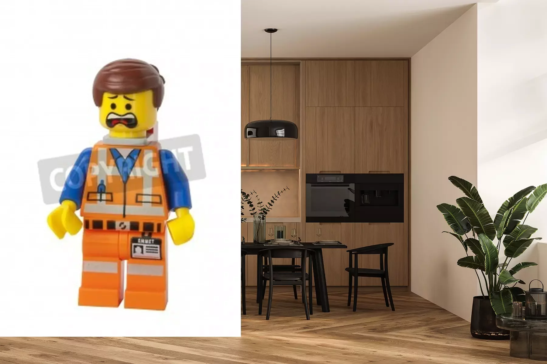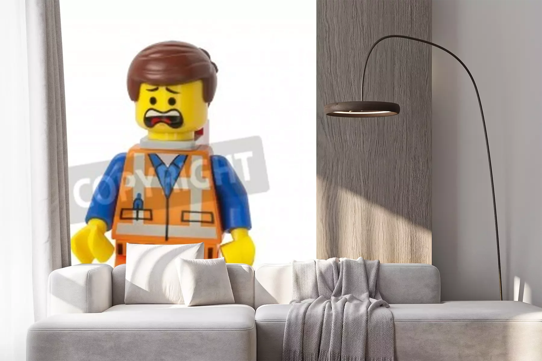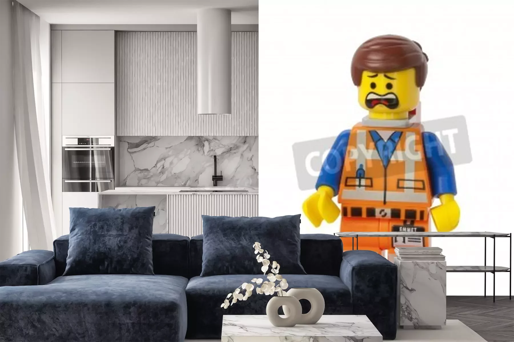 Sticker ADELAIDE, AUSTRALIEN - 9. September 2014: Eine Studioaufnahme einer Emmet Lego-Minifigur aus dem Lego-Film. Lego ist weltweit bei Kindern und Sammlern sehr beliebt