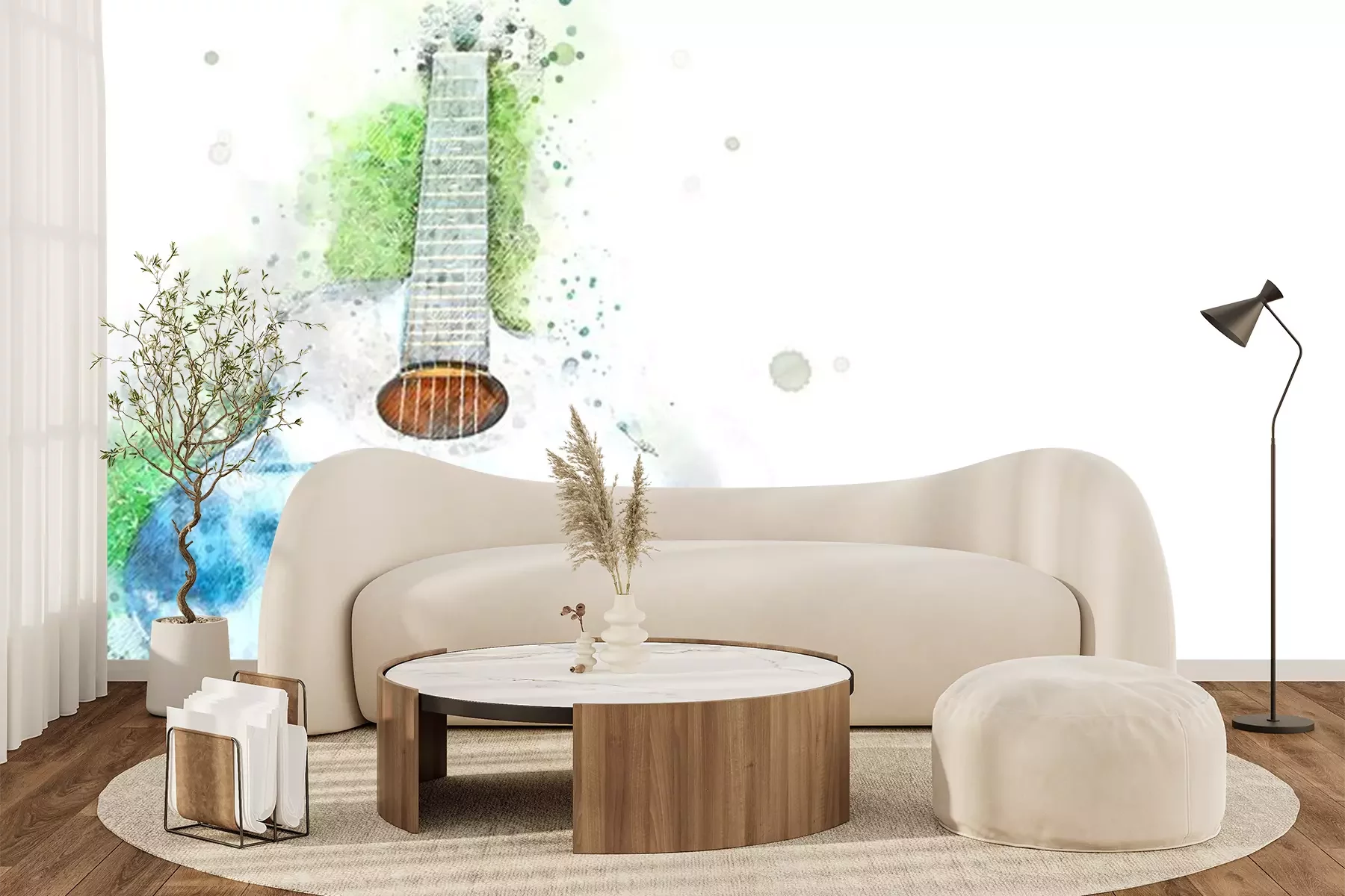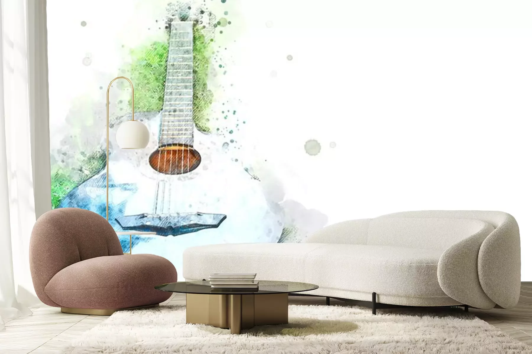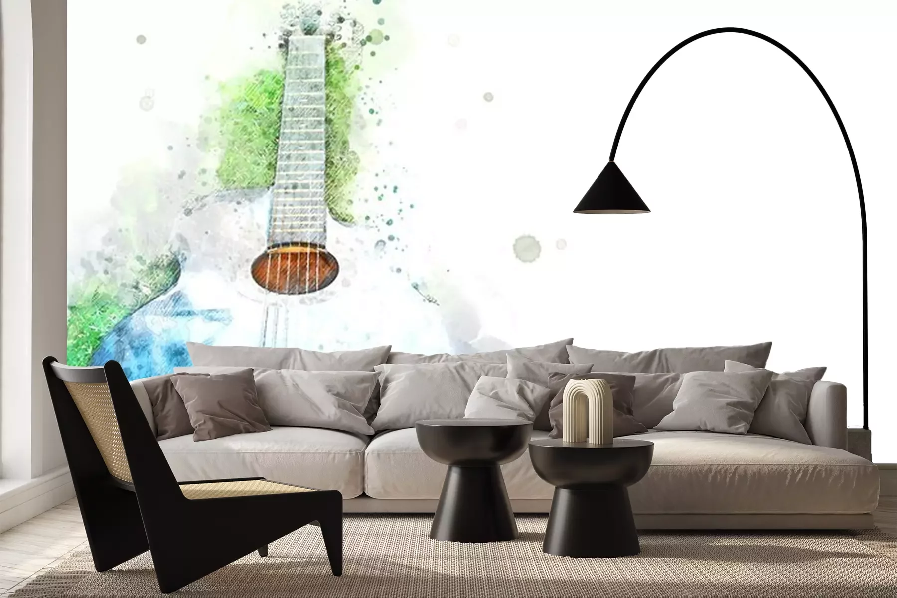 Abstraktes Aquarell von Gitarre und KlavierFototapete