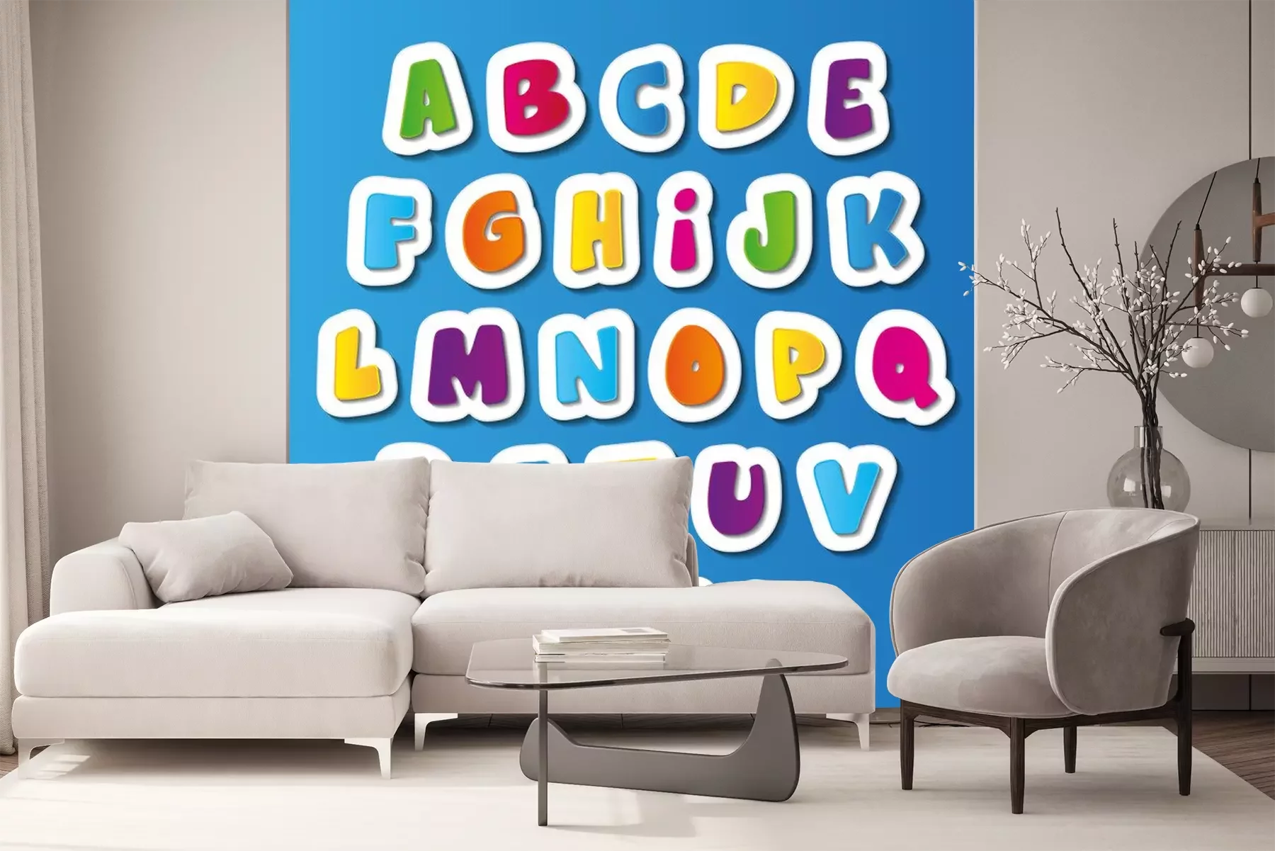 Sticker Alphabet für Kinder auf blauem Hintergrund