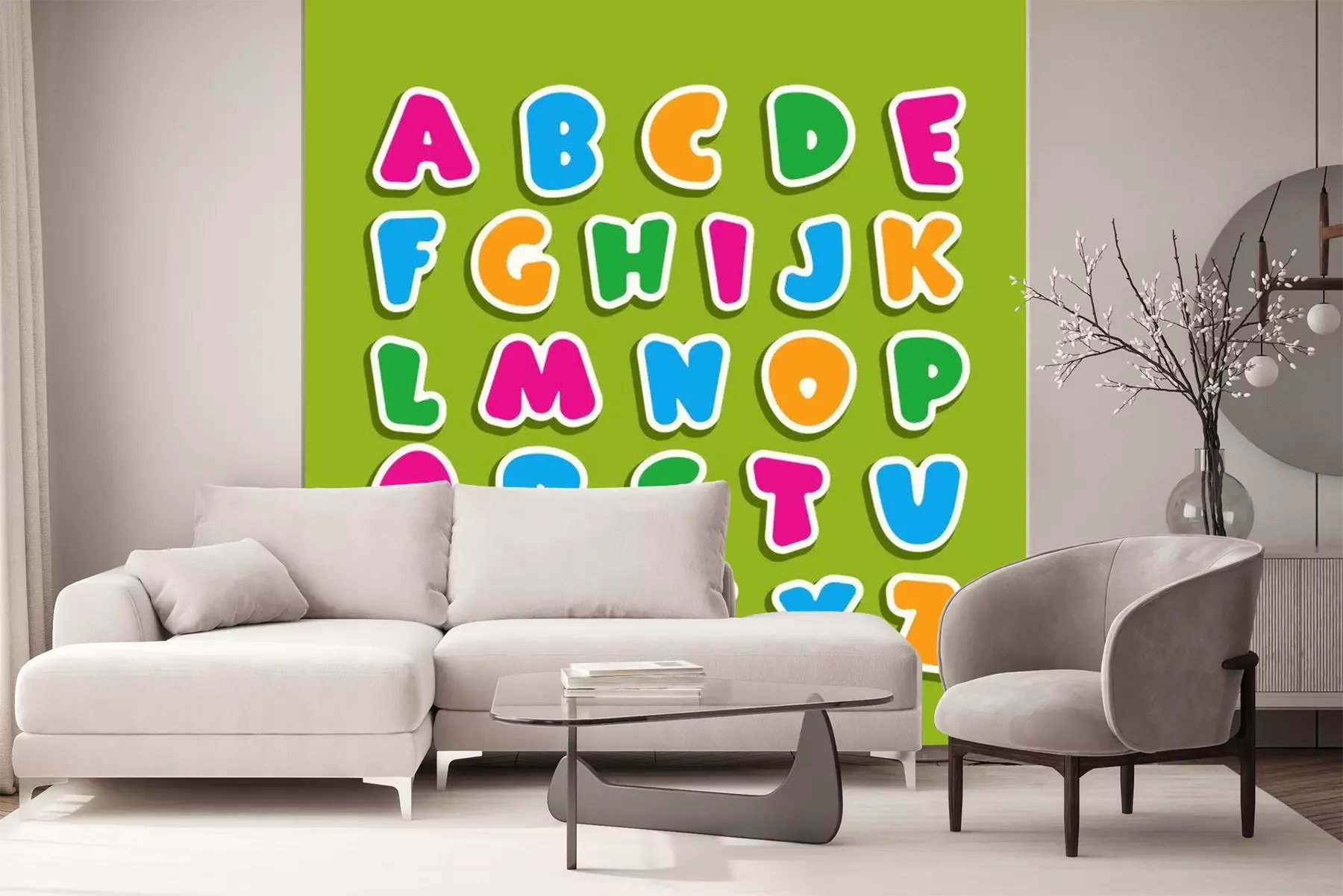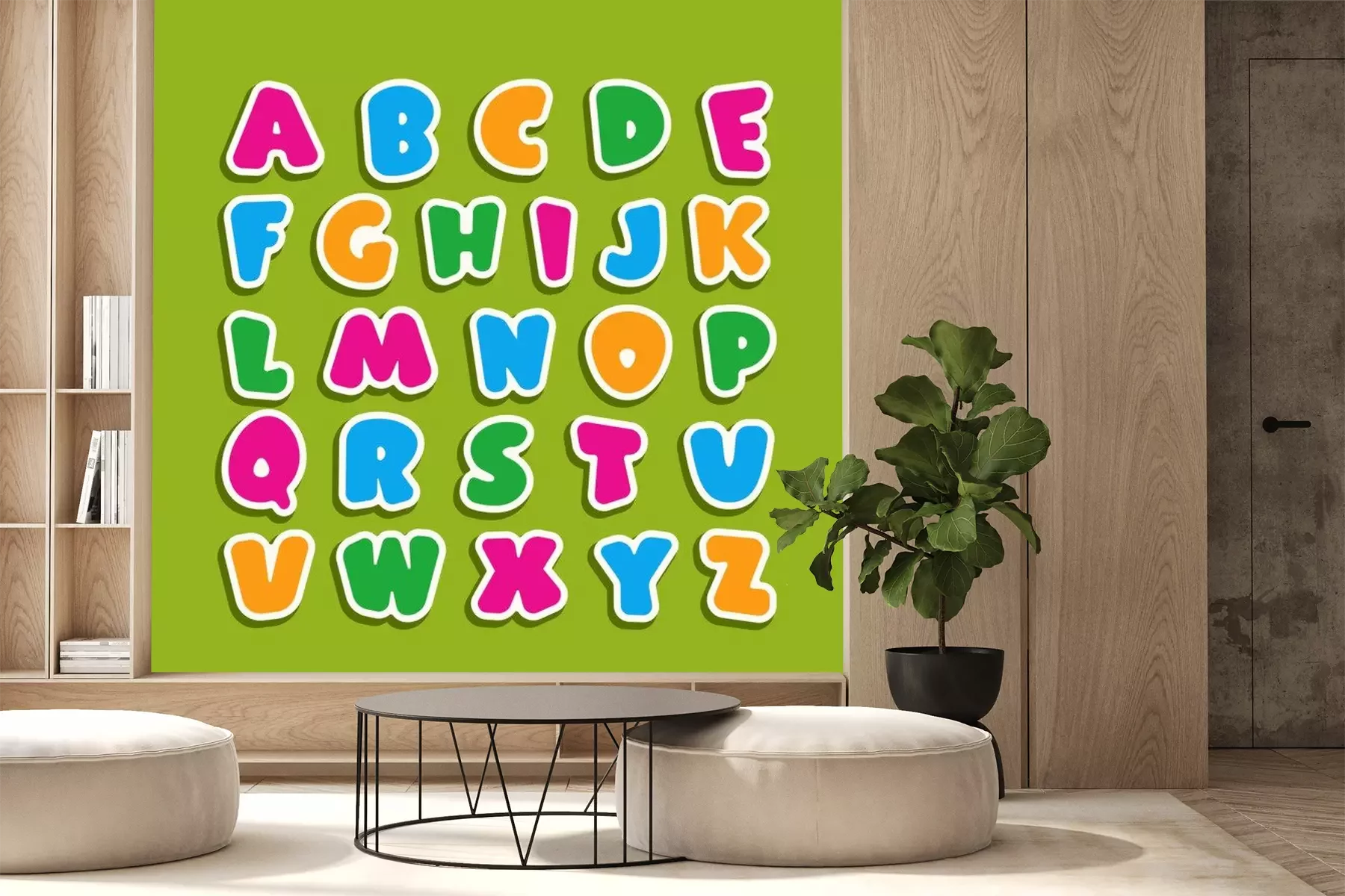 Sticker Alphabet für Kinder auf grünem Hintergrund