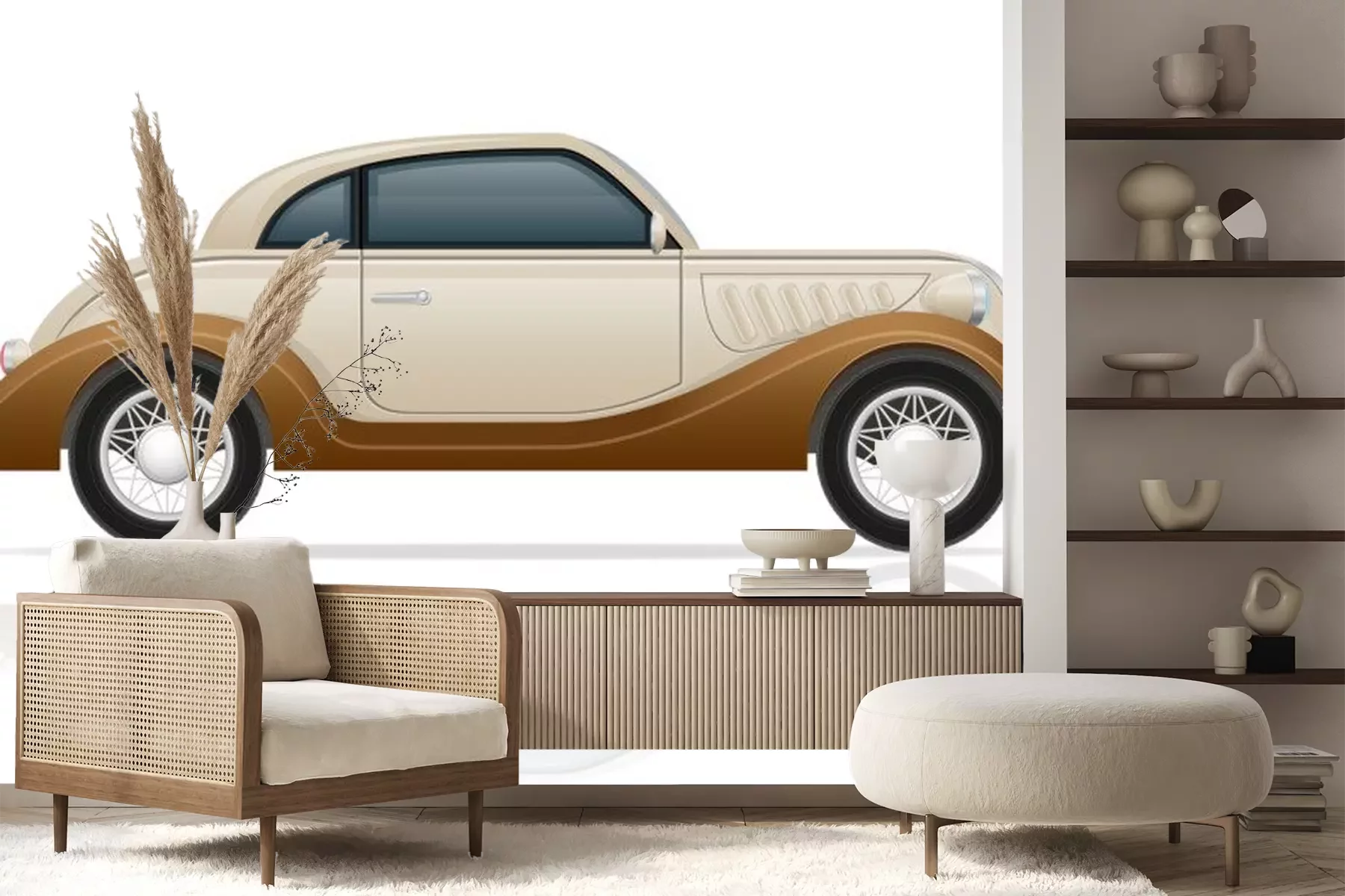 Sticker alte Retro-Auto-Vektor-Illustration