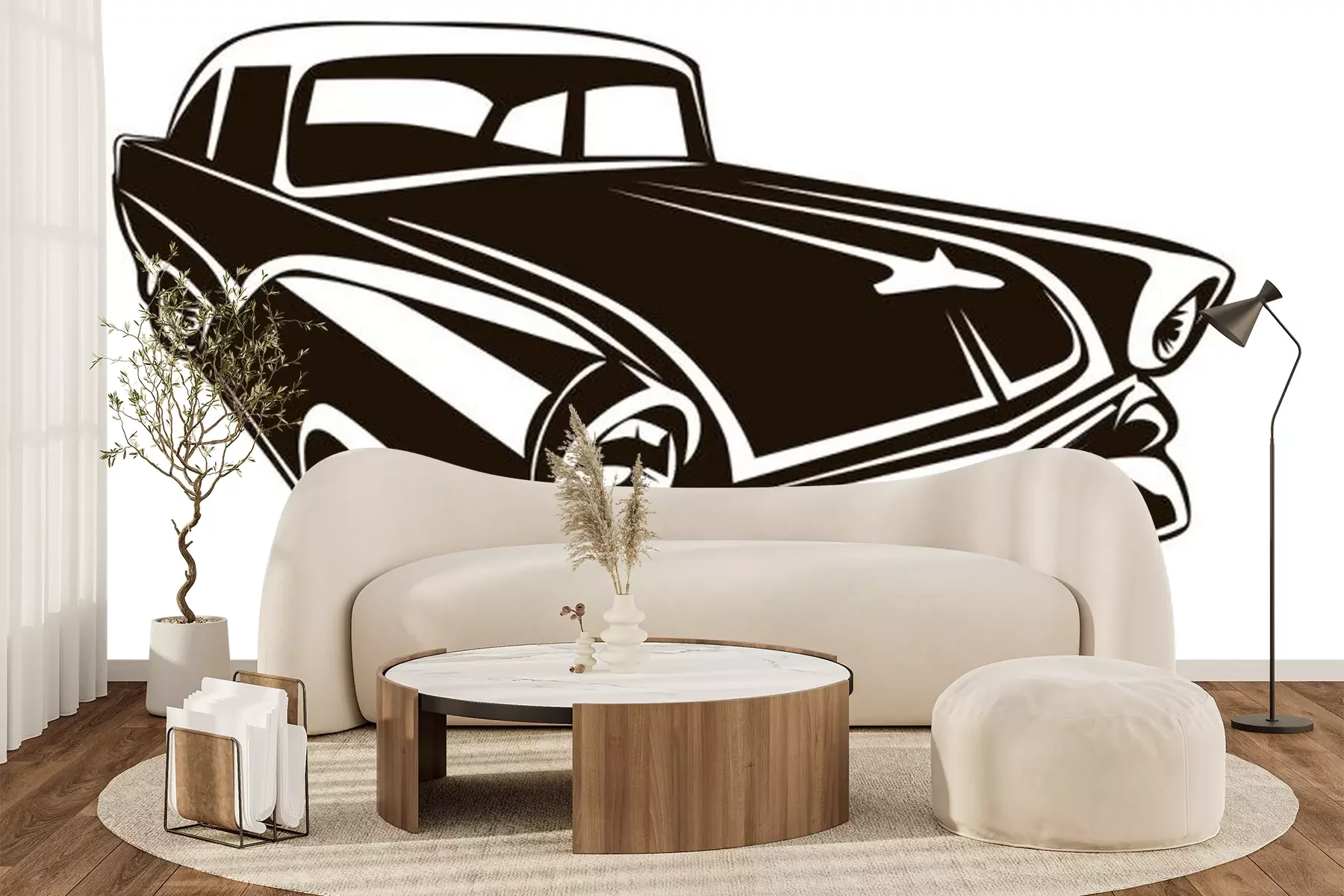 Sticker Altes Auto Retro Illustration schwarz-weiß