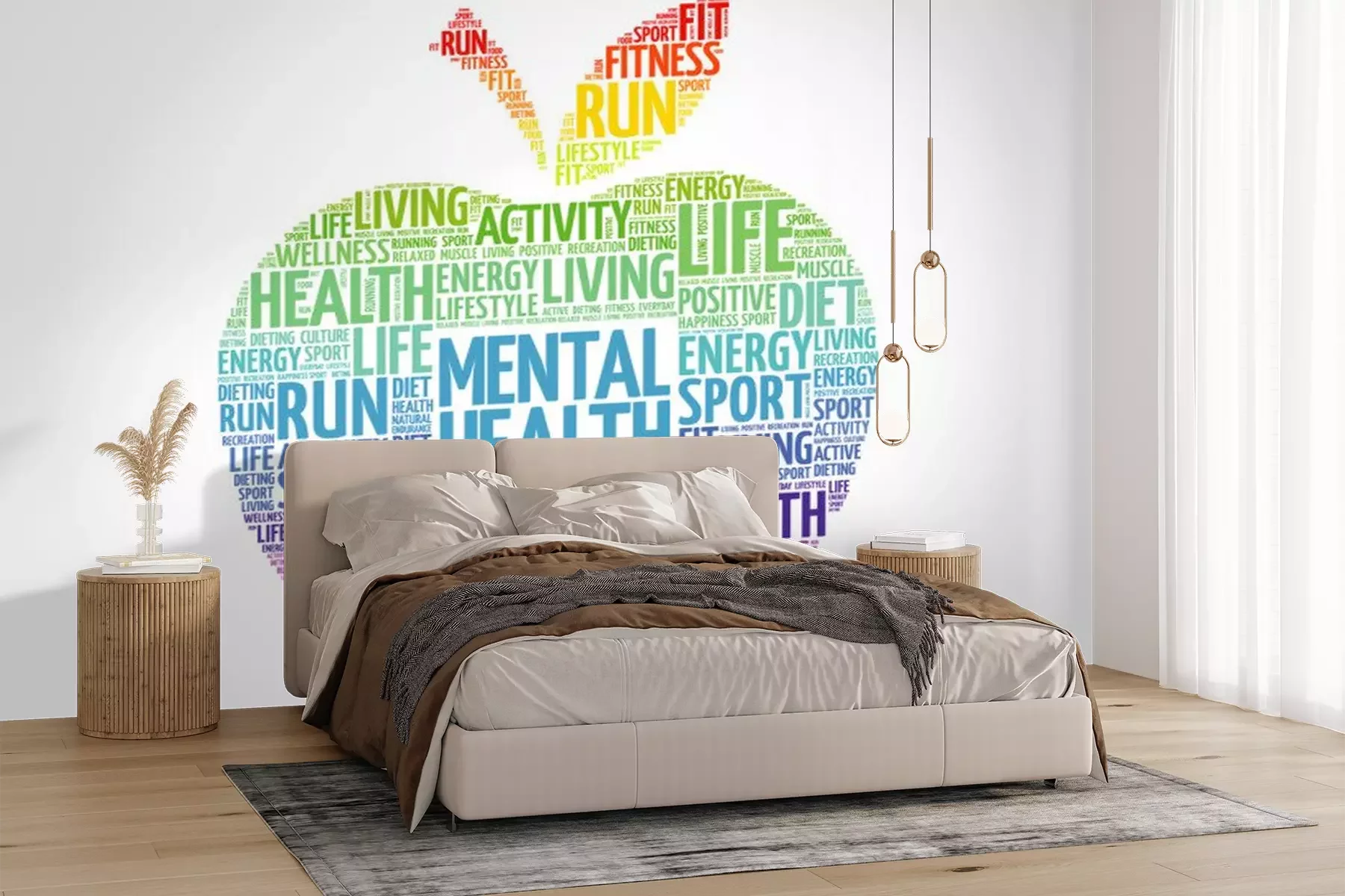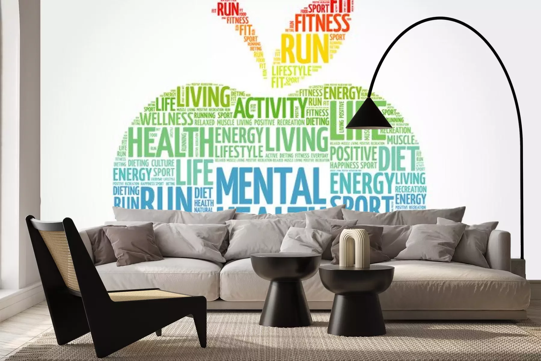 Sticker Apfel aus Aufschriften zum Thema gesunder Lebensstil