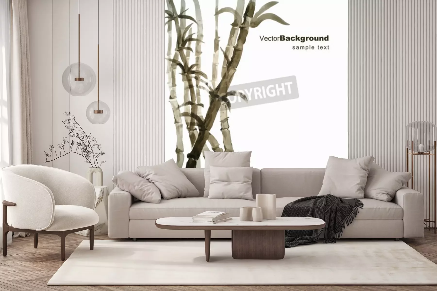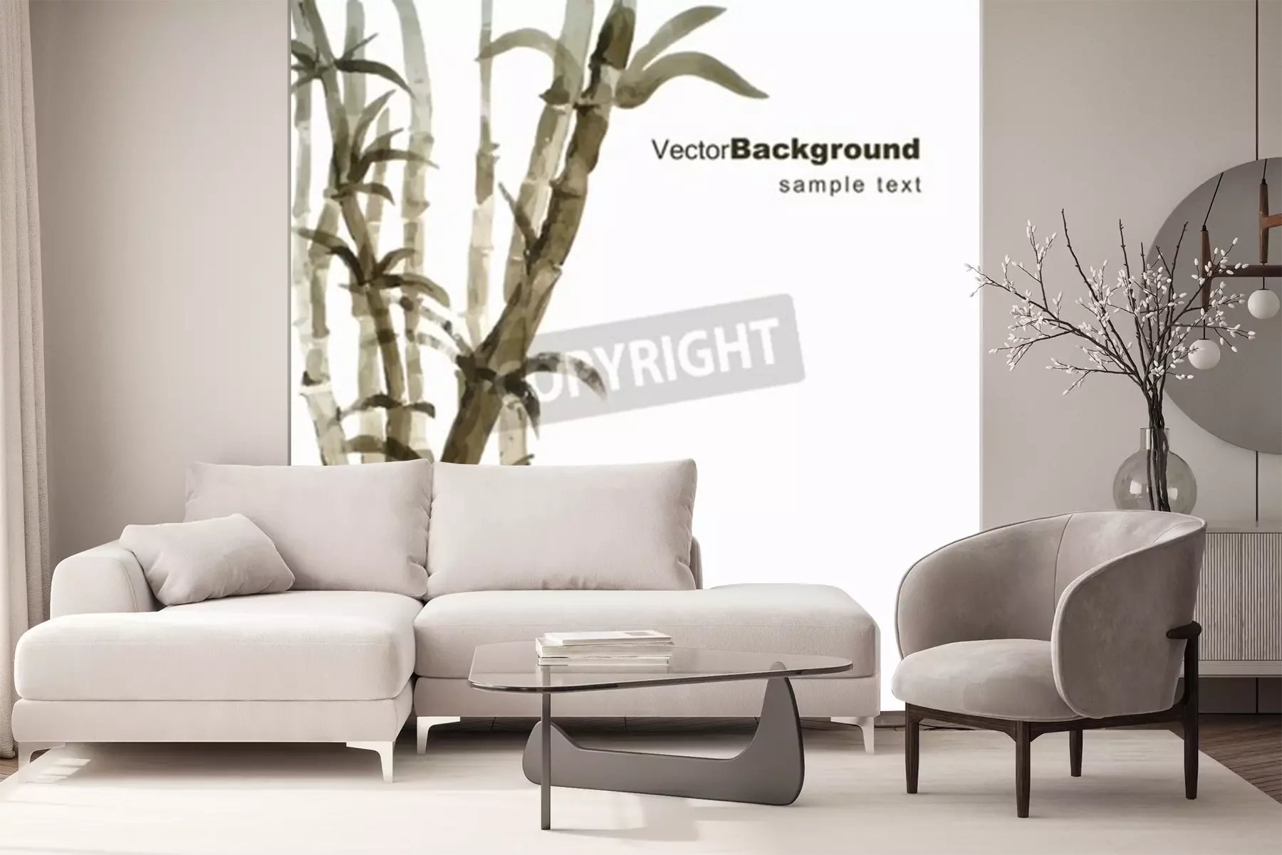 Sticker Aquarell Bambus Hain Hand gezeichnet Vektor-Illustration mit Rahmen für Ihren Text