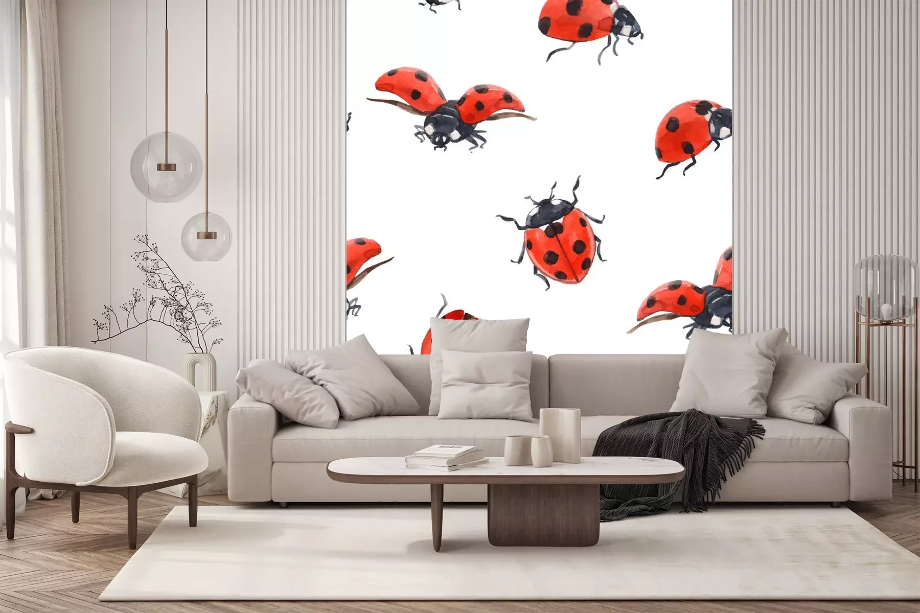Sticker Aquarell-Marienkäfer auf weißem Hintergrund