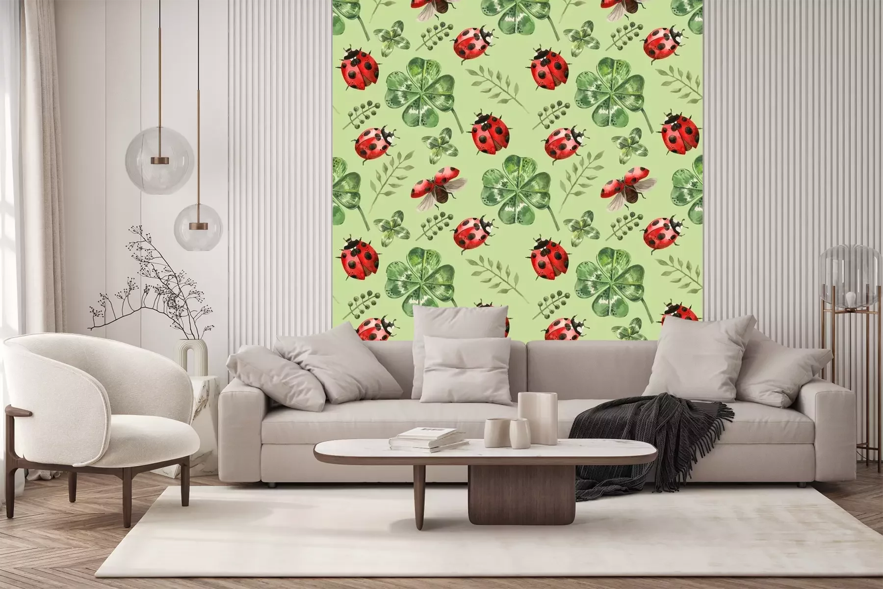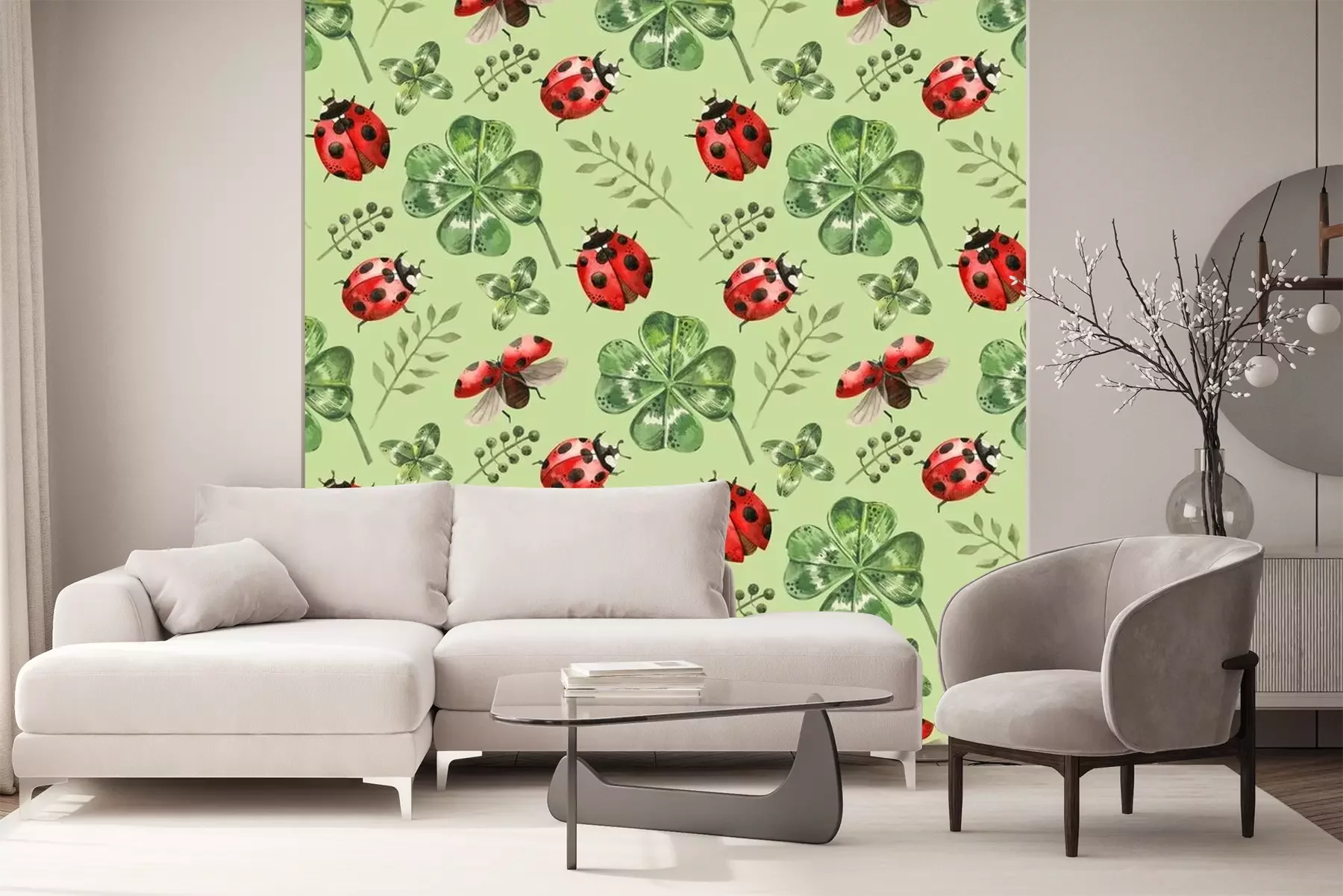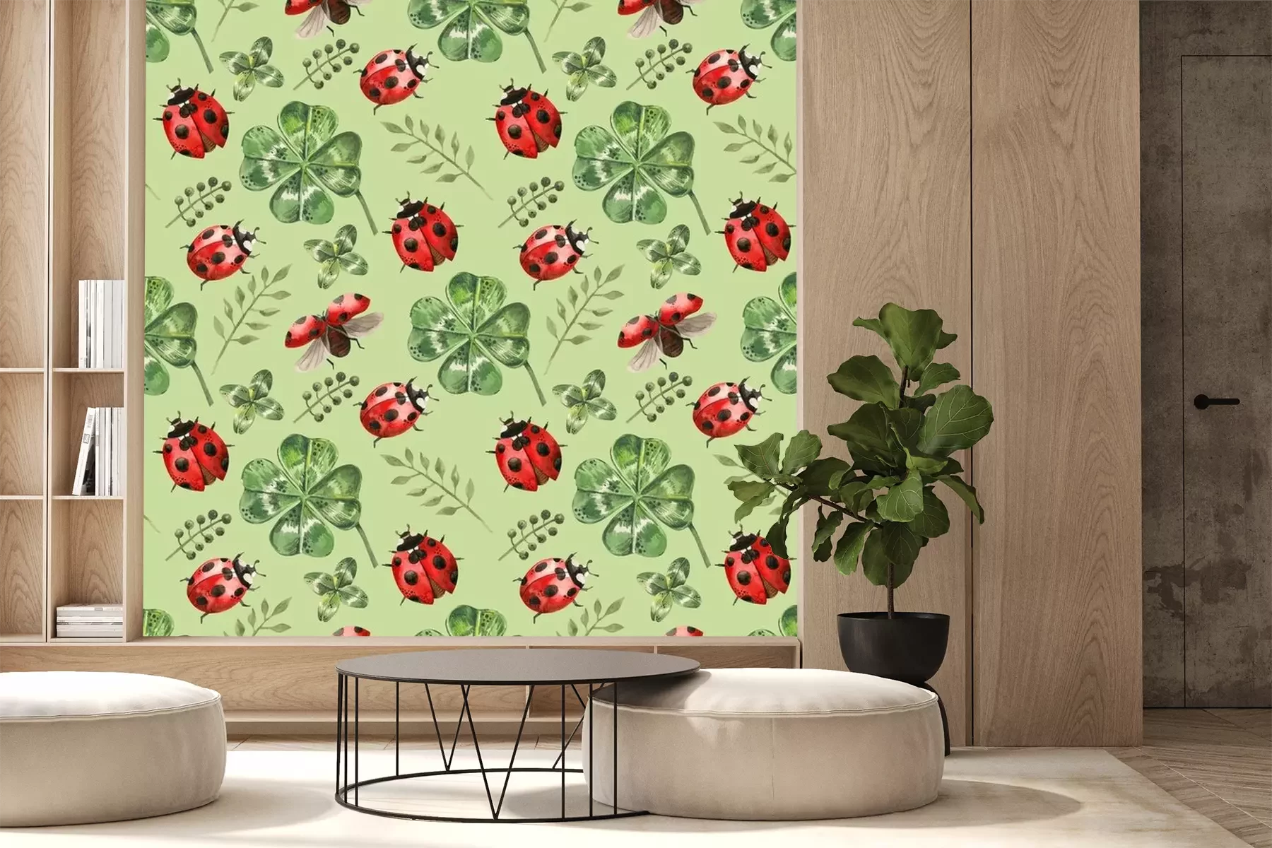 Sticker Aquarell-Marienkäfer zwischen grünen Kleeblättern