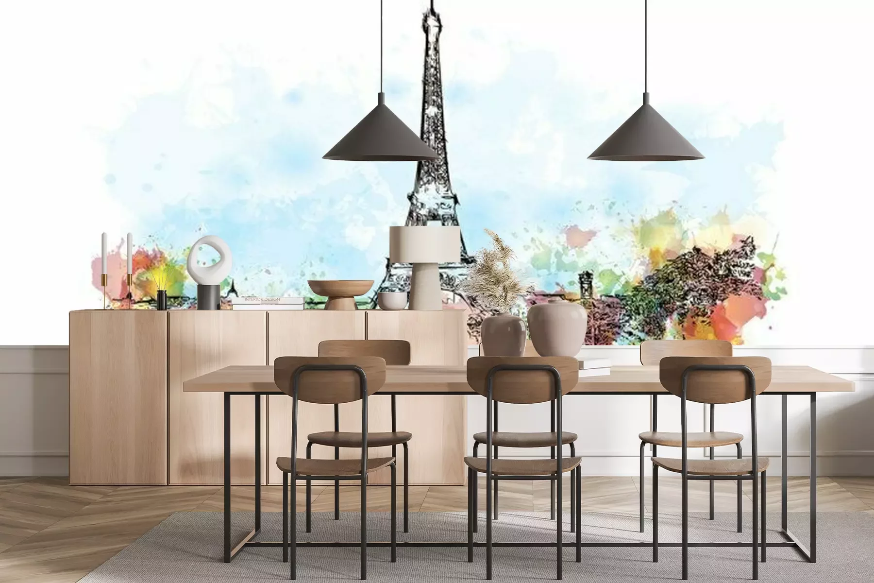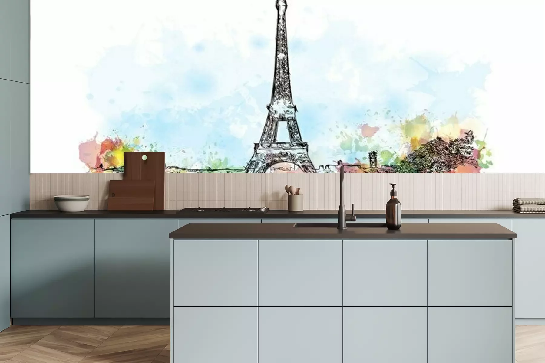 Sticker Aquarell Skizze des Eiffelturms Paris Frankreich in Vektor-Illustration.