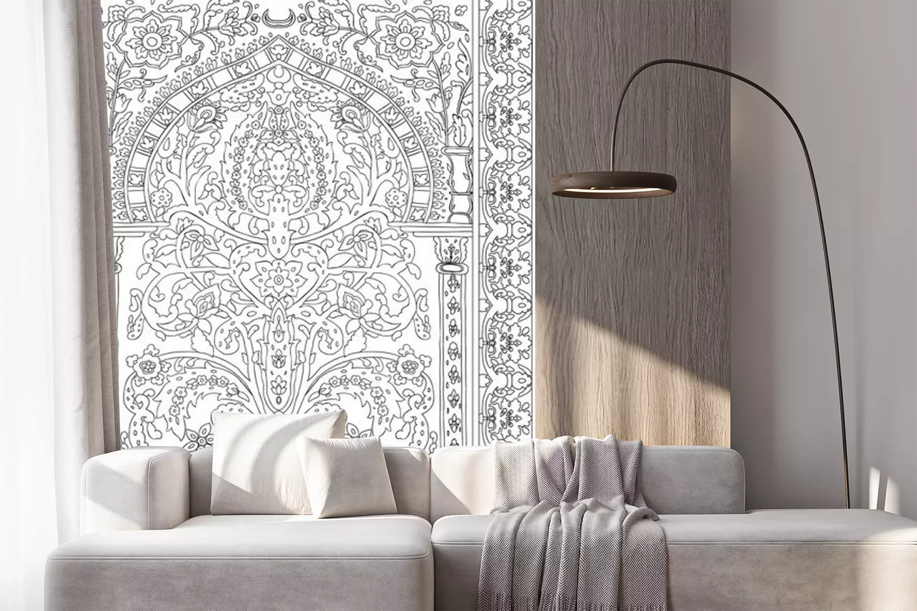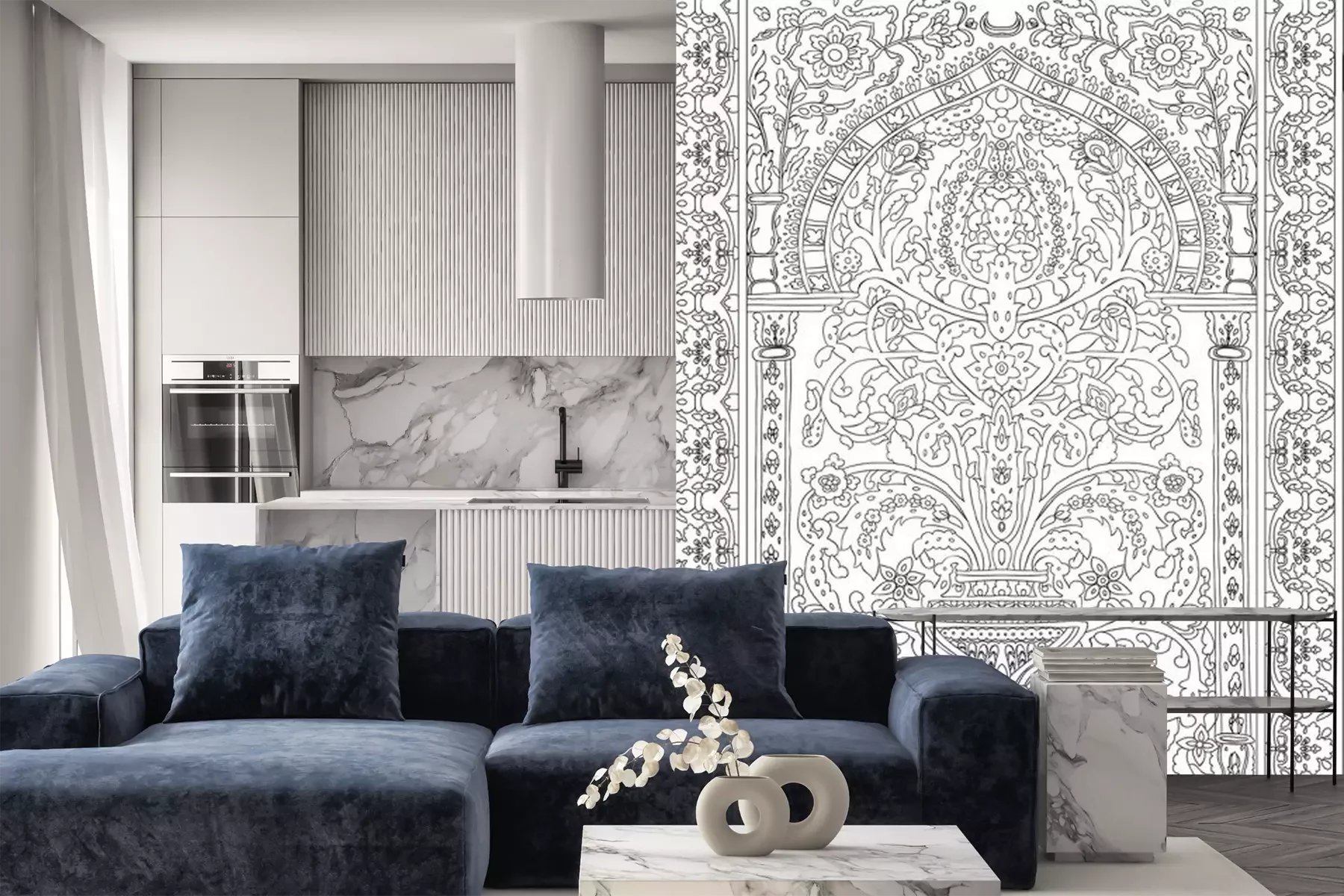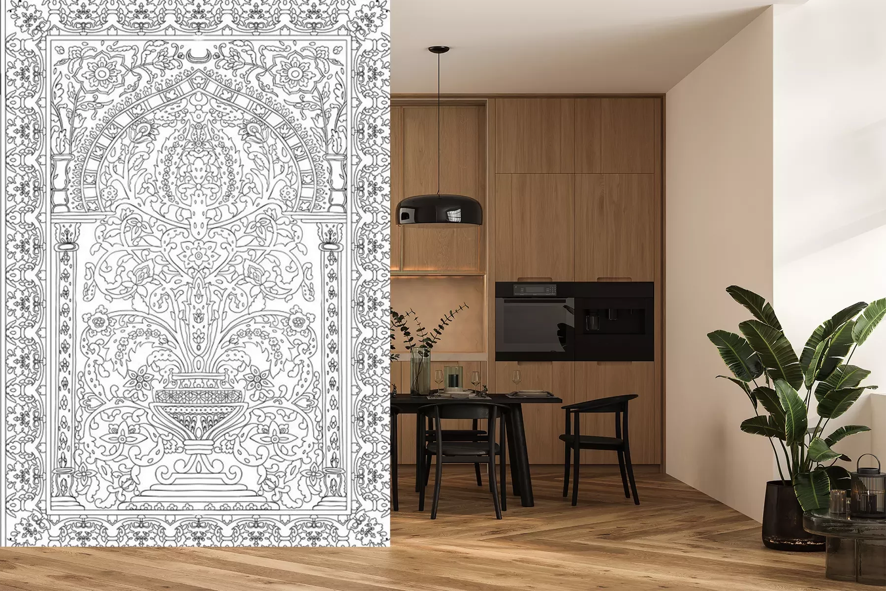 Sticker Arabic tile fresca flower black white