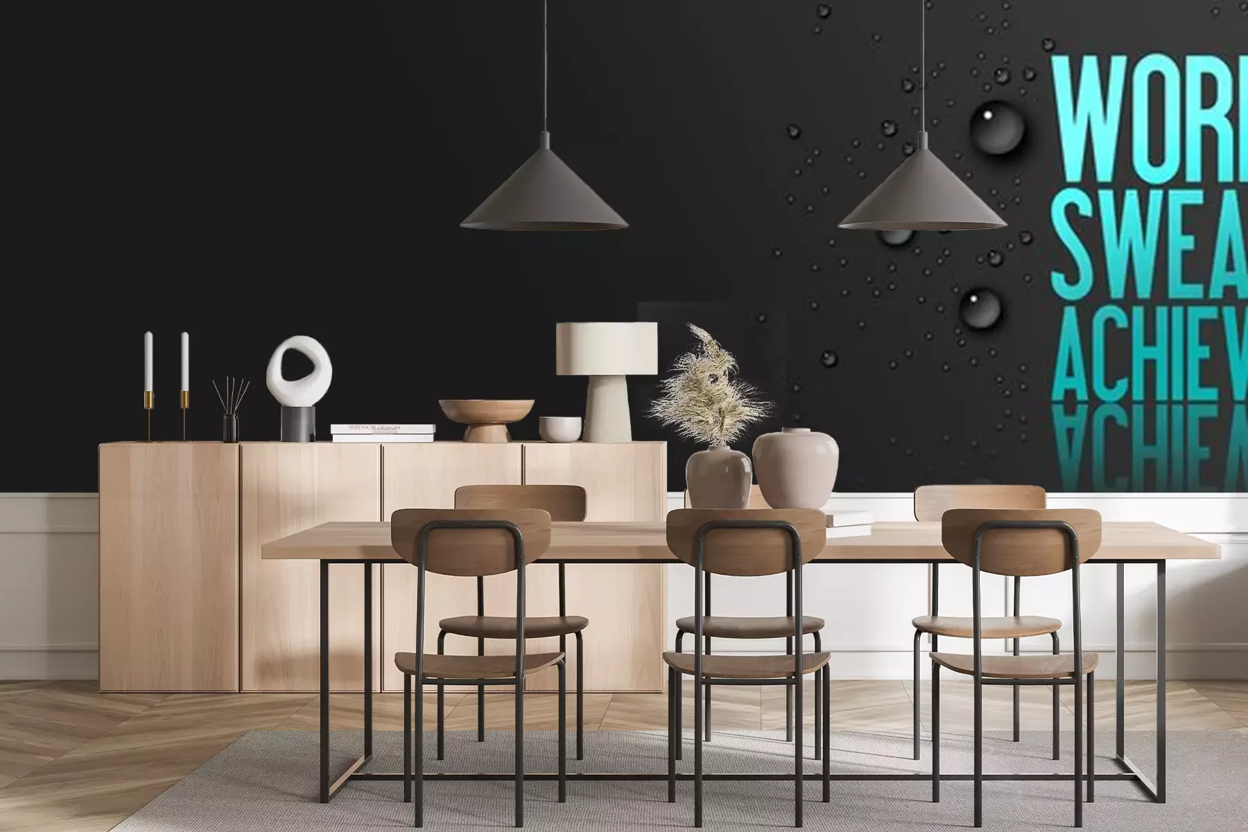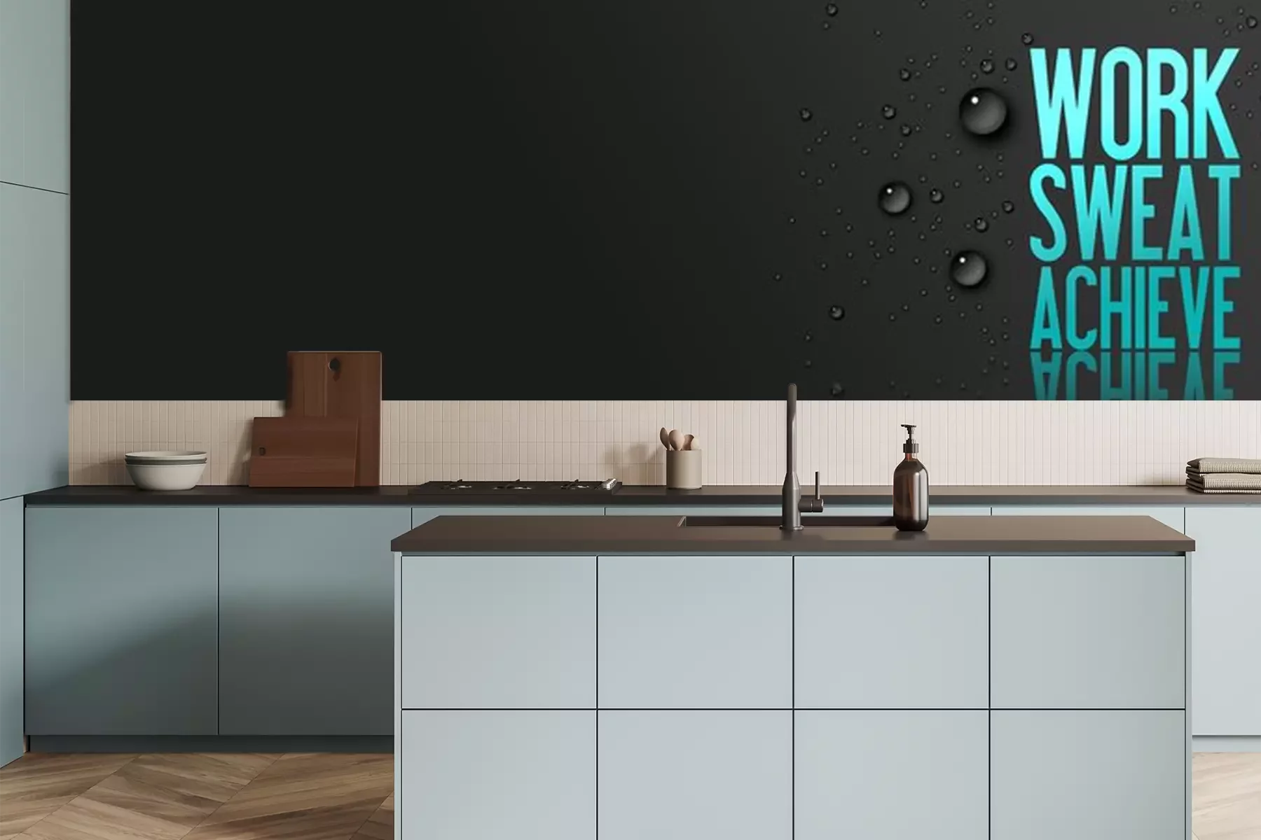 Sticker Arbeit - Sweat - Erreichen - Workout und Fitness Motivation Zitat - Kreativ Typografie Modern Banner Konzept - Tropfen - blau