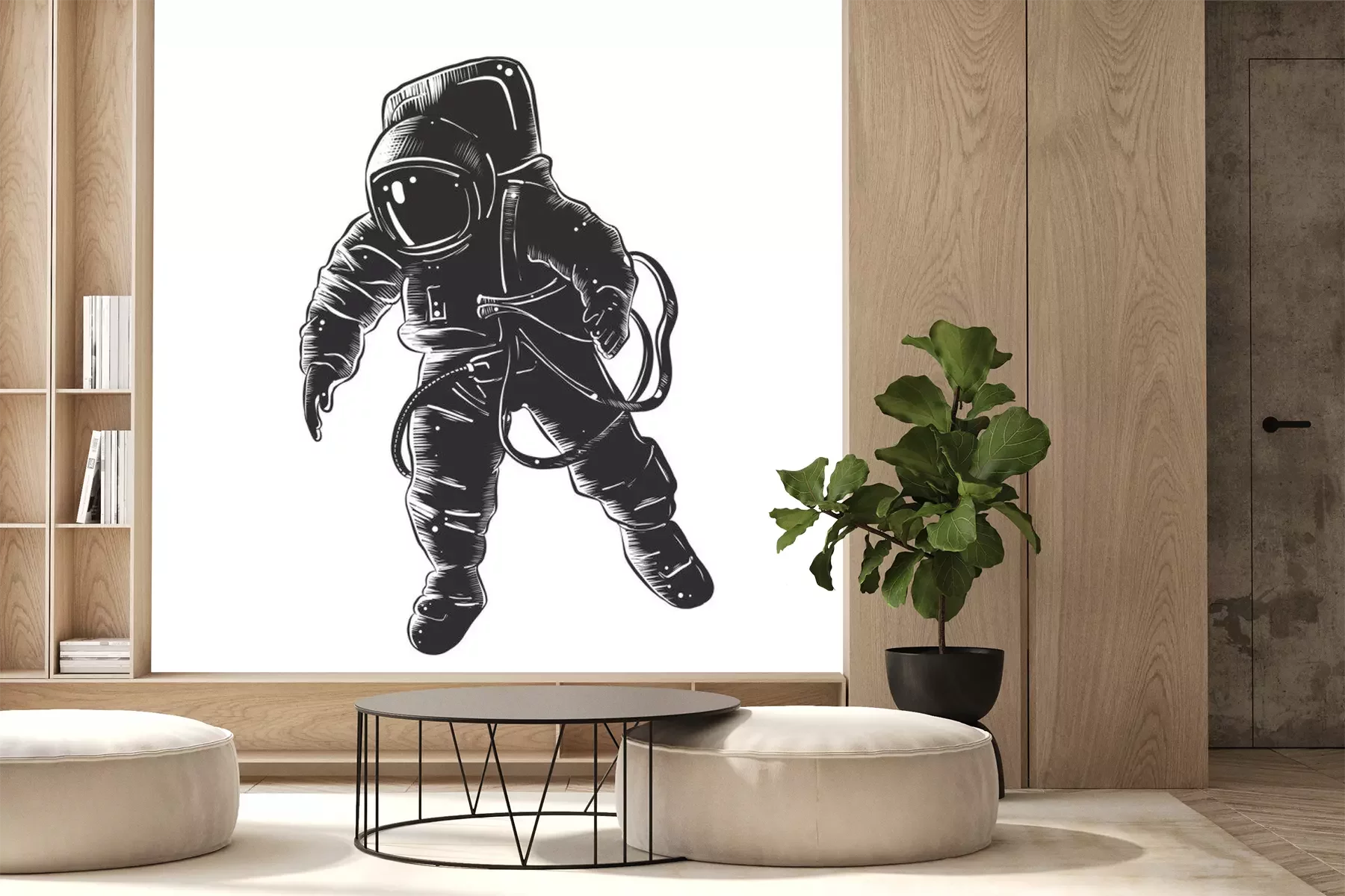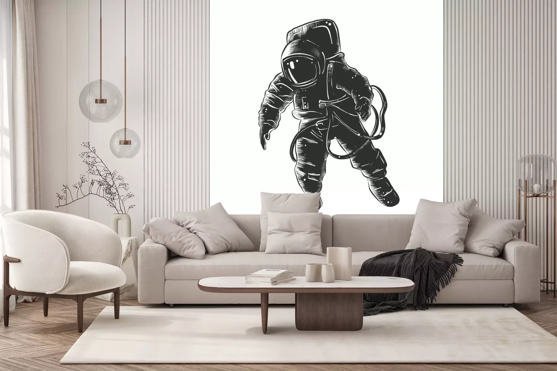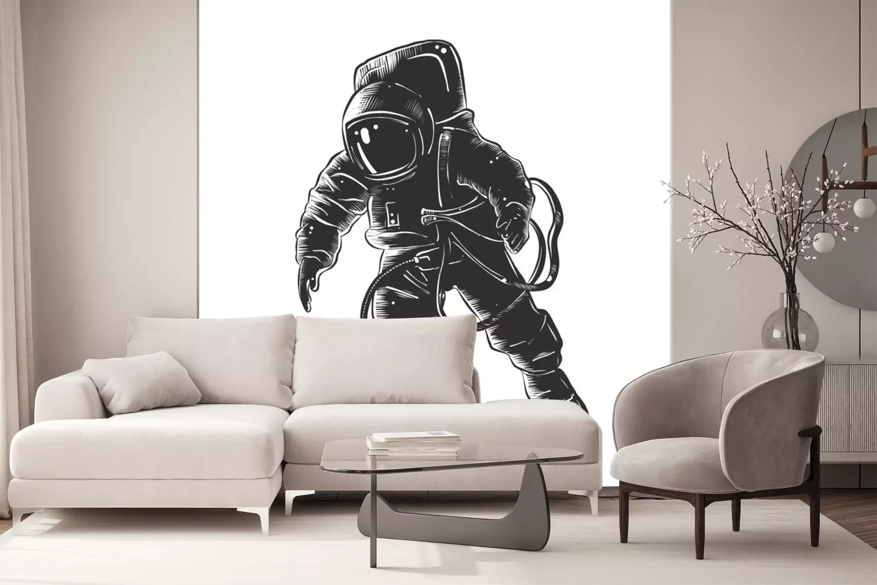 Sticker Astronaut im Raumanzug schwarz-weiße Illustration